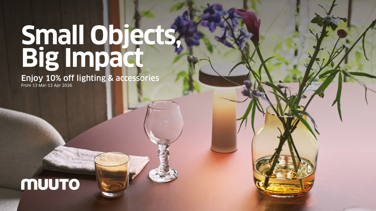 Enjoy 10% off Muuto lighting & accessories from 13 Mar-12 Apr 2026.