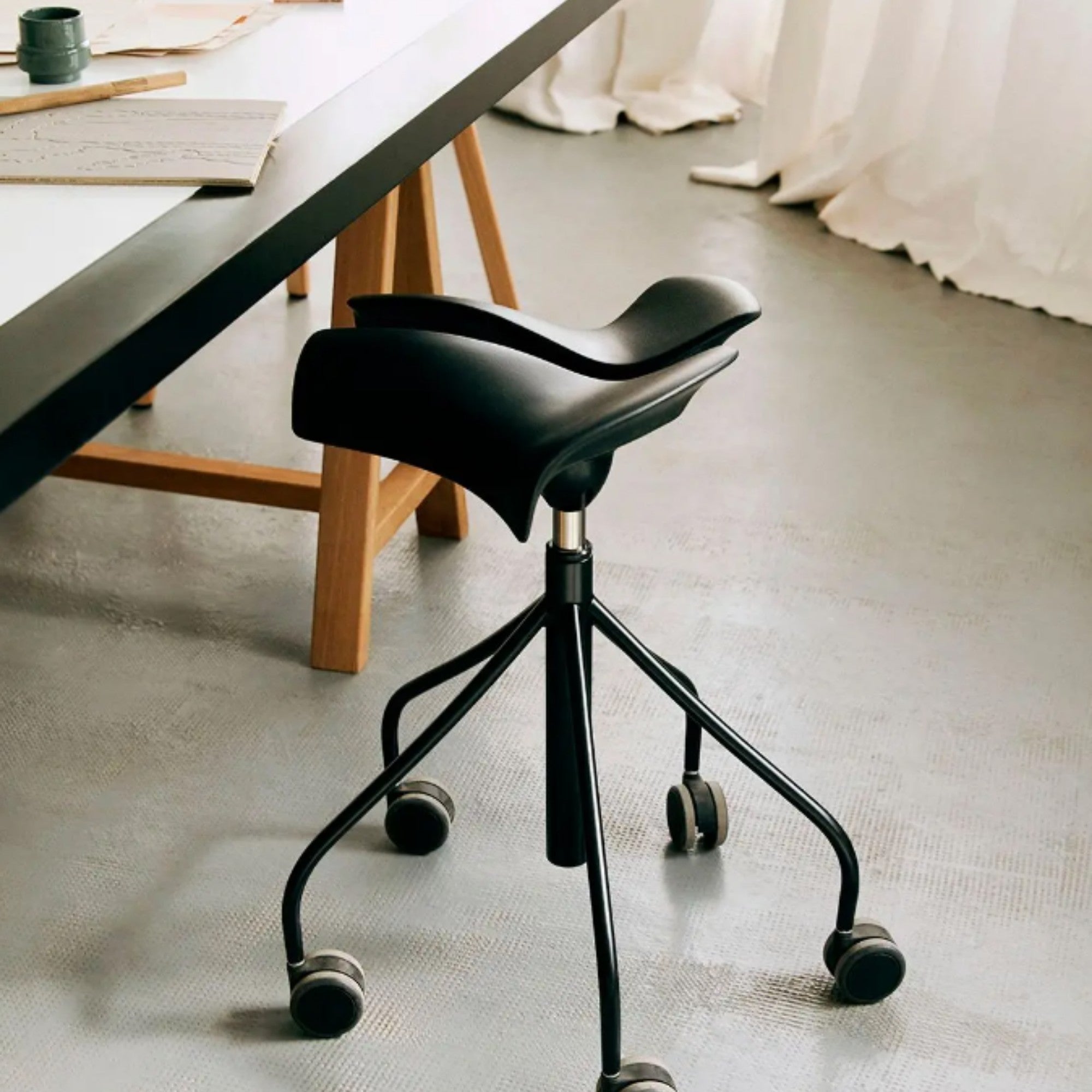 The Binaria Stool by Jordi Badia and Otto Canalda blends ergonomic excellence with sleek design. Engineered for optimal posture, core stability, and comfort, it suits clinics, offices, salons, and labs. Featuring a patented seat, height adjustability, and durable polyurethane-steel construction, it now comes in an updated palette including bottle green.