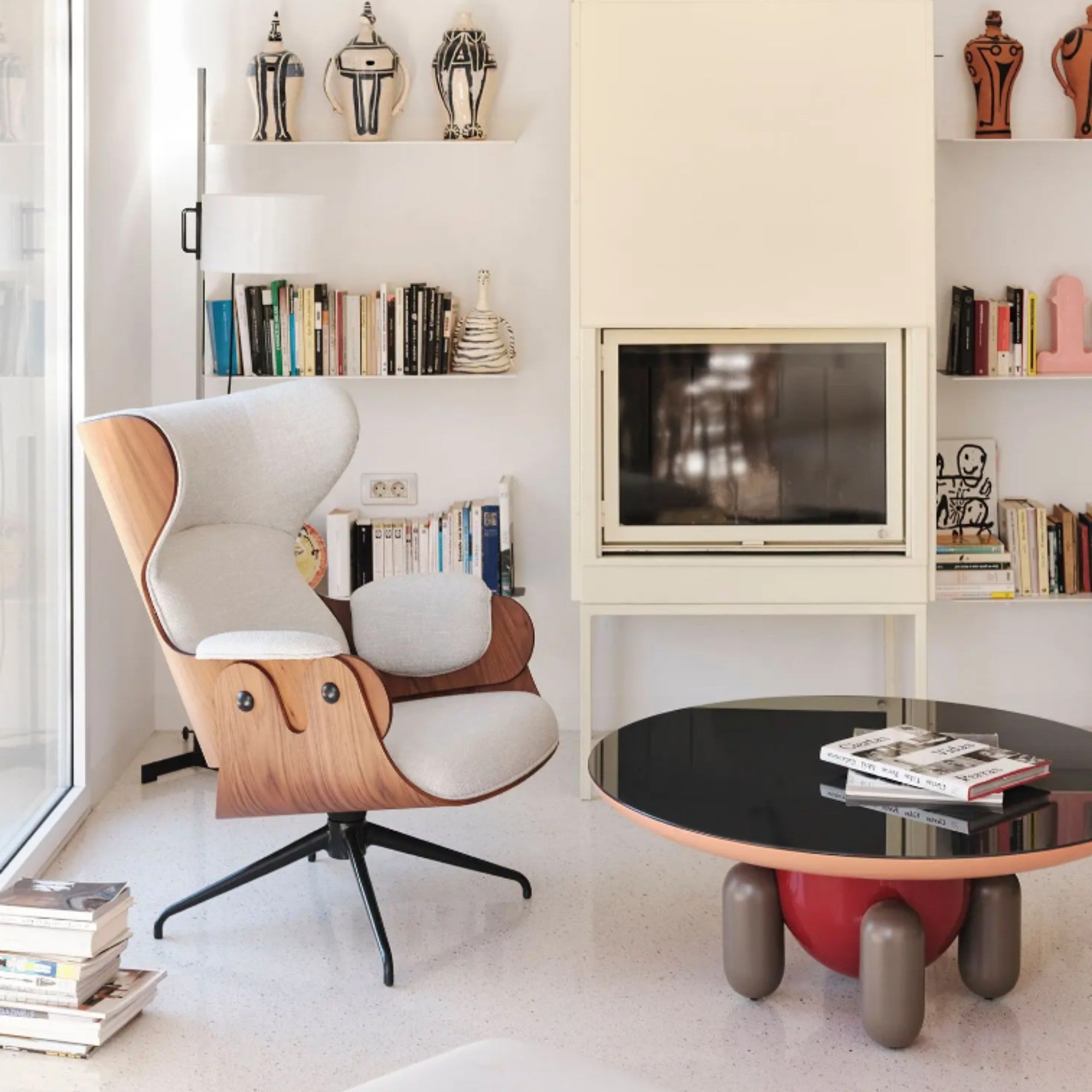 Jaime Hayon’s Explorer Collection combines playful elegance with functional design, inspired by childhood memories and the 1958 Explorer space rocket. Featuring colorful, rounded cabinets, tables, and vases, the collection highlights craftsmanship, durable materials, and imaginative forms that bring joy, creativity, and a sense of wonder to any space.