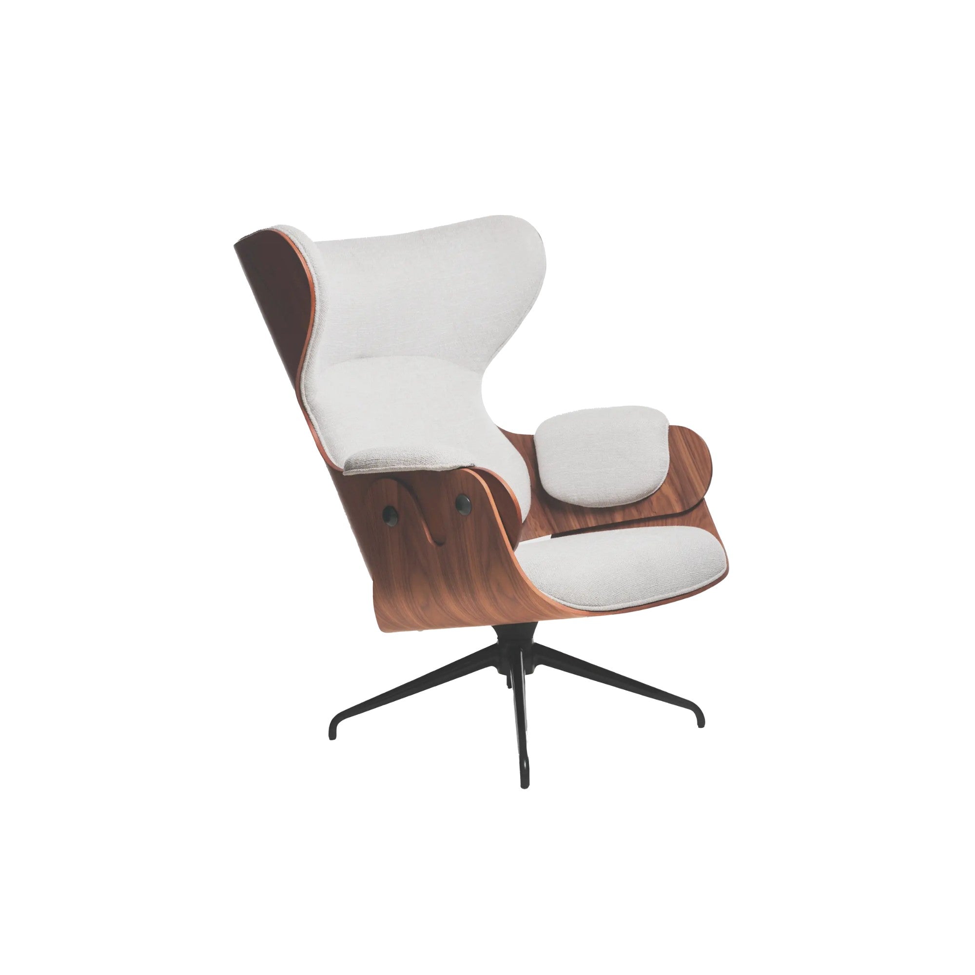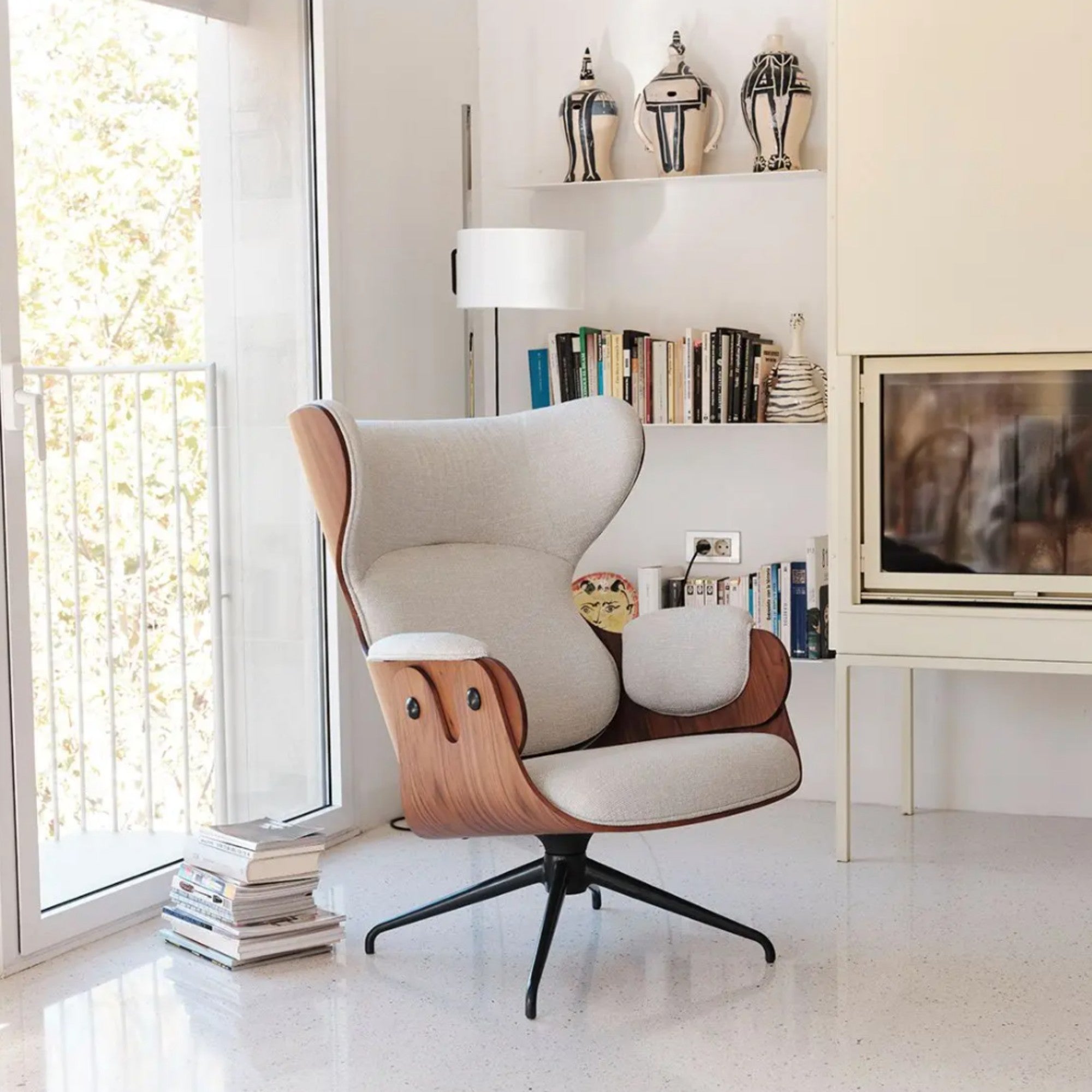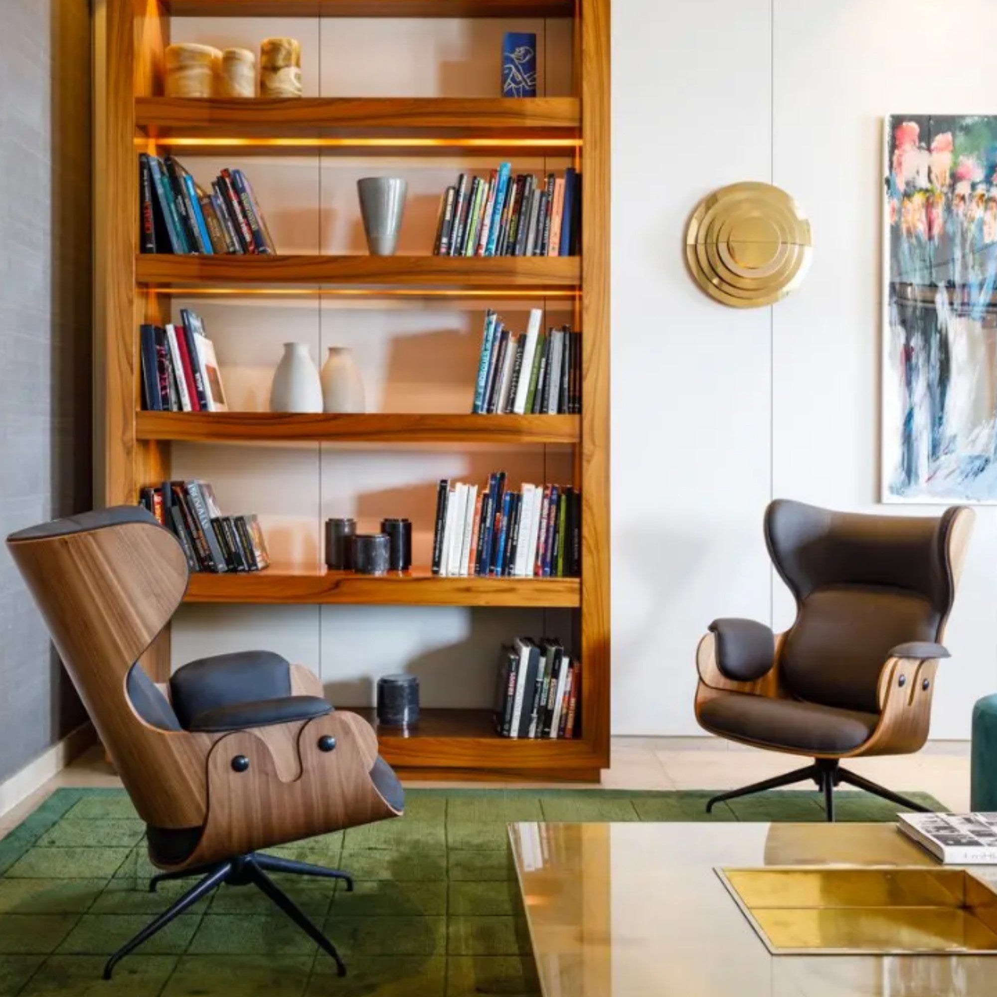 Jaime Hayon’s Lounger blends sculptural elegance with supreme comfort. Featuring a curved wooden frame, supple leather, and soft fabrics, it invites relaxation while showcasing exquisite craftsmanship. Inspired by the Eames Lounge Chair, this luxurious armchair and matching footstool offer timeless design, high-quality materials, and enduring style.