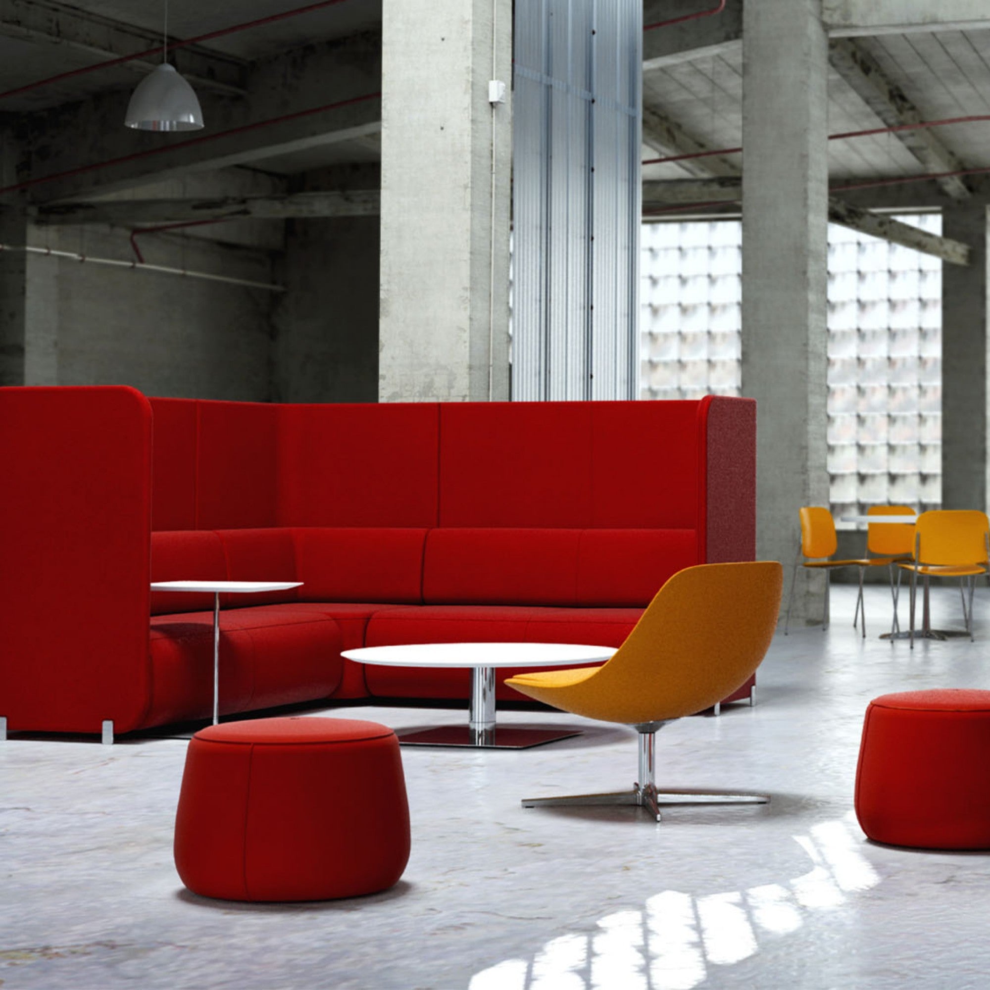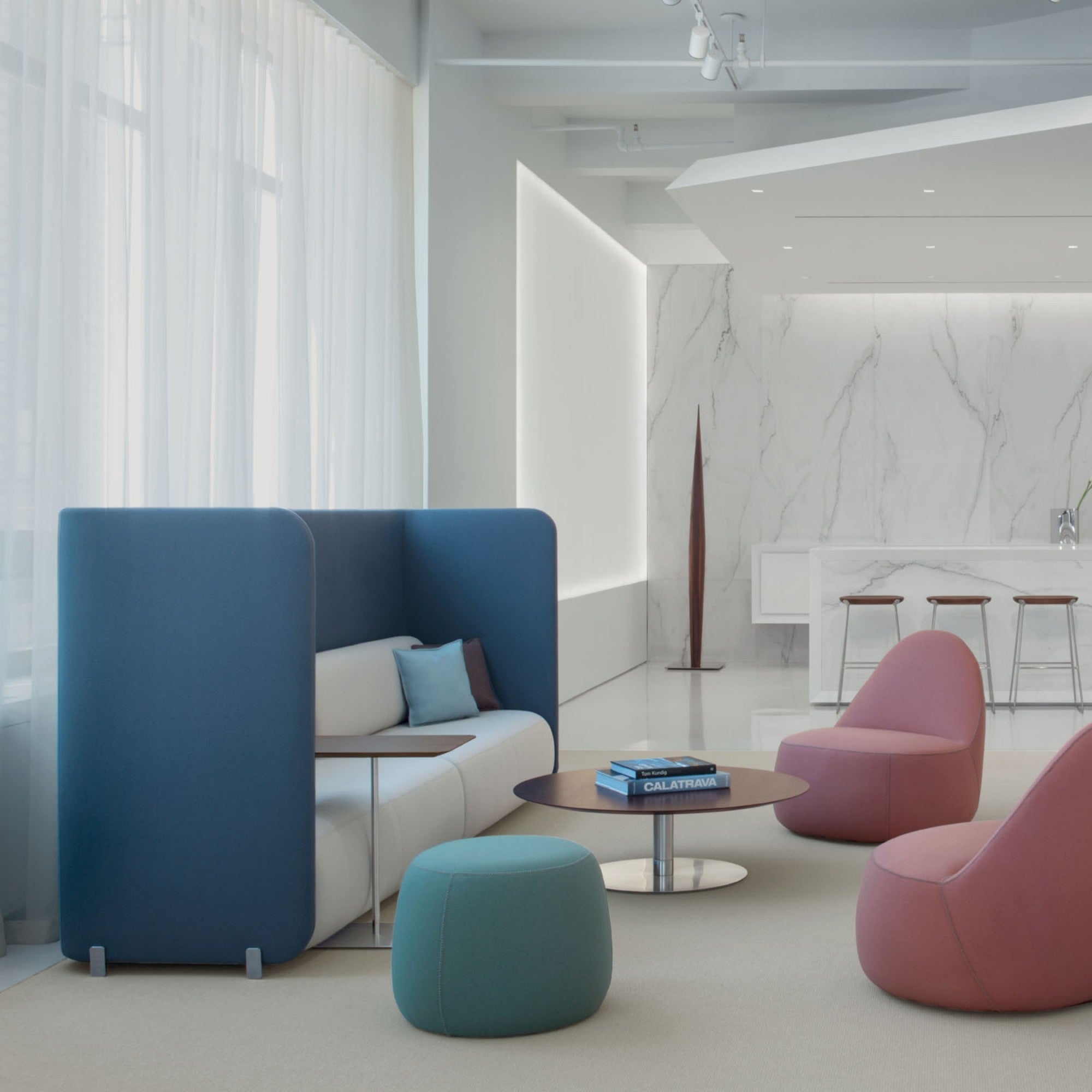The Code Seating System by Bernhardt Design delivers adaptable lounge solutions—from chairs to modular sofas—designed for open offices and collaborative environments. With soft curves, polished aluminum feet and optional privacy walls, it provides structure and comfort in one refined system.