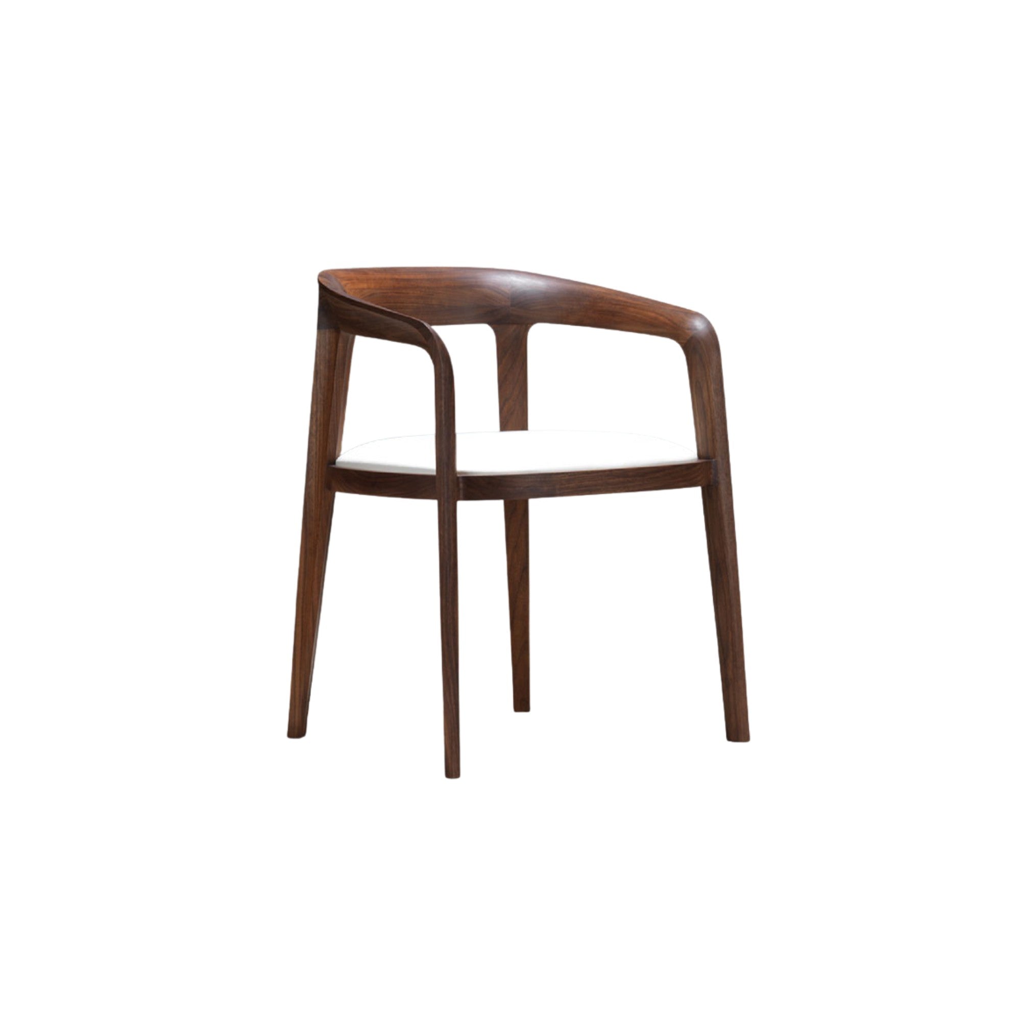 Corvo Armchair blends craftsmanship and modern design, hand-shaped from solid American walnut or maple with a natural oil finish. Its sculpted arms and back contrast with straight external edges, while the upholstered seat cushion adds comfort, making it a striking and functional piece for contemporary interiors.
