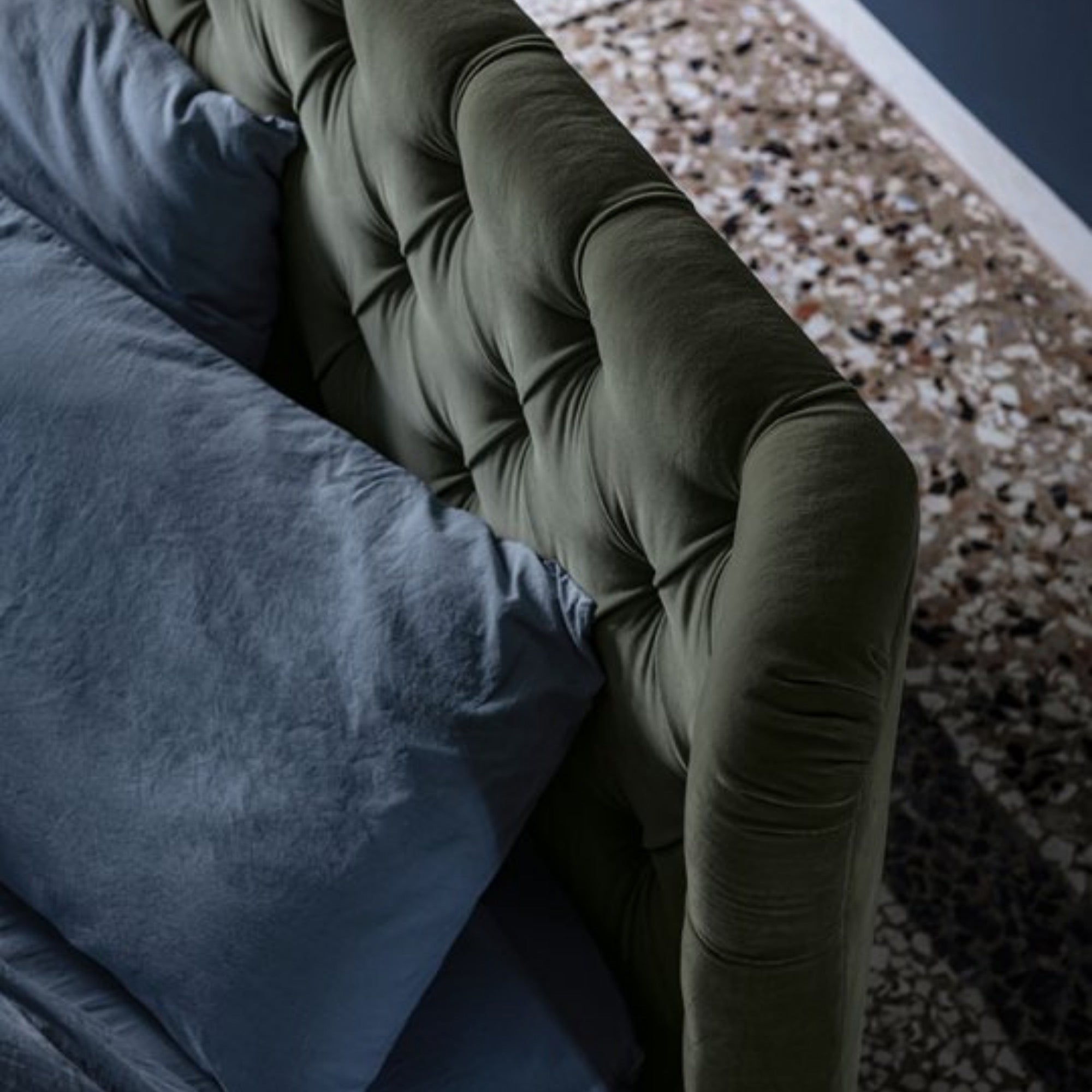 Selene reimagines classic night furniture with sophistication and warmth. Its handcrafted, tufted headboard evokes timeless elegance, while customizable feet allow for a choice between traditional refinement or a contemporary twist, making it a versatile statement piece for modern bedrooms.