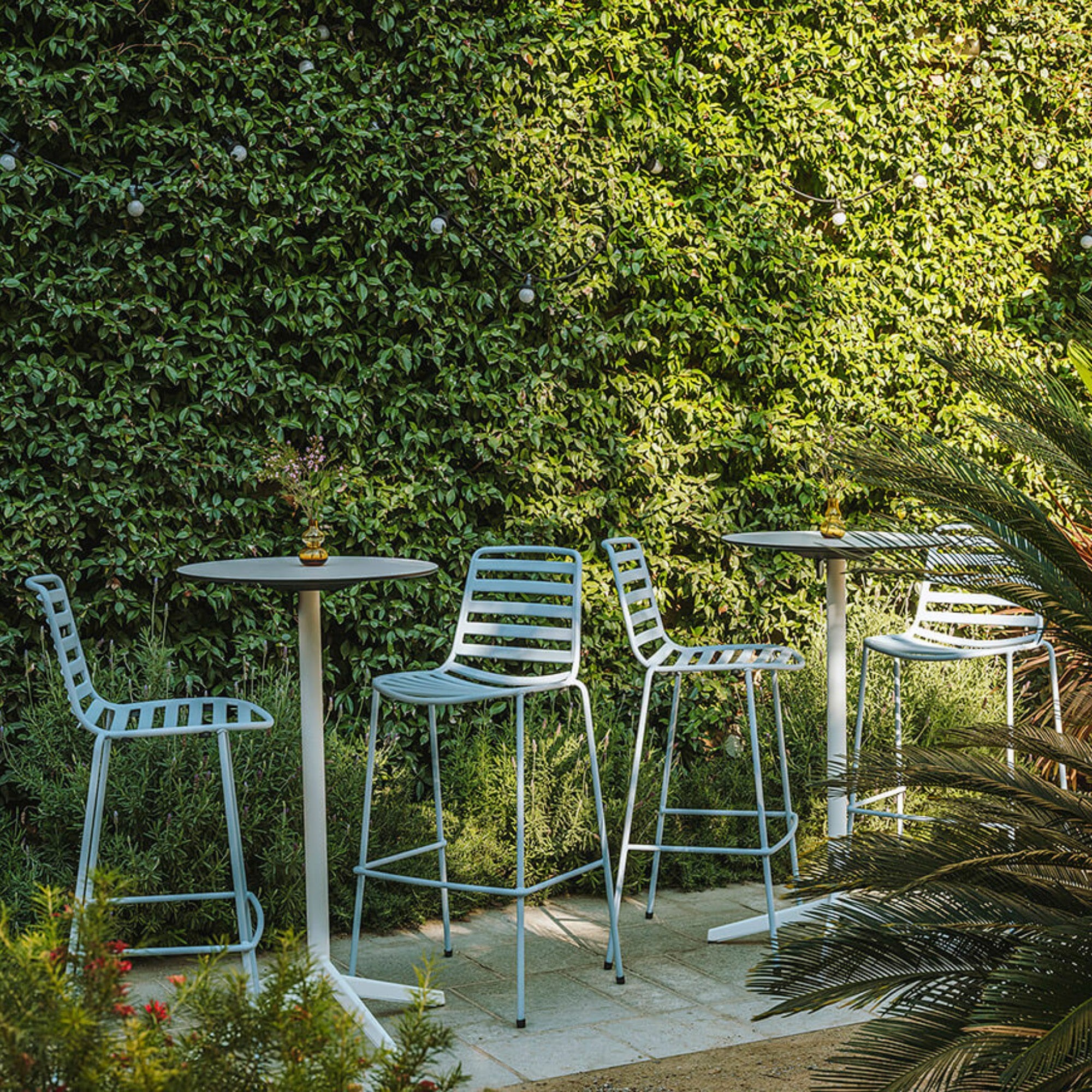 The Street Medium 4L Stool features a lacquered steel frame, designed for outdoor use. Ergonomic, stackable, and optionally cushioned, it provides comfort and style for terraces, bars, or patios. Available in medium and high heights to suit various outdoor settings.