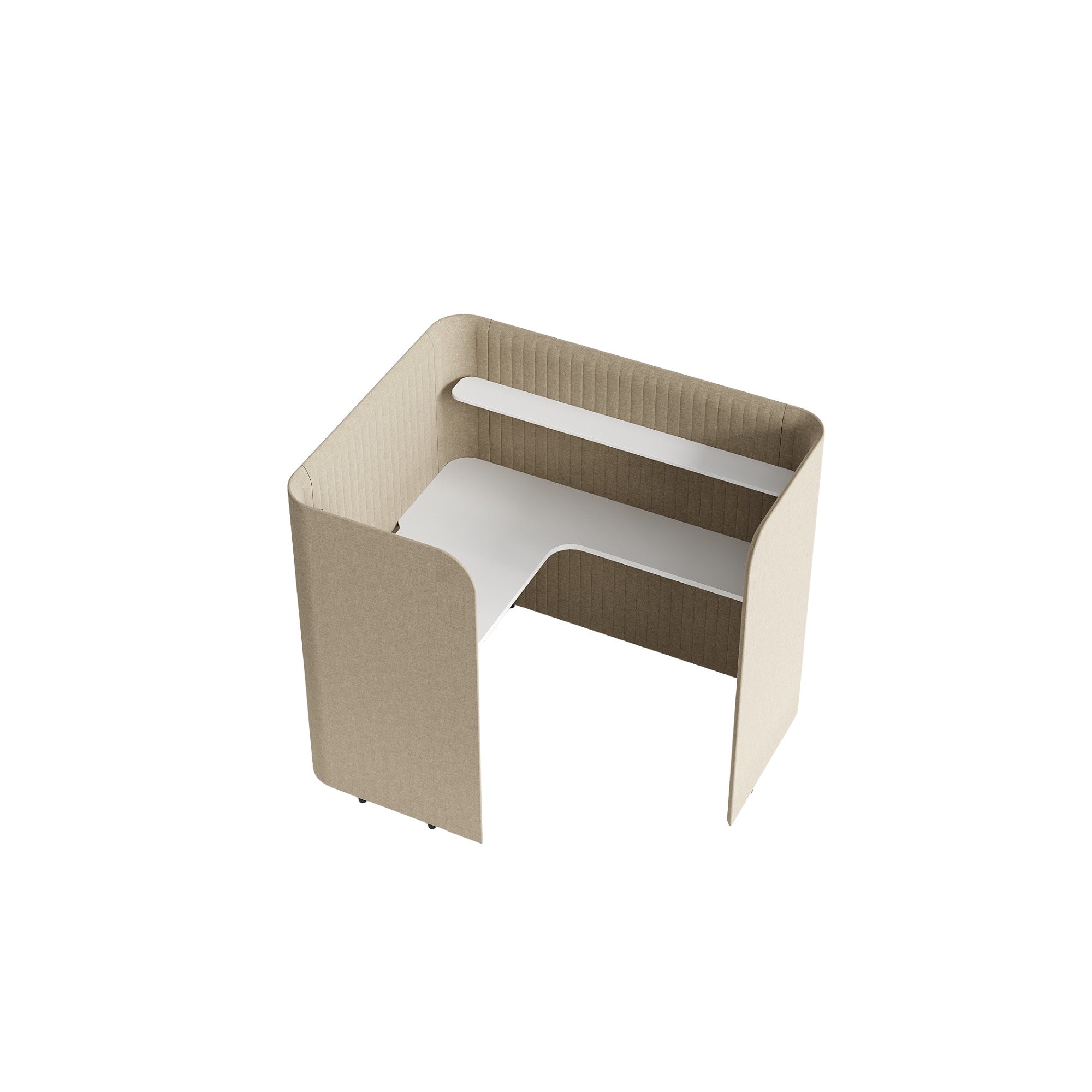 The Cosy Work Station / 02 by GRADO is a stylish modular pod offering acoustic privacy for modern workspaces. Crafted with eucalyptus plywood and metal details, this versatile unit features integrated wiring, spacious work surfaces, and tailored dimensions—make it perfect for focused work areas and collaborative environments.
