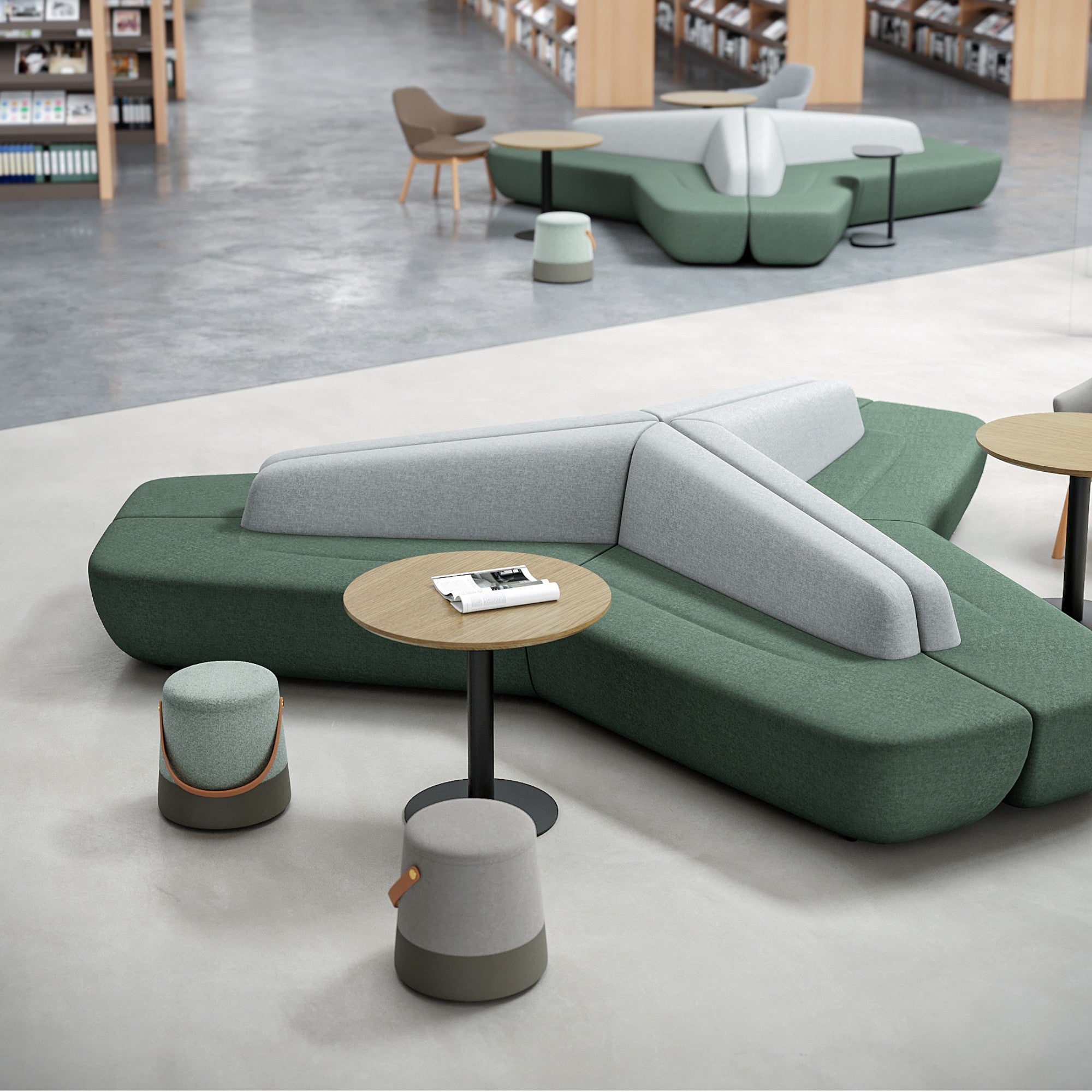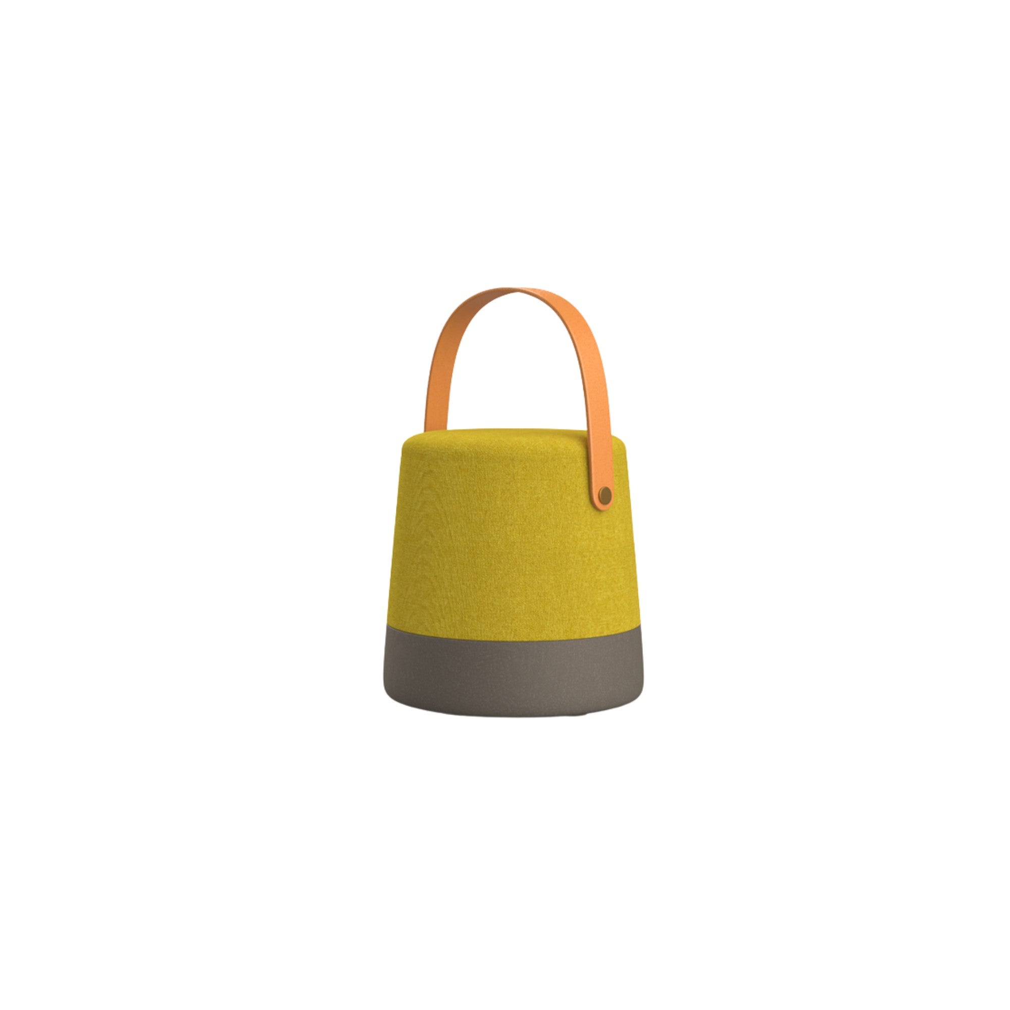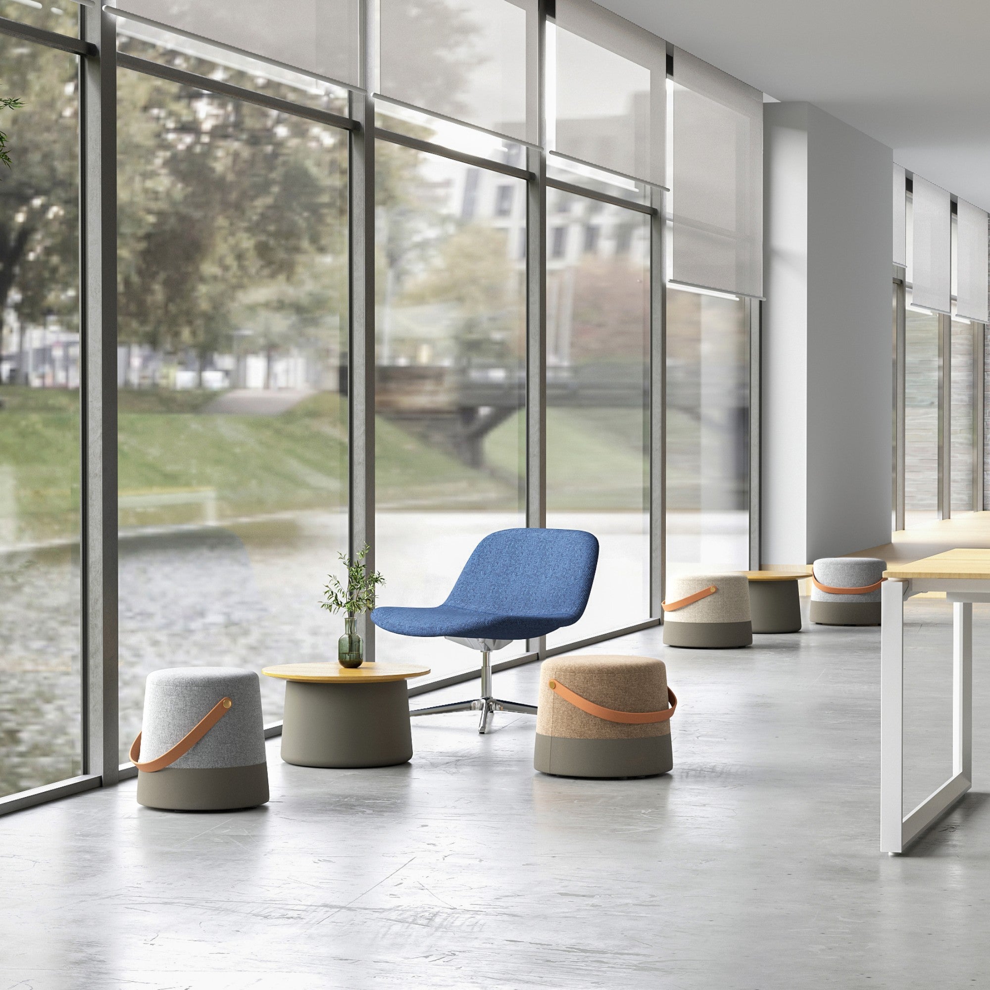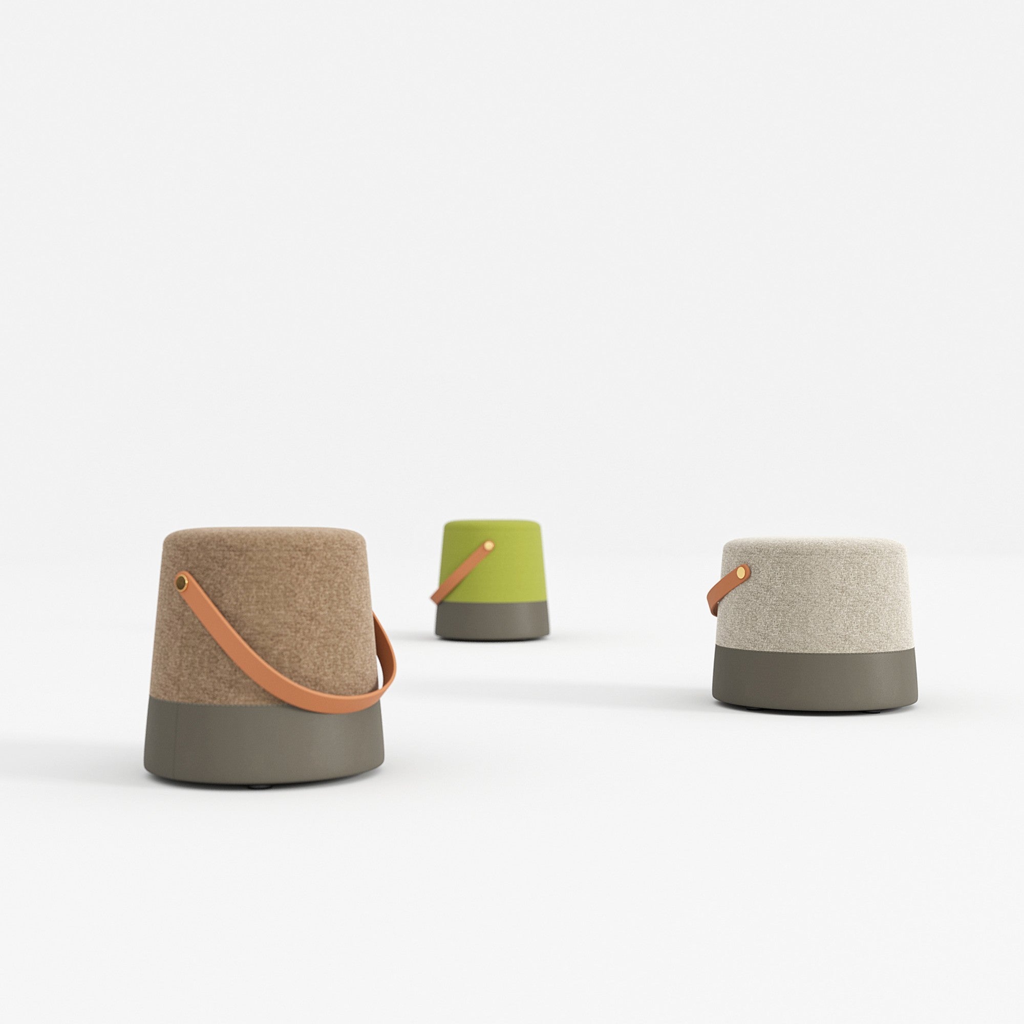 The Pudding Pouf /S by Grado Contract features a solid pine plus plywood frame, high‑resilience foam filling, Barenia leather handle and electroplated aluminium button. Designed for flexible seating in lounge or collaborative spaces (Ø380 × H400 mm).
