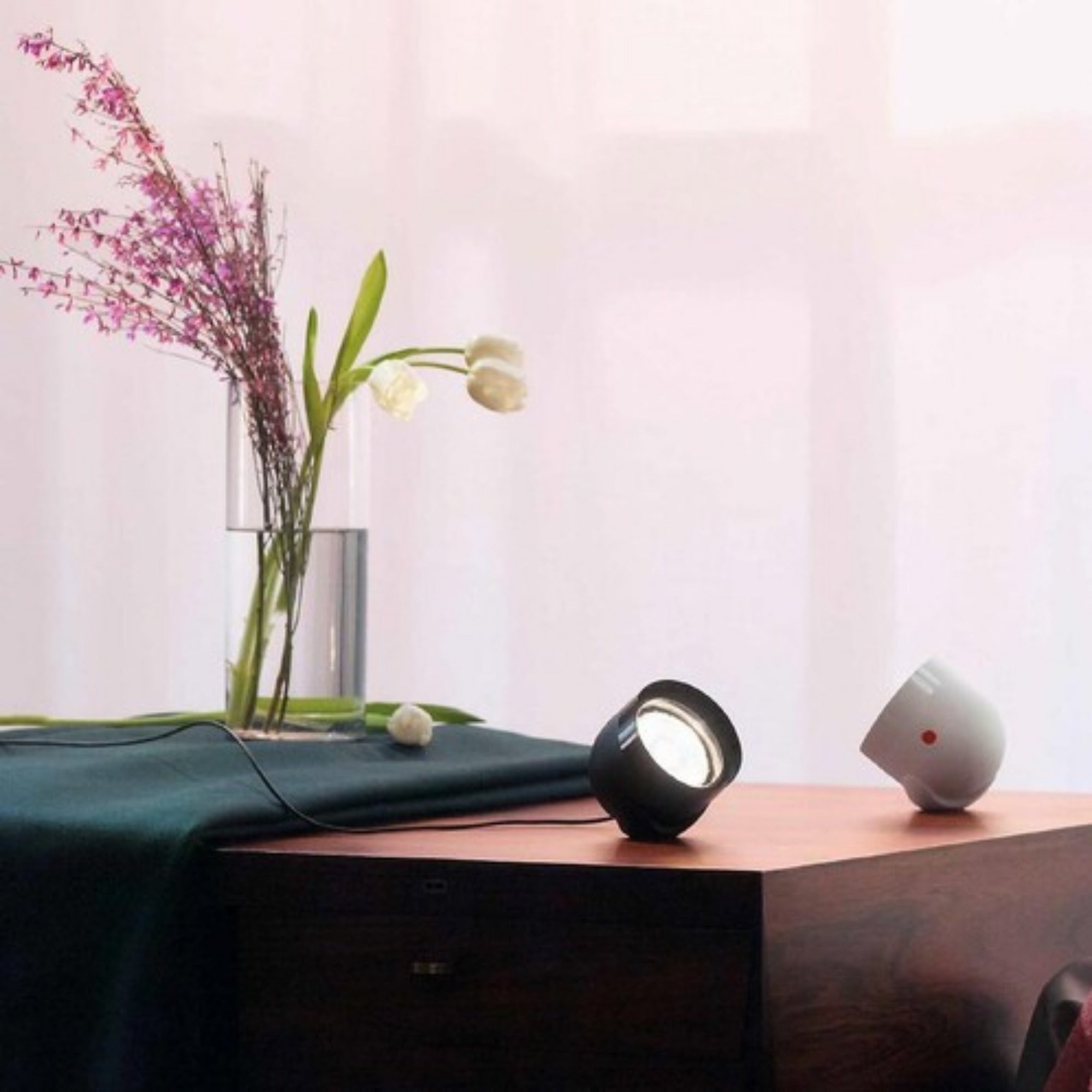 Love Focus is a refined aluminum spotlight with an adjustable beam angle for precise illumination. Effortlessly highlight art, objects, or walls by turning the lamp head to focus the light. Featuring a built-in dimmer and Powder Skin surface, it’s designed and crafted at the GRAU Campus in Germany.