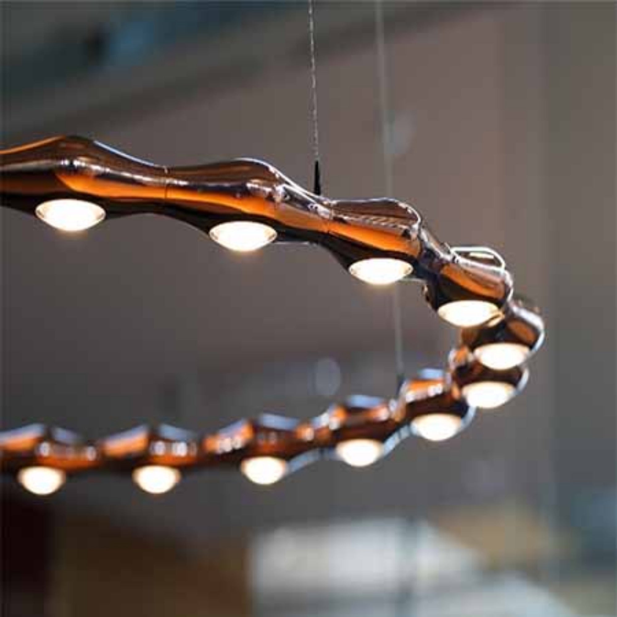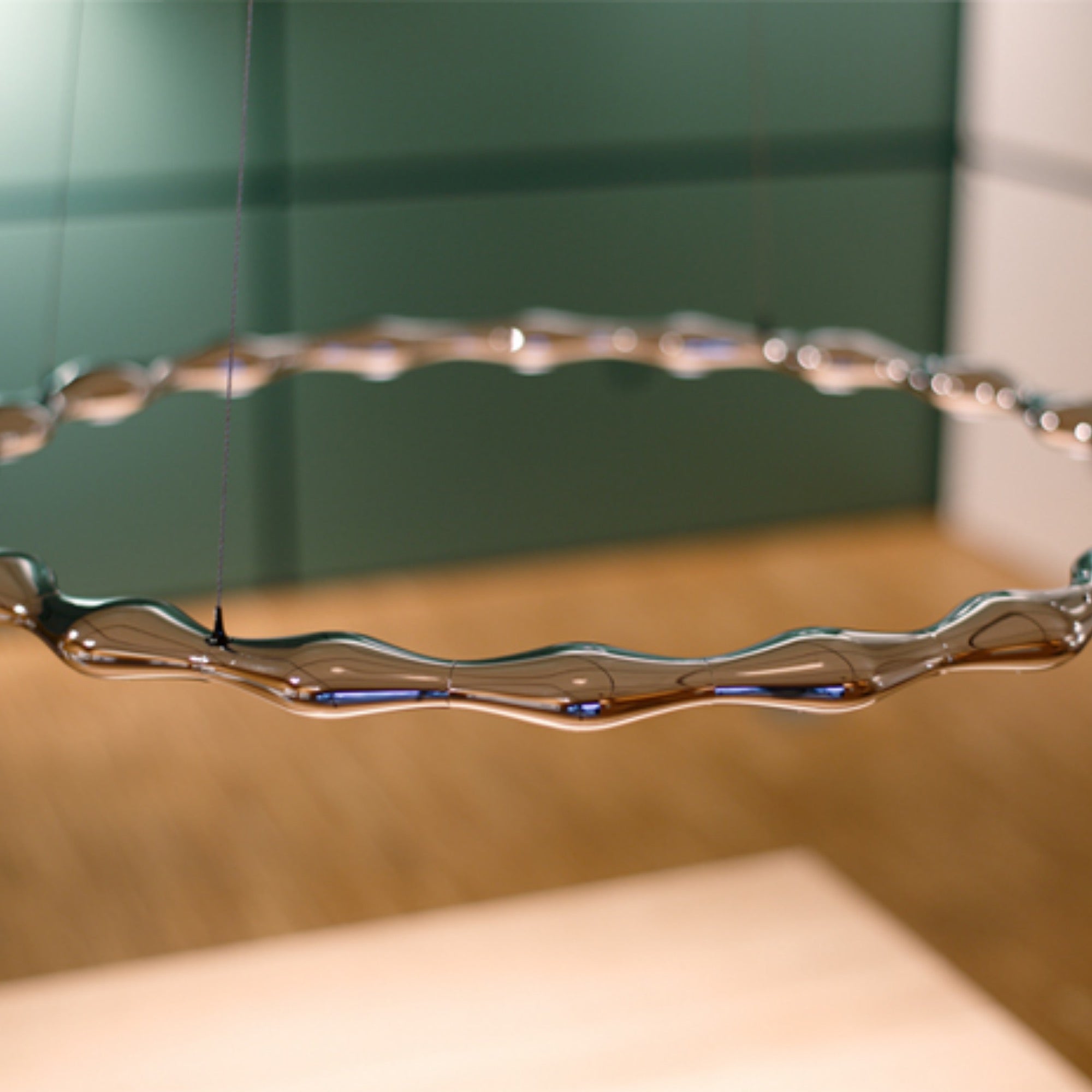 Move Around features an organically sculptural form with softly glowing lenses and fluid curves, bringing warmth and elegance to any space. Easily height-adjustable, this versatile design transforms interiors with its dynamic, natural presence — a harmonious blend of art and light.