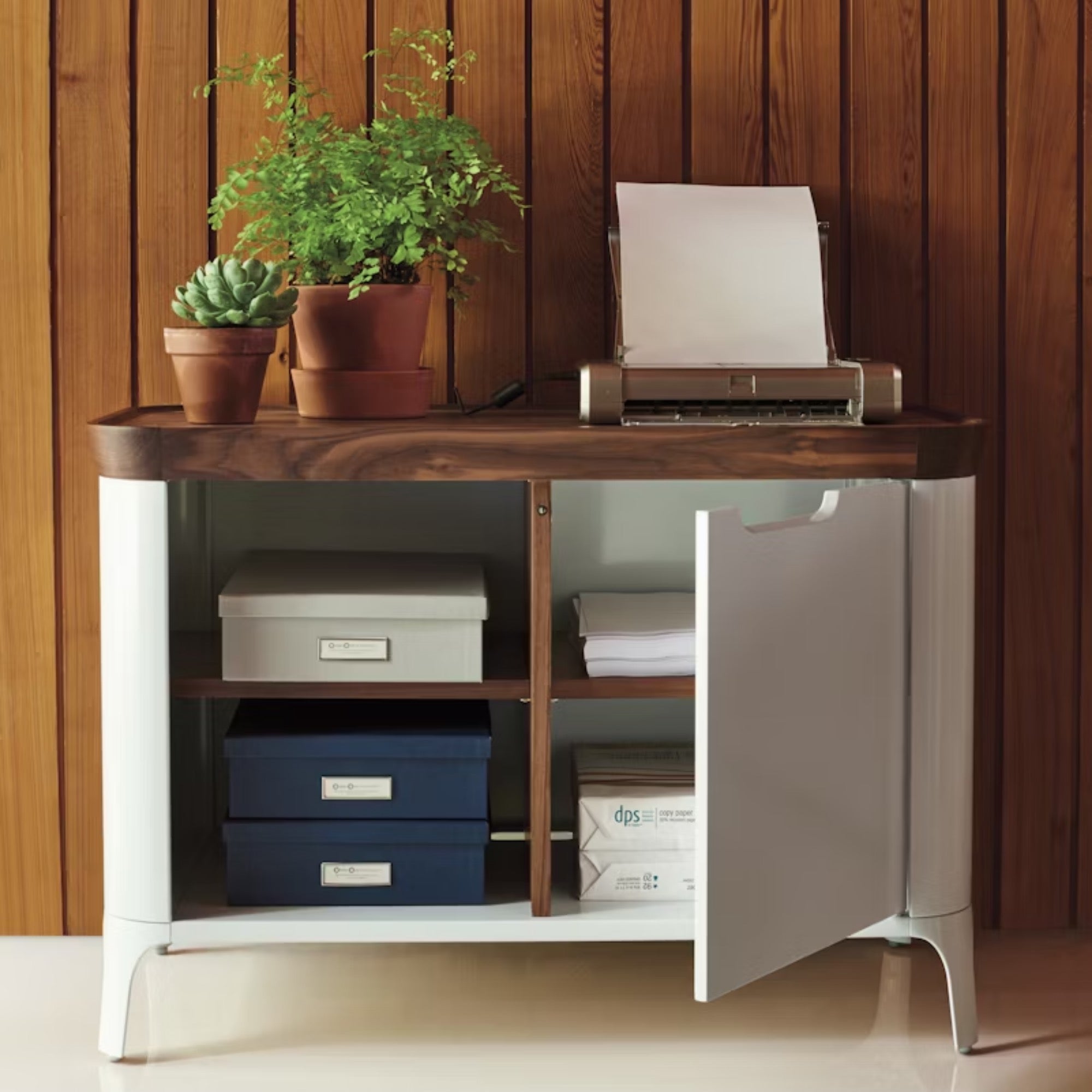 The Airia Desk and Media Cabinet by Herman Miller blends walnut and white aluminium with intuitive, clutter-free design. Cork-lined drawers, cable management, and thoughtful surfaces ensure lasting functionality, while Ayako Takase and Cutter Hutton’s design fosters emotional connection—timeless elegance crafted to endure for generations.