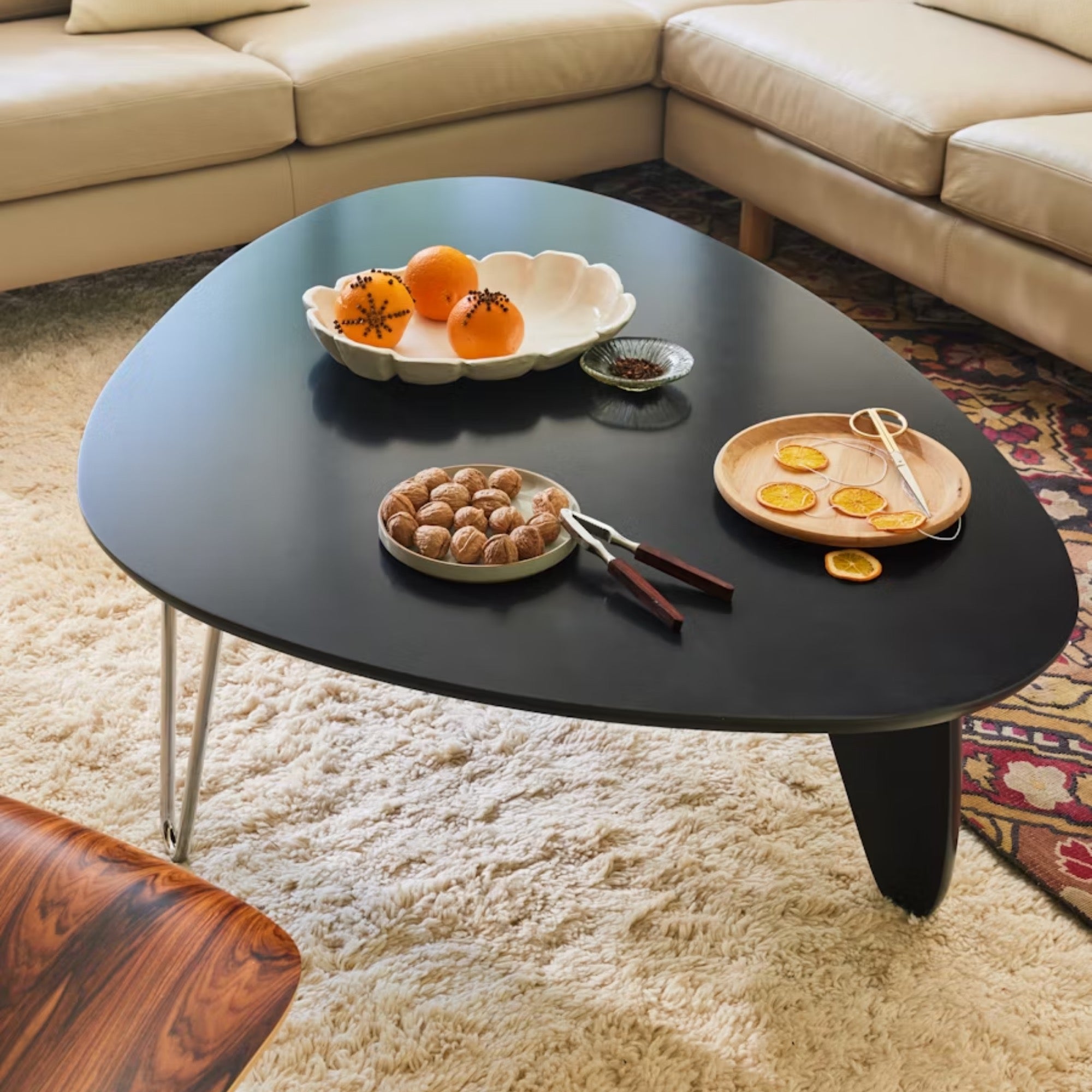 Noguchi Rudder Table – A sculptural coffee table designed by Isamu Noguchi in 1949, featuring a rudder-shaped wooden leg paired with chrome hairpins. Available in Walnut, Ebony on Maple, or White Ash, it balances organic form and industrial elegance, merging timeless design with visual lightness and functional artistry.