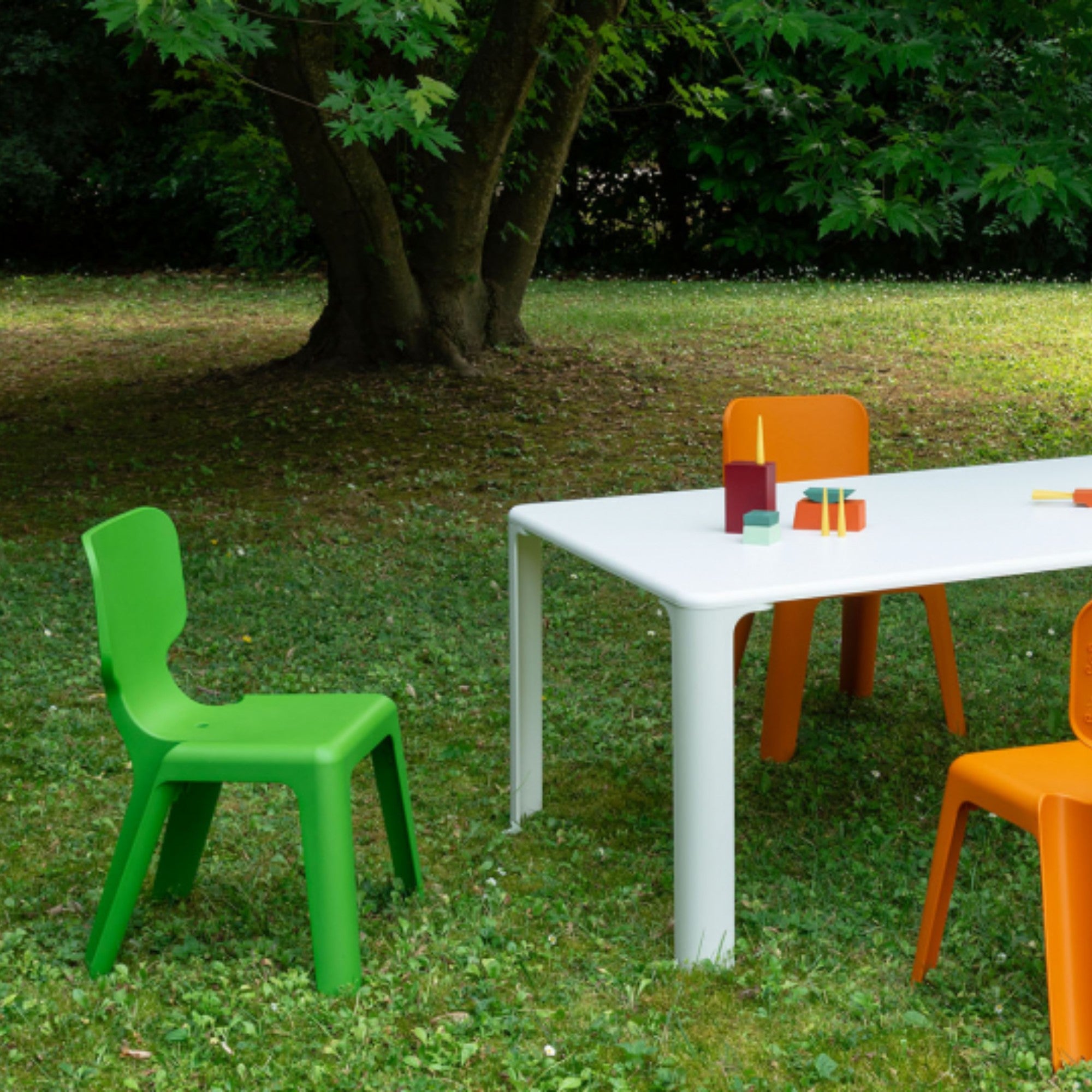 Designed by Javier Mariscal in 2006, the Alma Chair is a playful and practical stacking chair for children. Crafted from glass fibre–reinforced polypropylene, it’s lightweight, durable, and perfect for both indoor and outdoor use.