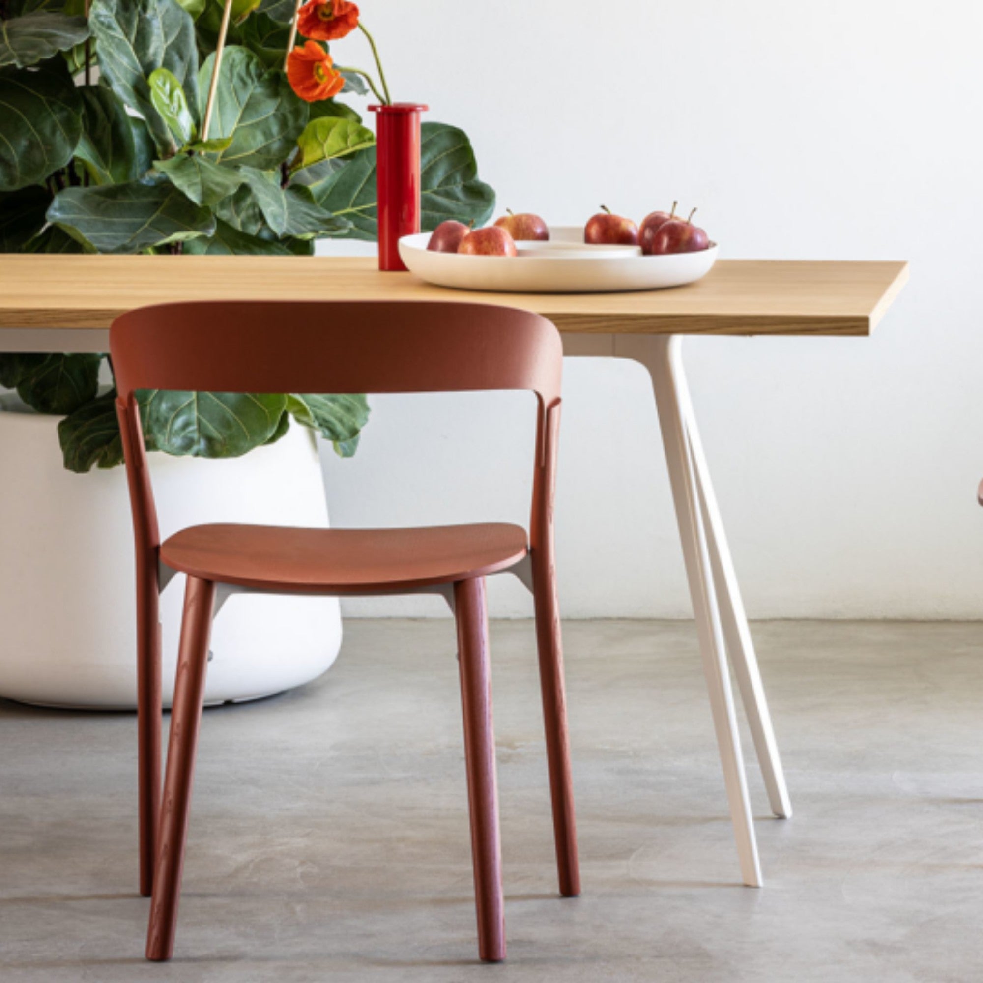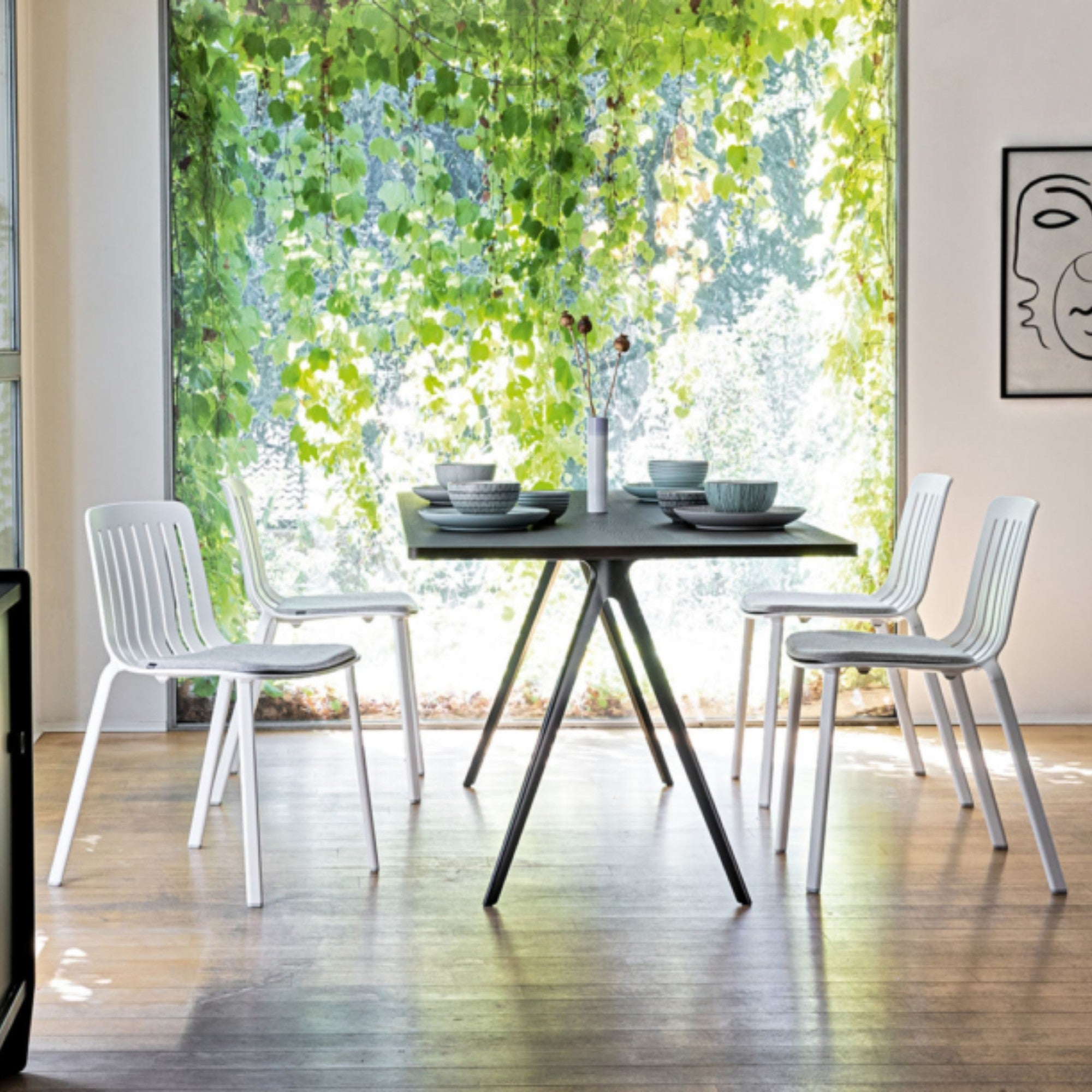 Designed by Ronan & Erwan Bouroullec in 2011, the Baguette Table combines lightness with strength. Its die-cast aluminium frame supports a choice of tops—from tempered glass to Carrara marble or oak veneer—offering refined versatility. Also available in versions suitable for outdoor use.