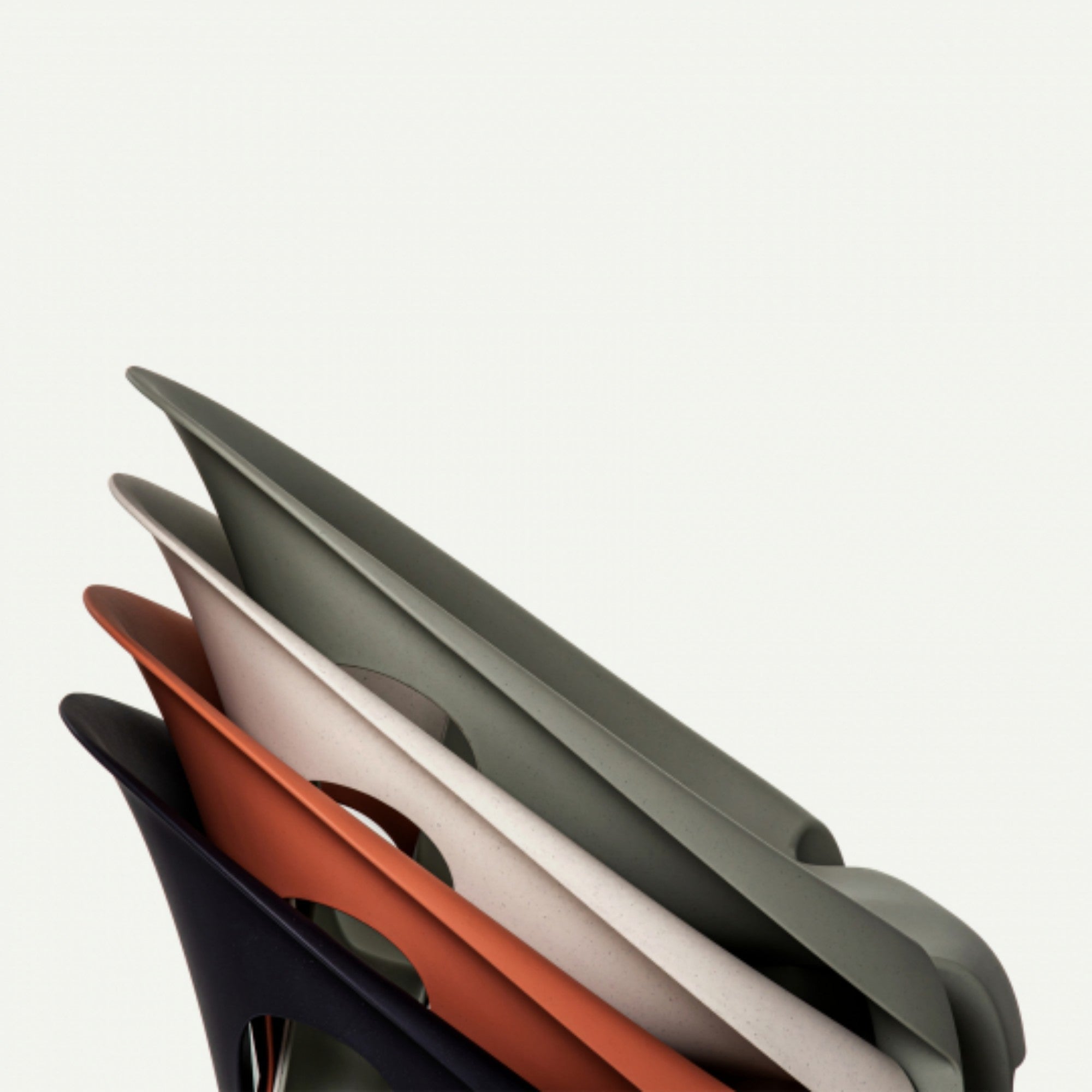 Designed by Konstantin Grcic in 2020, the Bell Chair is a sustainable stacking chair with arms, made from 100% recycled polypropylene sourced from Magis’ production and the local car industry. Lightweight, durable, and fully recyclable, it comes in four colours—Sunrise, High Noon, Midnight, and Dawn—ideal for indoor and outdoor use.