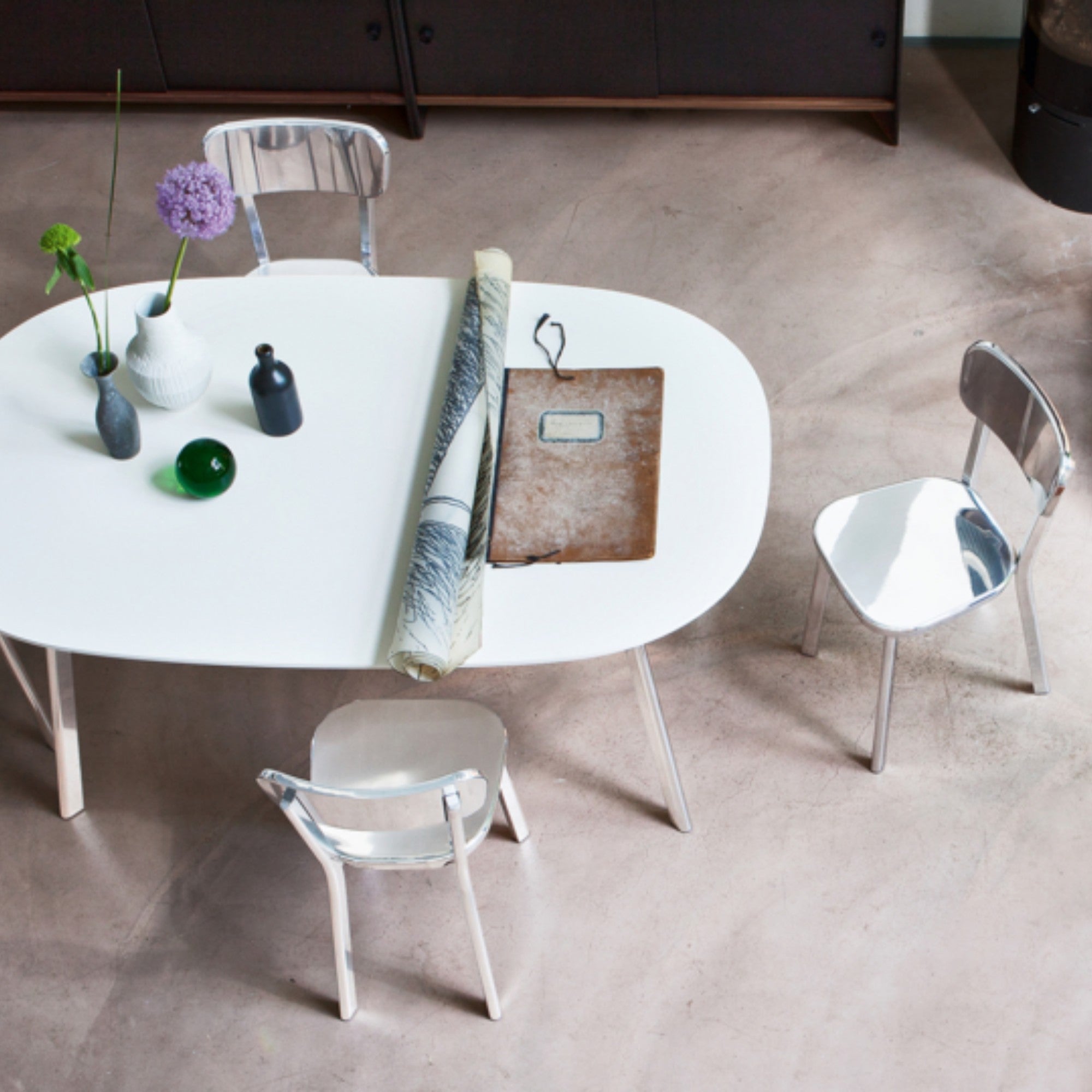 Designed by Naoto Fukasawa in 2011, the Déjà-vu Mirror features a polished extruded aluminium frame with die-cast aluminium joints. Available in multiple sizes, it can be wall-mounted with zinc-plated brackets or floor-standing with a resin strip, combining sleek design with versatile functionality.
