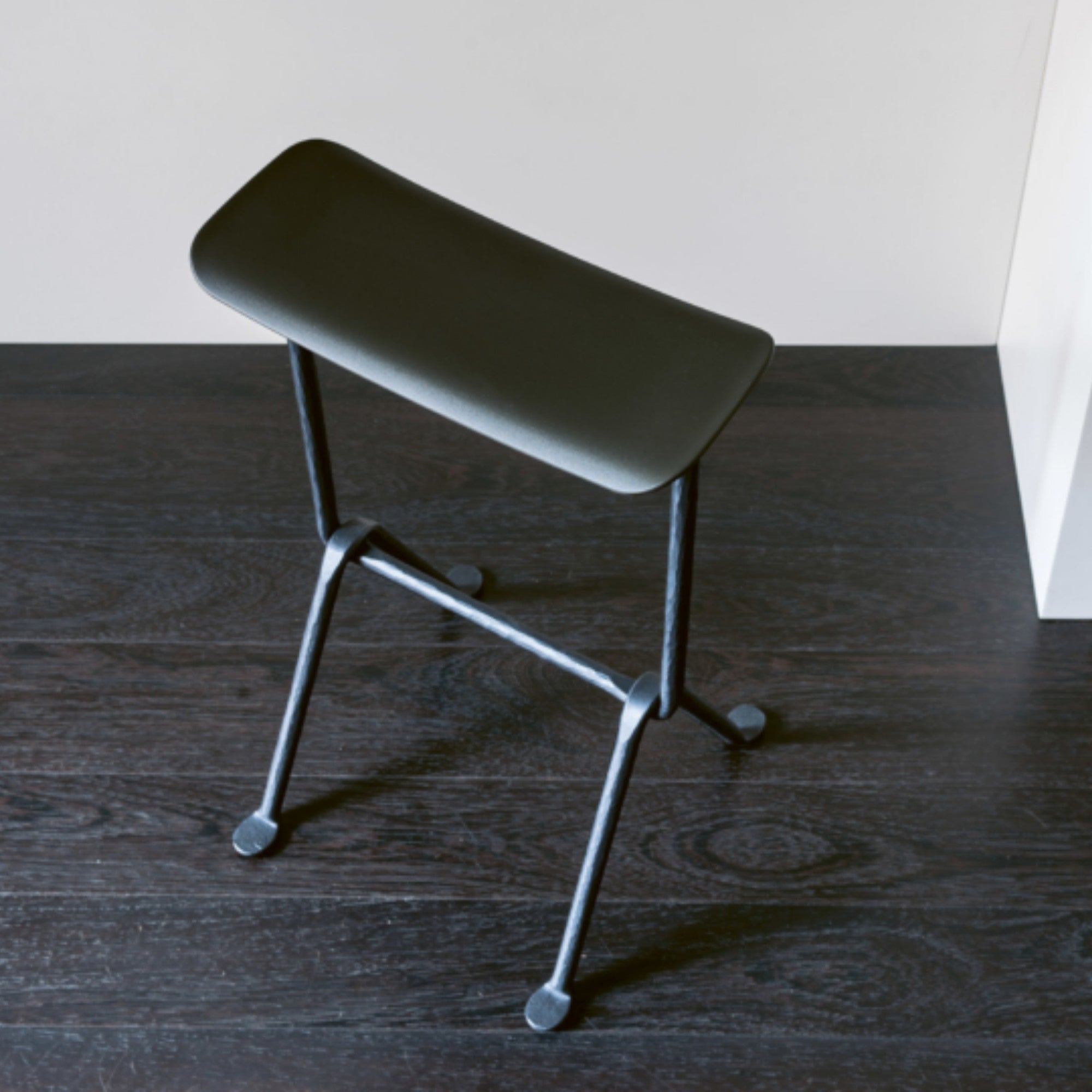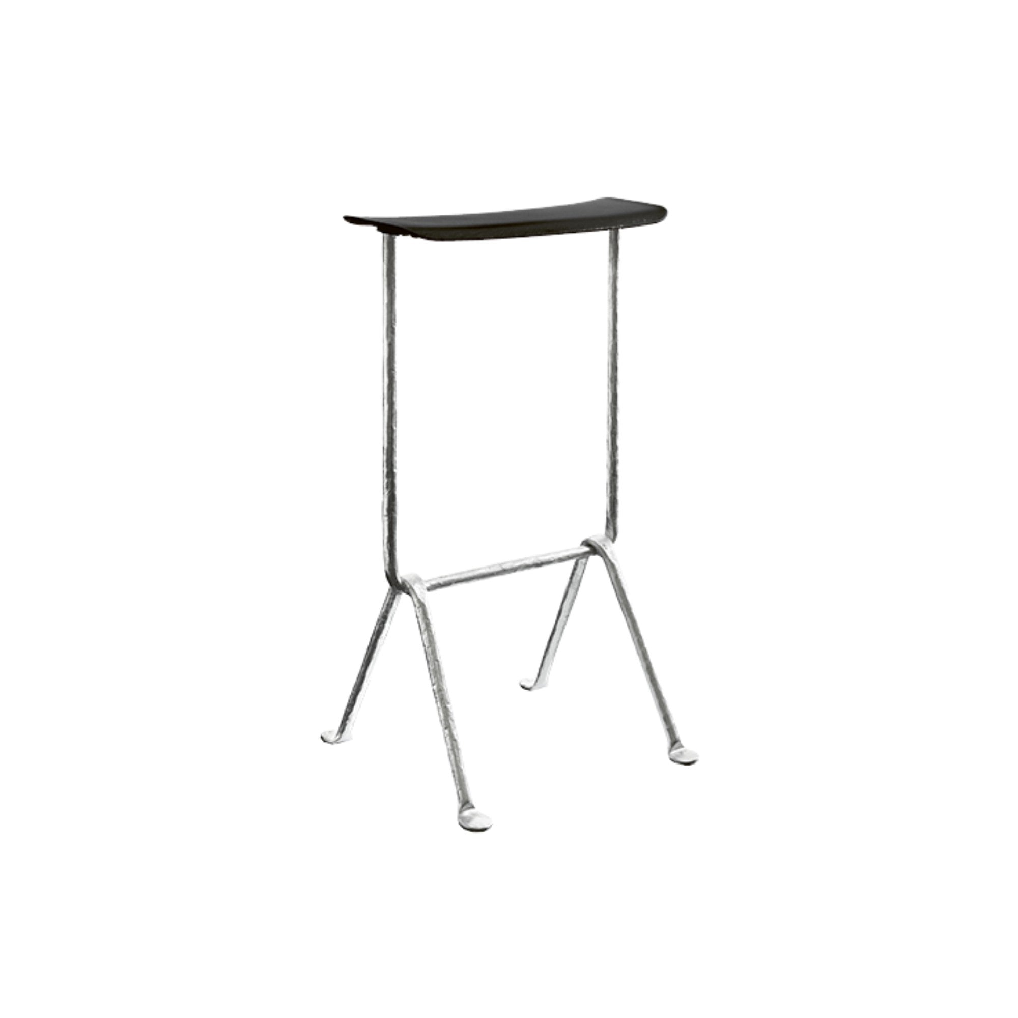 Designed by Ronan & Erwan Bouroullec in 2016, the Officina Stool combines industrial durability with refined comfort. Its wrought iron frame supports a seat in glass fibre–reinforced polypropylene or beech plywood, with optional premium leather or Kvadrat fabric upholstery, available in two heights for versatile indoor and outdoor use.