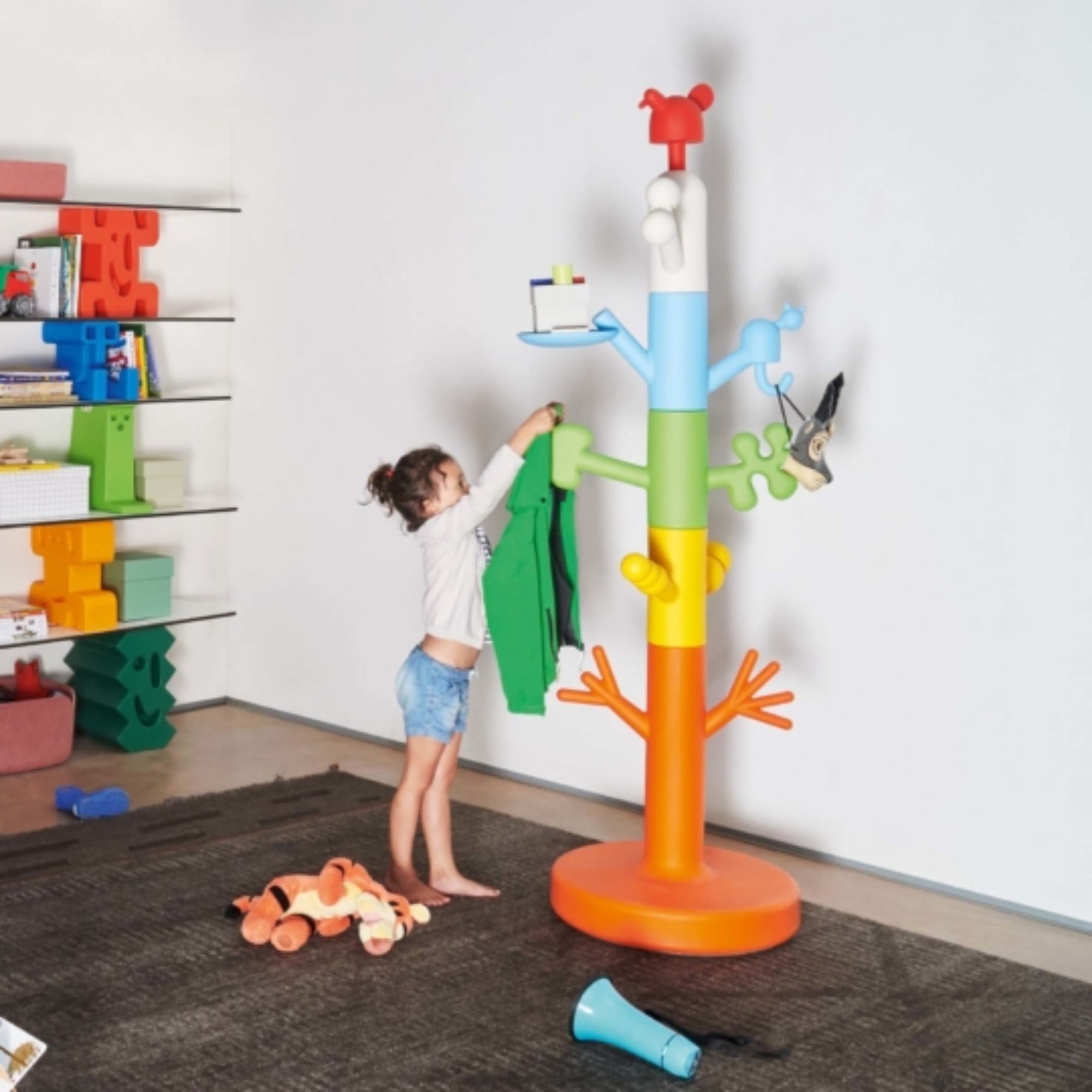 Designed by Oiva Toikka in 2009, the Paradise Tree Coat Stand is a sculptural and functional accessory. Crafted from rotational-moulded polyethylene with a galvanized steel inner frame, it combines playful design with sturdy construction, making it ideal for contemporary interiors.