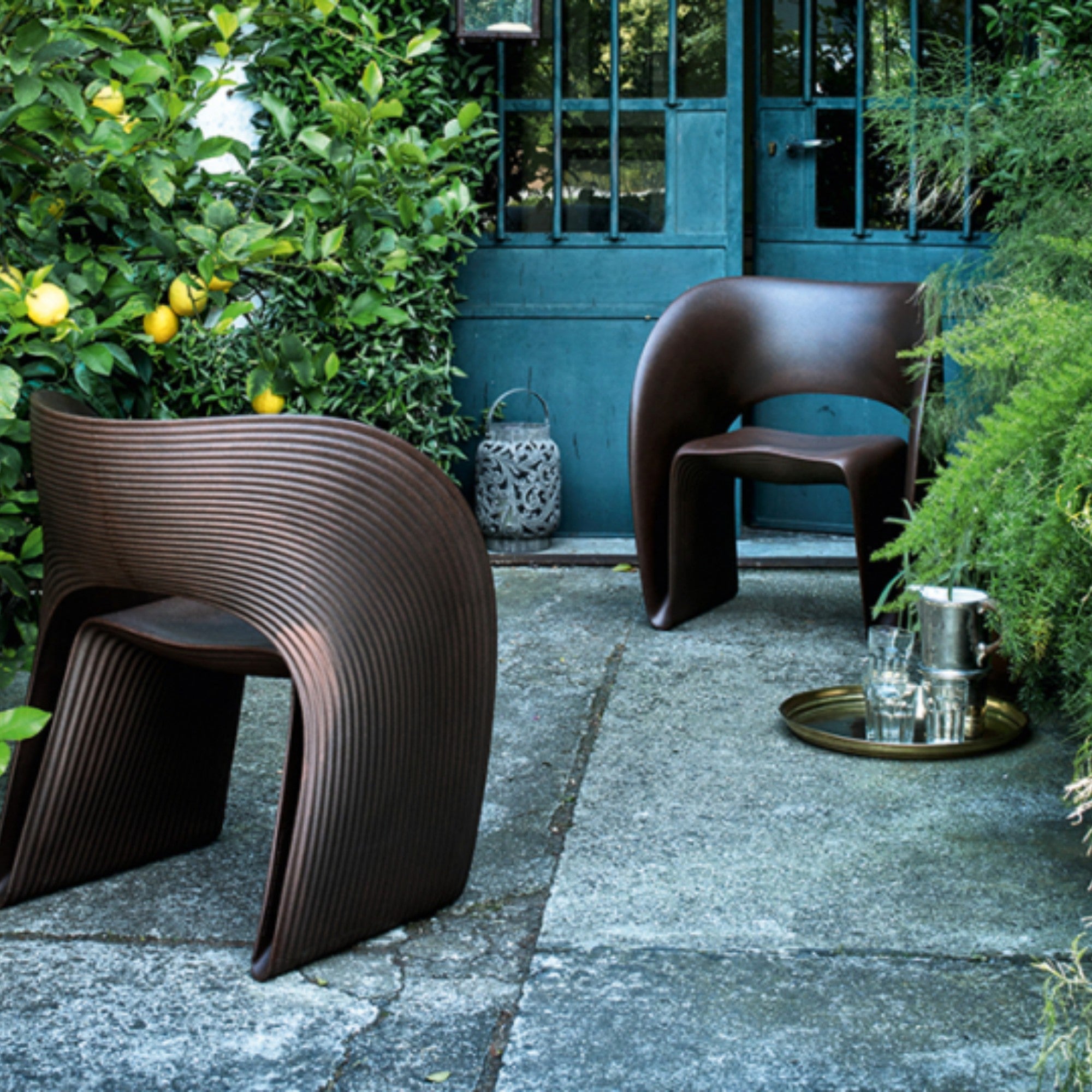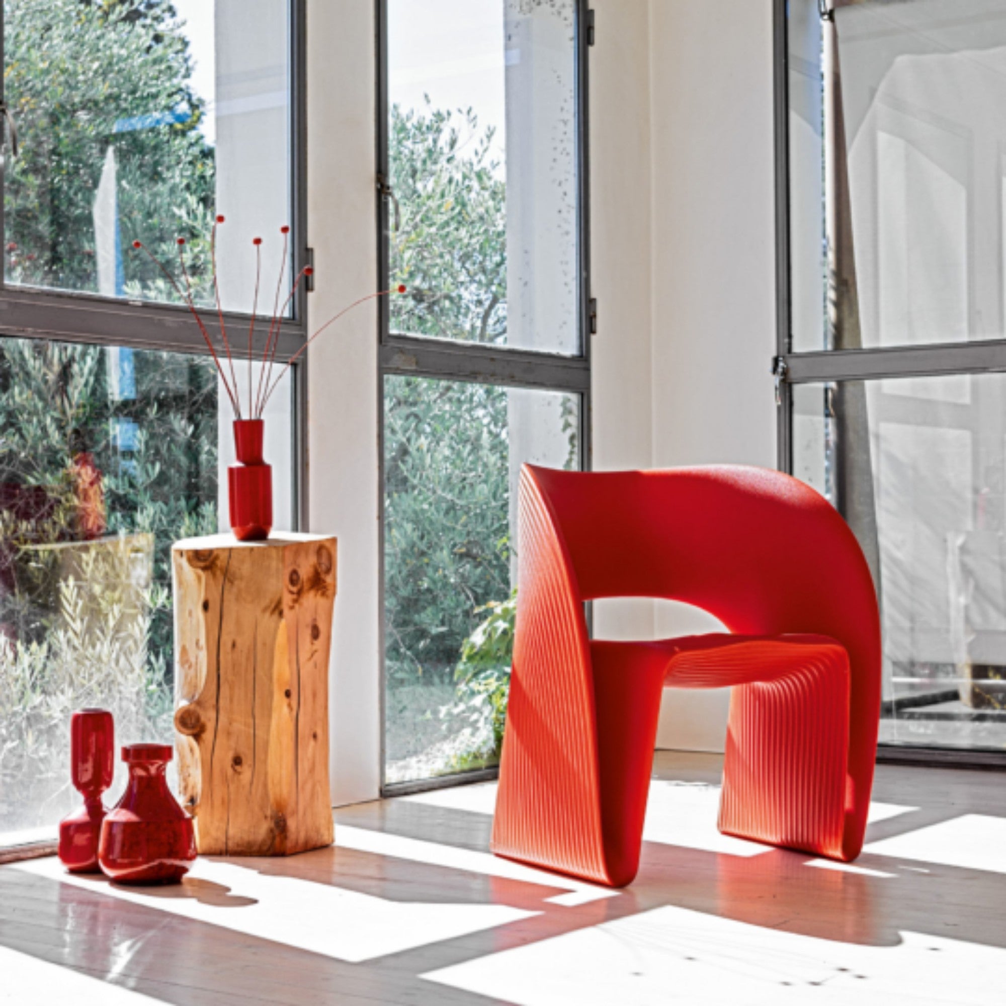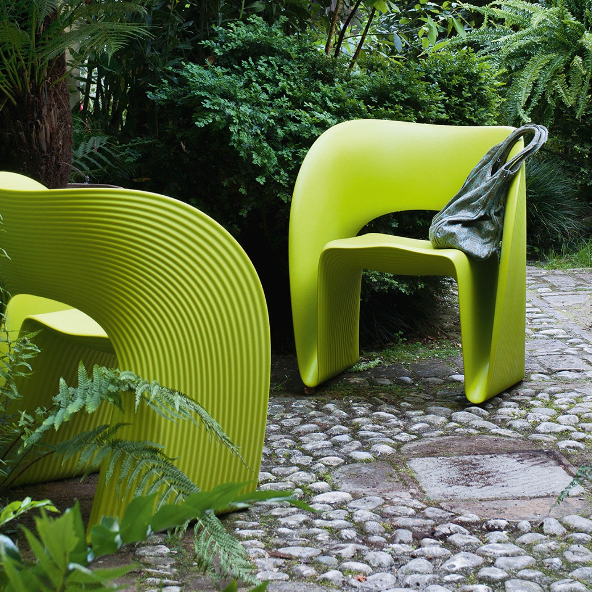 Designed by Ron Arad in 2011, the Raviolo Chair is a low, sculptural seating piece crafted from rotational-moulded polyethylene. Durable and weather-resistant, it’s ideal for outdoor use, combining playful design with functional comfort for contemporary spaces.