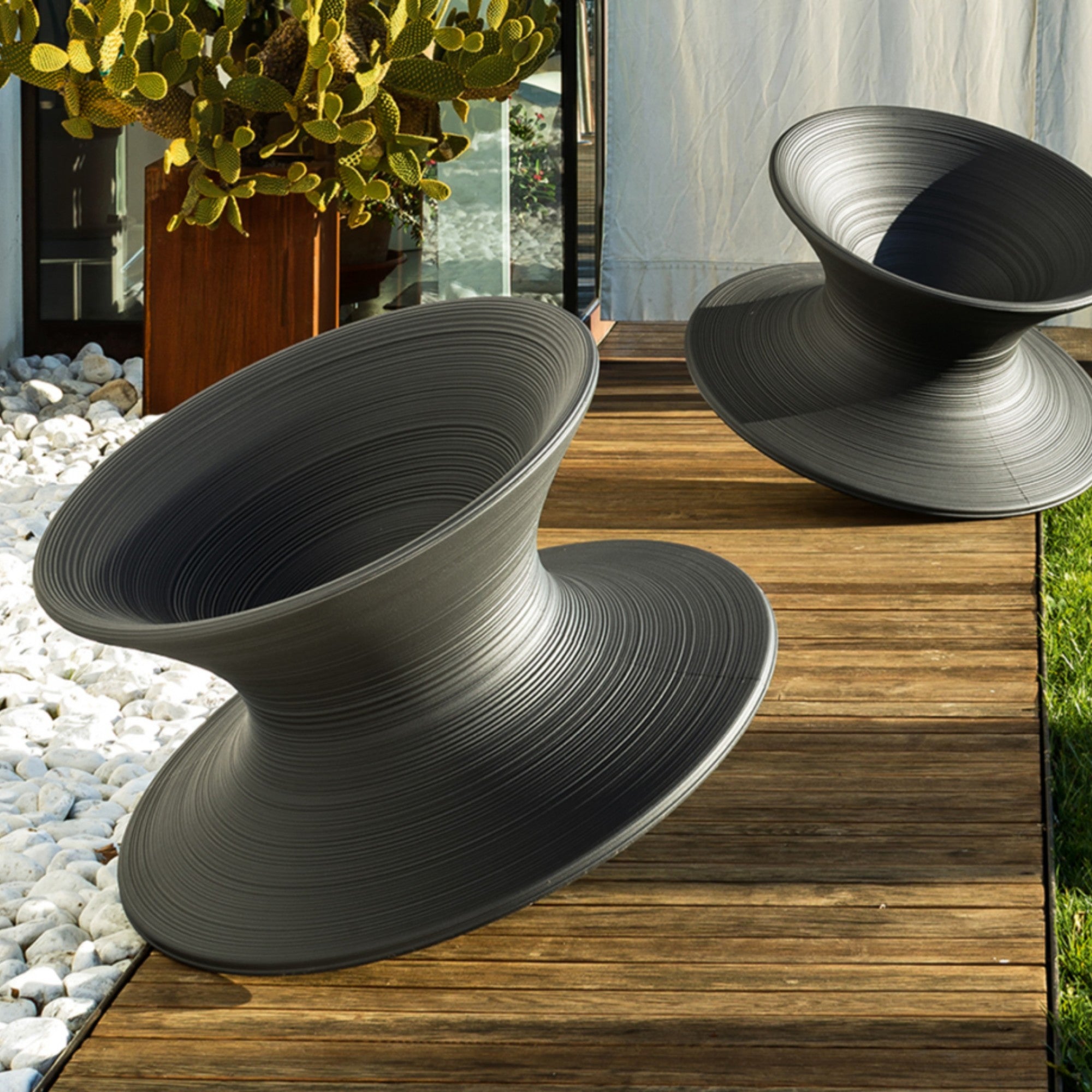 Thomas Heatherwick’s Spun Chair transforms a single rotated profile into a dynamic sculptural seat. Upright, it reads as art; tipped, it allows full circular rocking. This playful, 360-degree design blurs the line between furniture and sculpture, offering interactive movement and striking contemporary appeal.