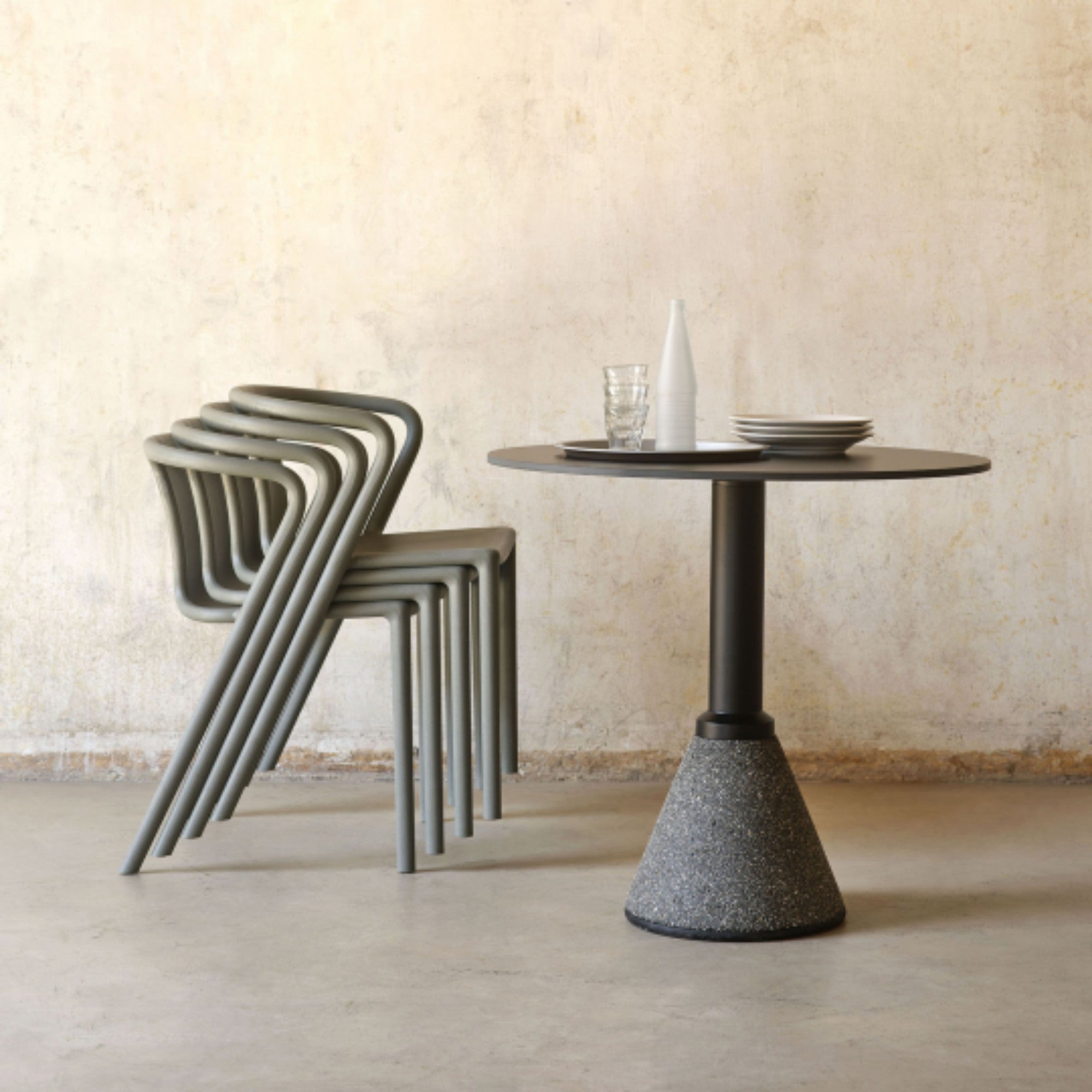Designed by Konstantin Grcic in 2006, the Table_One Bistrot features a concrete base with anodized or painted aluminium frame and an HPL top. Available in multiple dimensions and outdoor-ready versions, it combines durability with minimalist, contemporary design for versatile indoor and outdoor settings.
