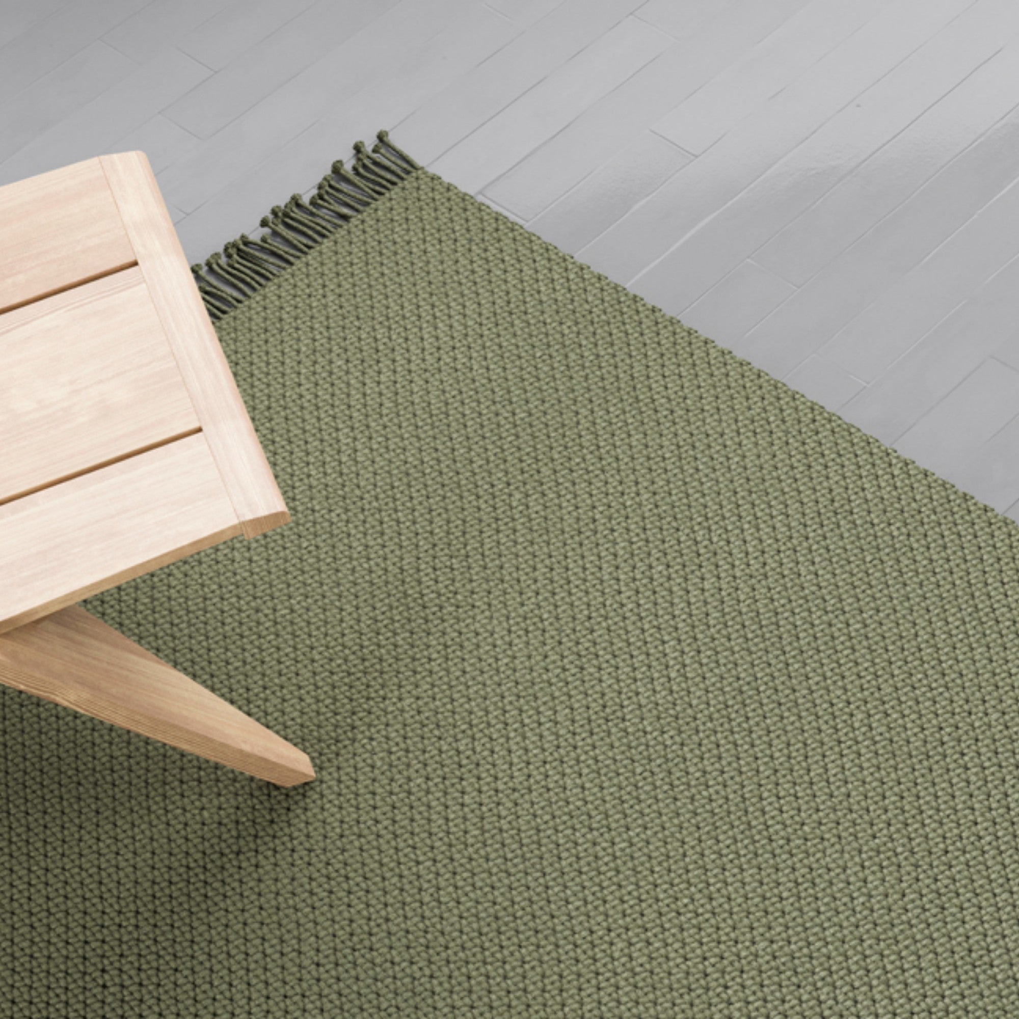 The Maharam Clove is a high‑traffic rug featuring 60% wool, 21% post‑industrial recycled cotton and 19% mixed recycled fibers. Hand‑knotted, ¾″ thick, and 15.7 oz/sq ft weight, it’s designed for durability and rich texture in premium interiors.