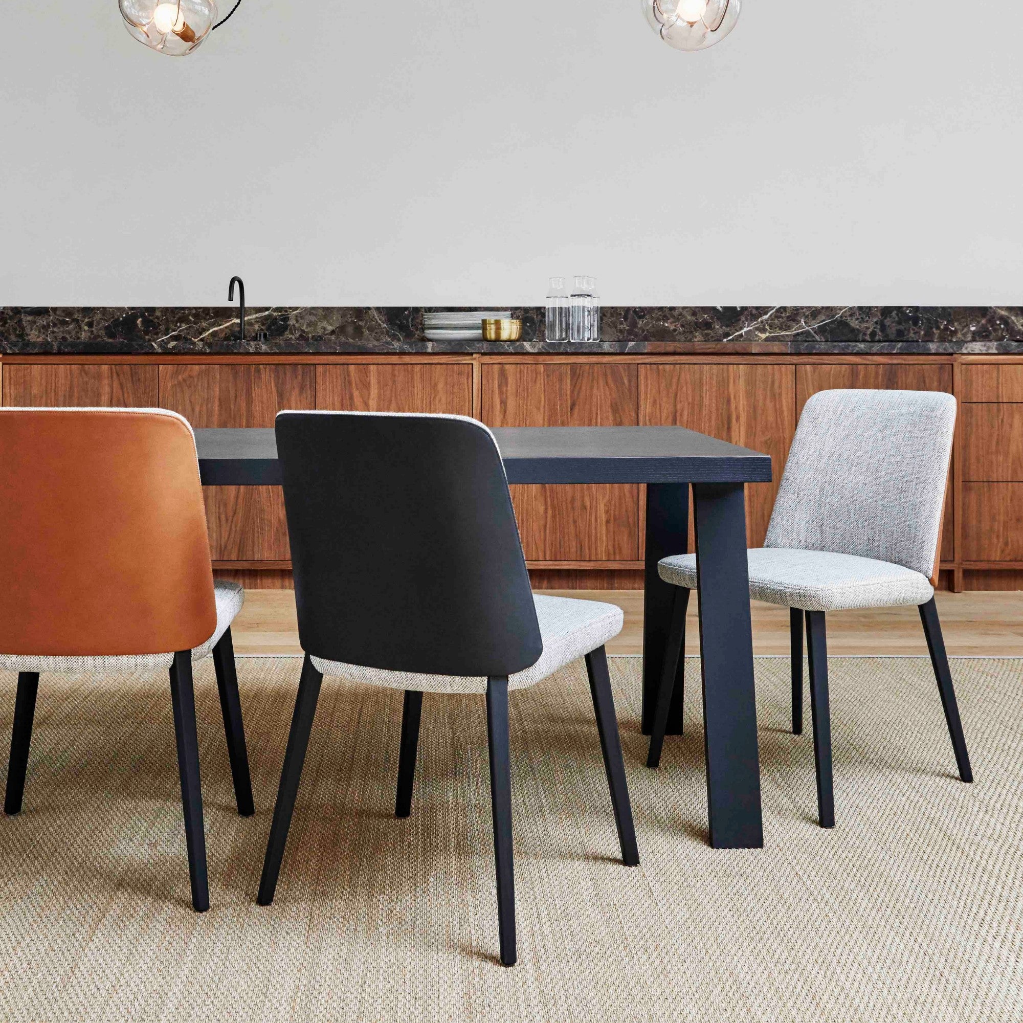 The Back Me Up Chair combines comfort with sculptural elegance. Designed to highlight the beauty of its back, it features a subtly raised backrest and customizable materials for both seat and back. Its flexible, feathered back and refined leg positioning offer ergonomic support and contemporary sophistication.