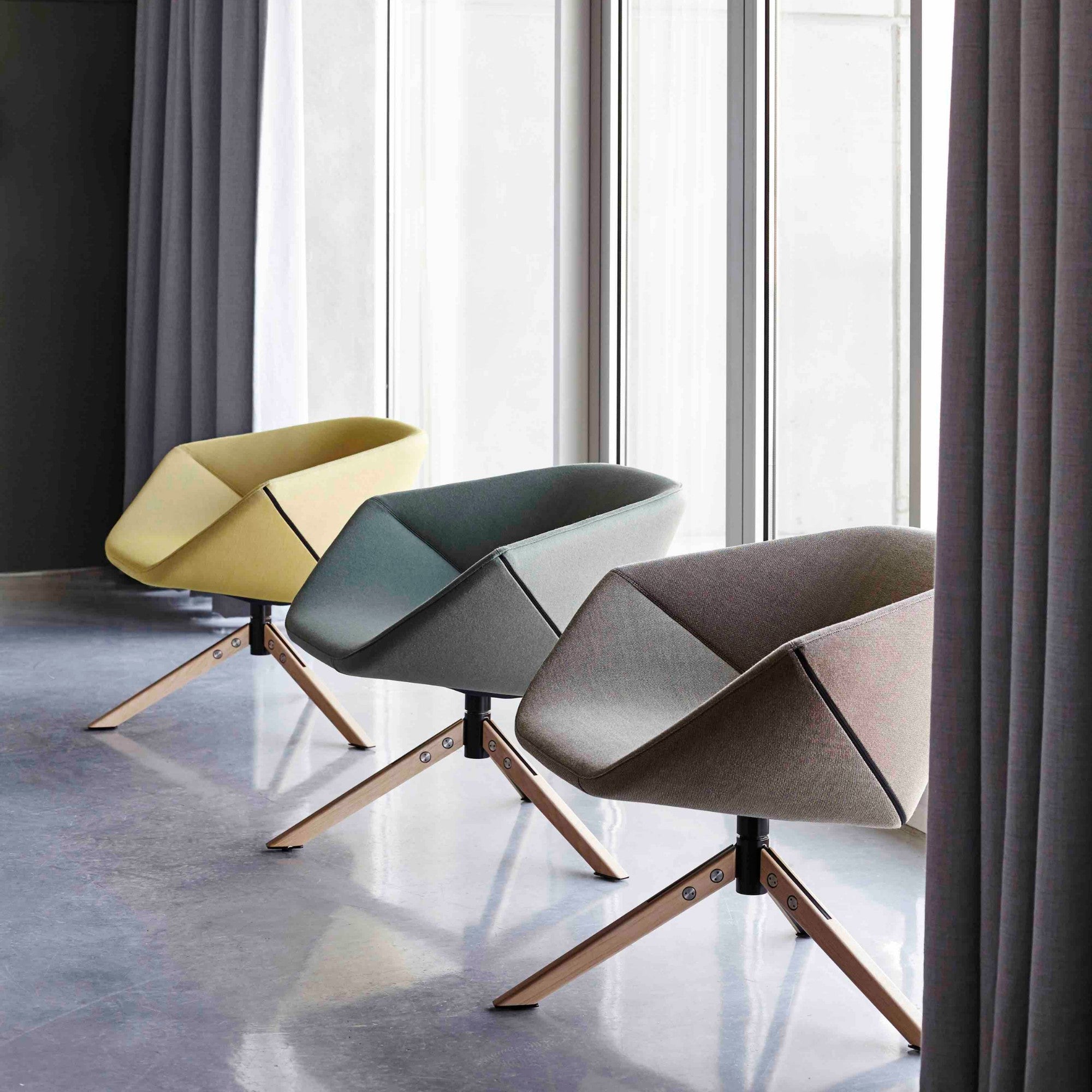 Ella / Ella Soft combines refined design with exceptional comfort. The sleek swivel chair features a smooth shell construction suited for home, office, or public spaces. The Ella Soft adds plush padding and elegant tone-on-tone stitching, with customisable fabric or leather options inside and out for a tailored aesthetic.