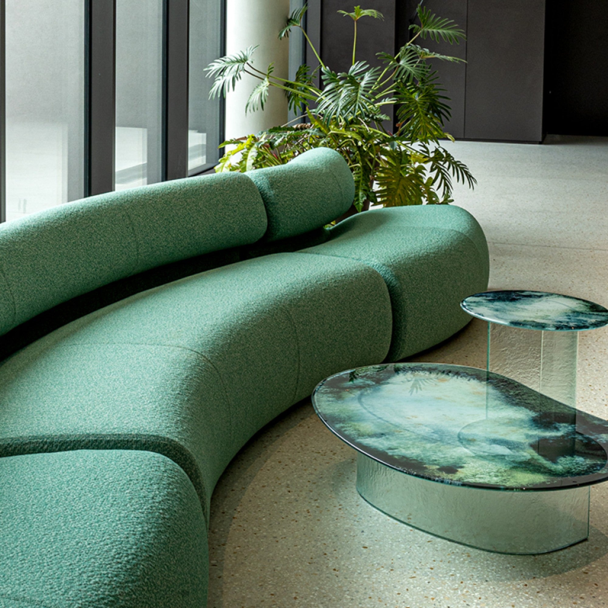 Gruuve by Patricia Urquiola reimagines the free-form sofa with bold 1970s spirit and fluid, dynamic lines. Its modular design encourages both formal and informal seating, creating convivial spaces. Available in custom fabrics, Gruuve is a charismatic centerpiece for contemporary homes and public interiors alike.