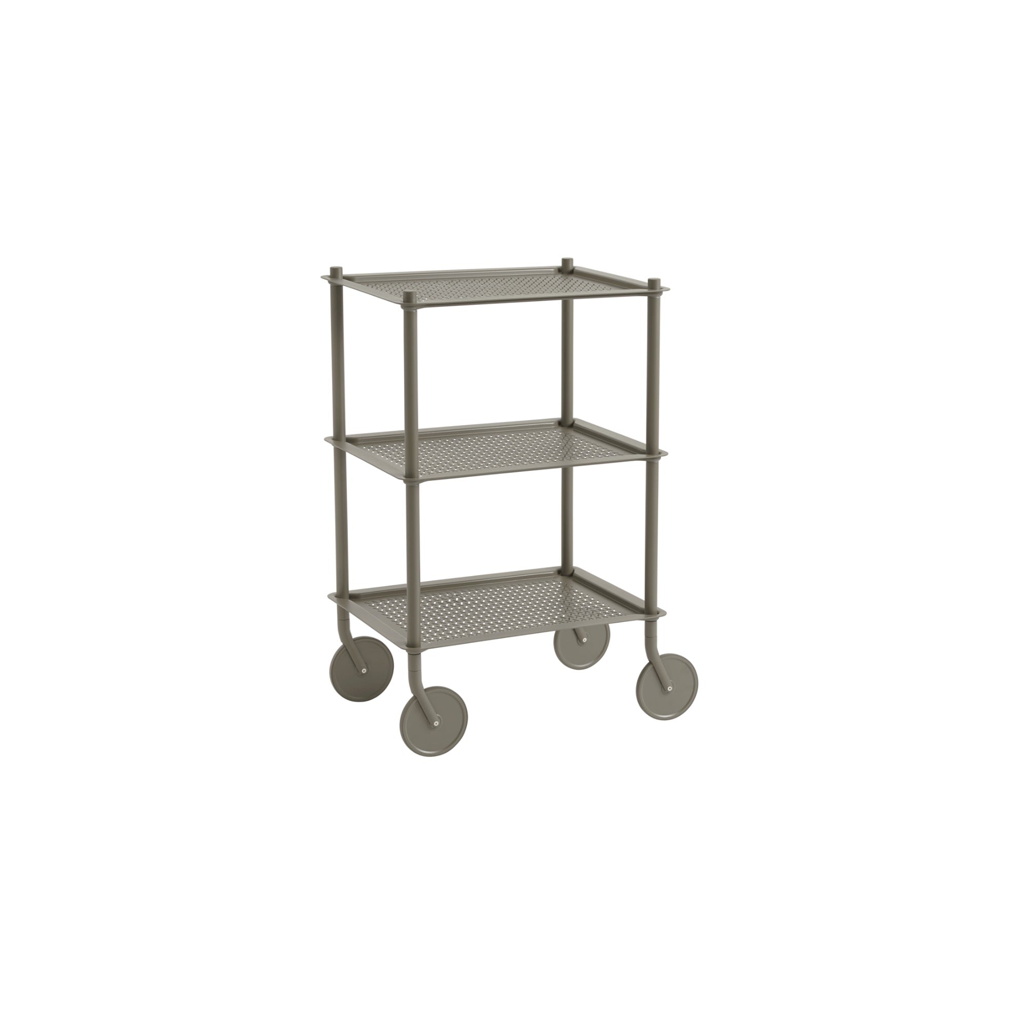 The Flow Trolley combines modern design with functionality, featuring grooved embossed metal trays and smooth-rolling wheels for effortless mobility. Its monochrome aesthetic adds contemporary storage to homes, offices, or hospitality spaces, while the Taupe finish makes it suitable for both indoor and outdoor use.