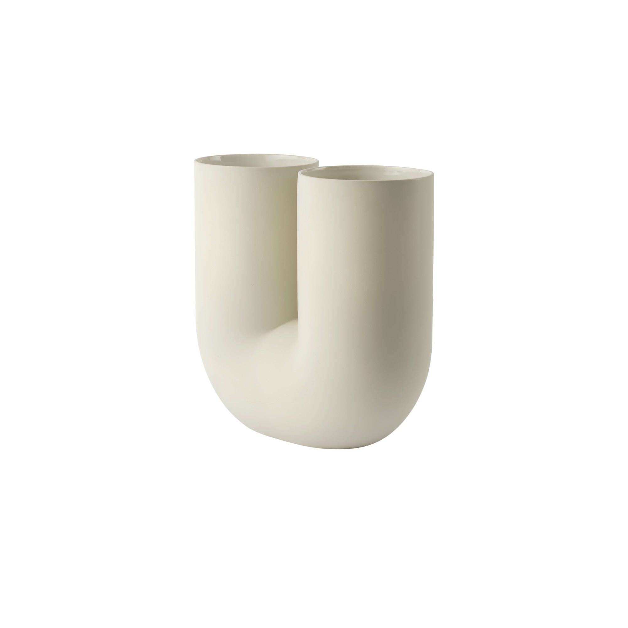 The Kink Vase reimagines the classic flower vase with contemporary form and playful design. Featuring a double opening and satin-glazed finish, it adds sculptural elegance to any space. Available in two sizes, it works as a striking floor statement or a refined tabletop accent.