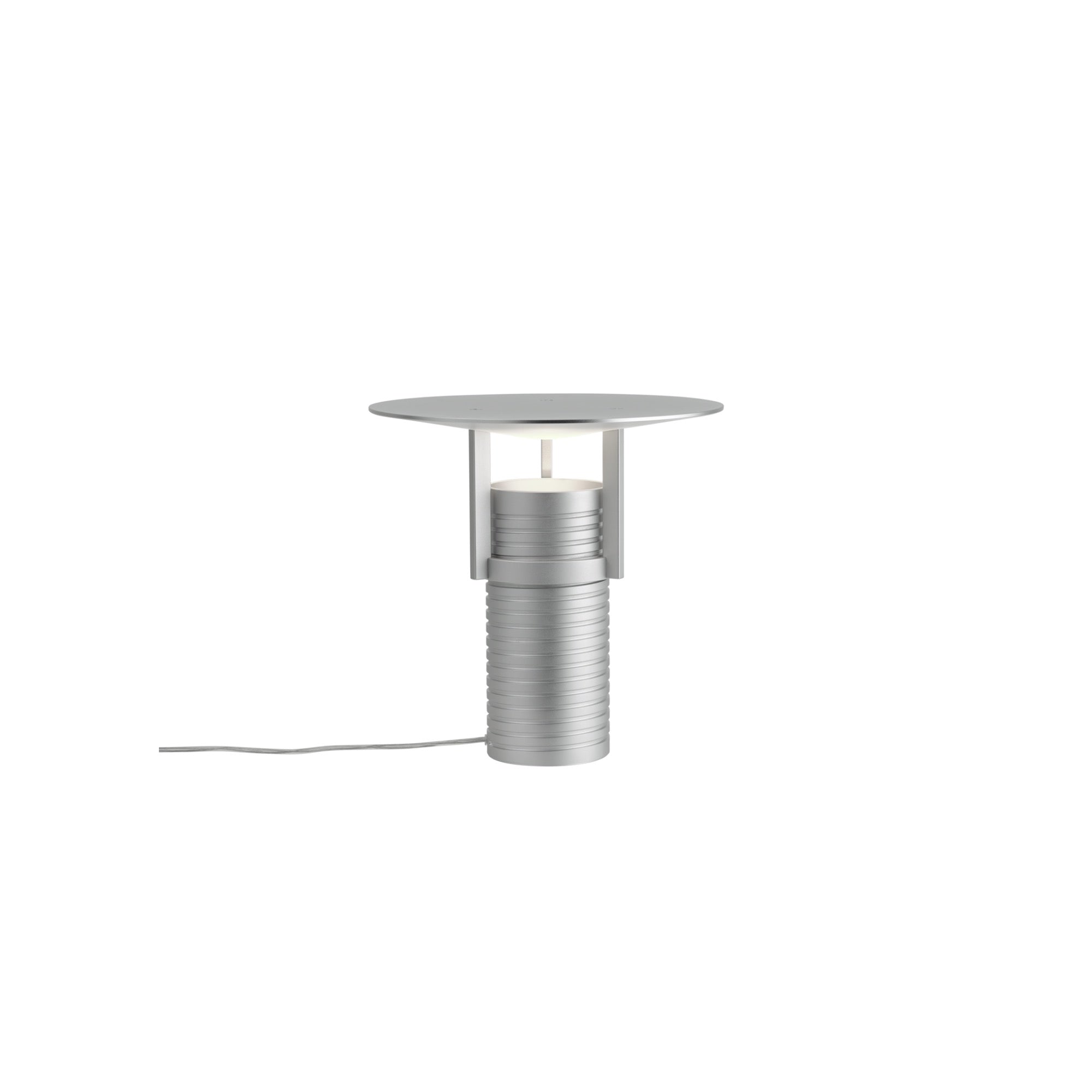 The Set Lamp balances industrial edge with sculptural elegance, casting an upward, indirect glow through its aluminium shade. With an adjustable, threaded body for tactile rotation, it allows personalised light intensity and angle. Versatile in placement, it stands out as a bold centrepiece in any setting.