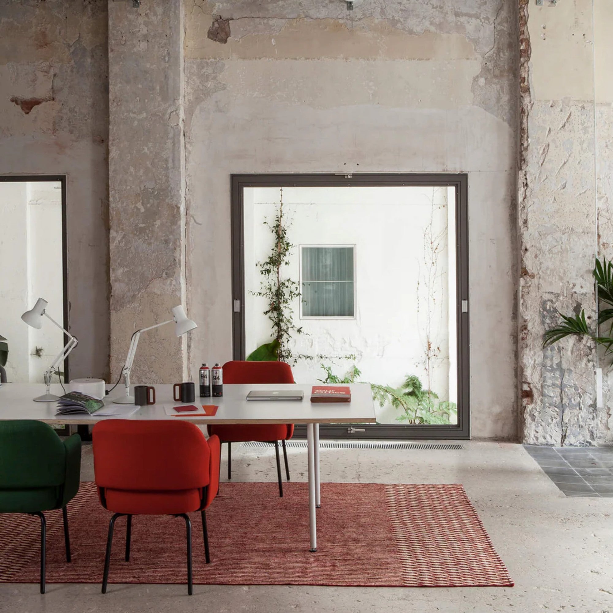 Blur by the Bouroullec brothers features a signature geometric sequence that creates a subtle sense of movement. Lightweight yet durable, this indoor kilim rug comes in three color variations, each showcasing delicate colored lines set against a soft, neutral background for timeless appeal.