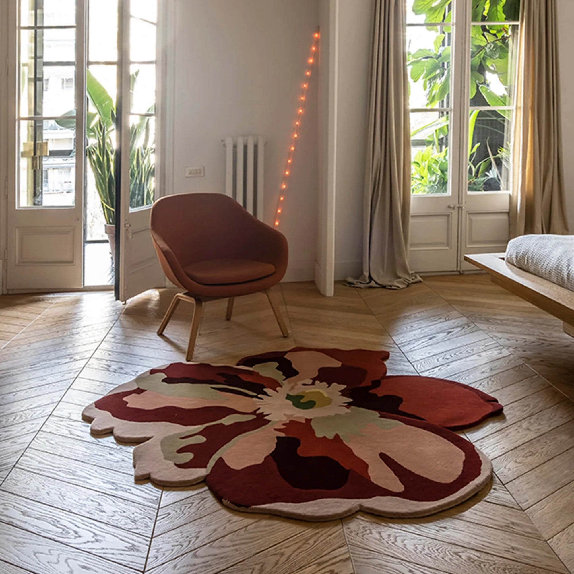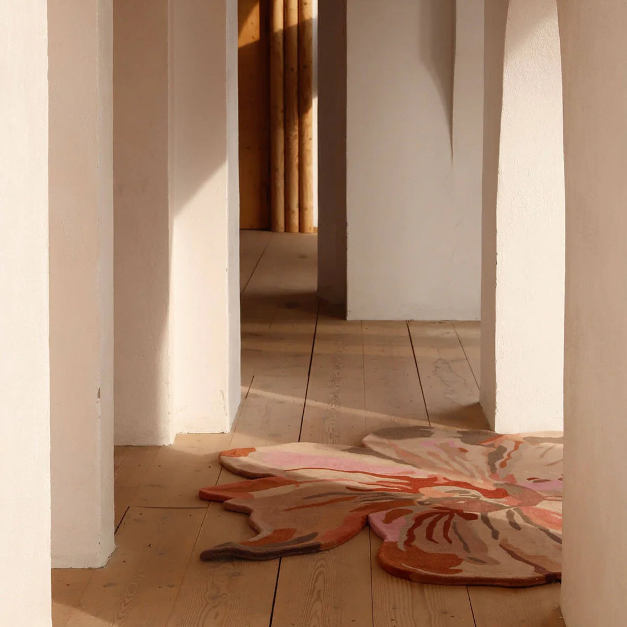 The Flora collection is inspired by Nani Marquina’s admiration for artist Santi Moix and his vibrant, poetic works. Exploring the delicate balance between life and death, Moix’s biomorphic flowers capture the beauty of transition — from budding and bloom to graceful decay — through expressive color and exquisite detail.