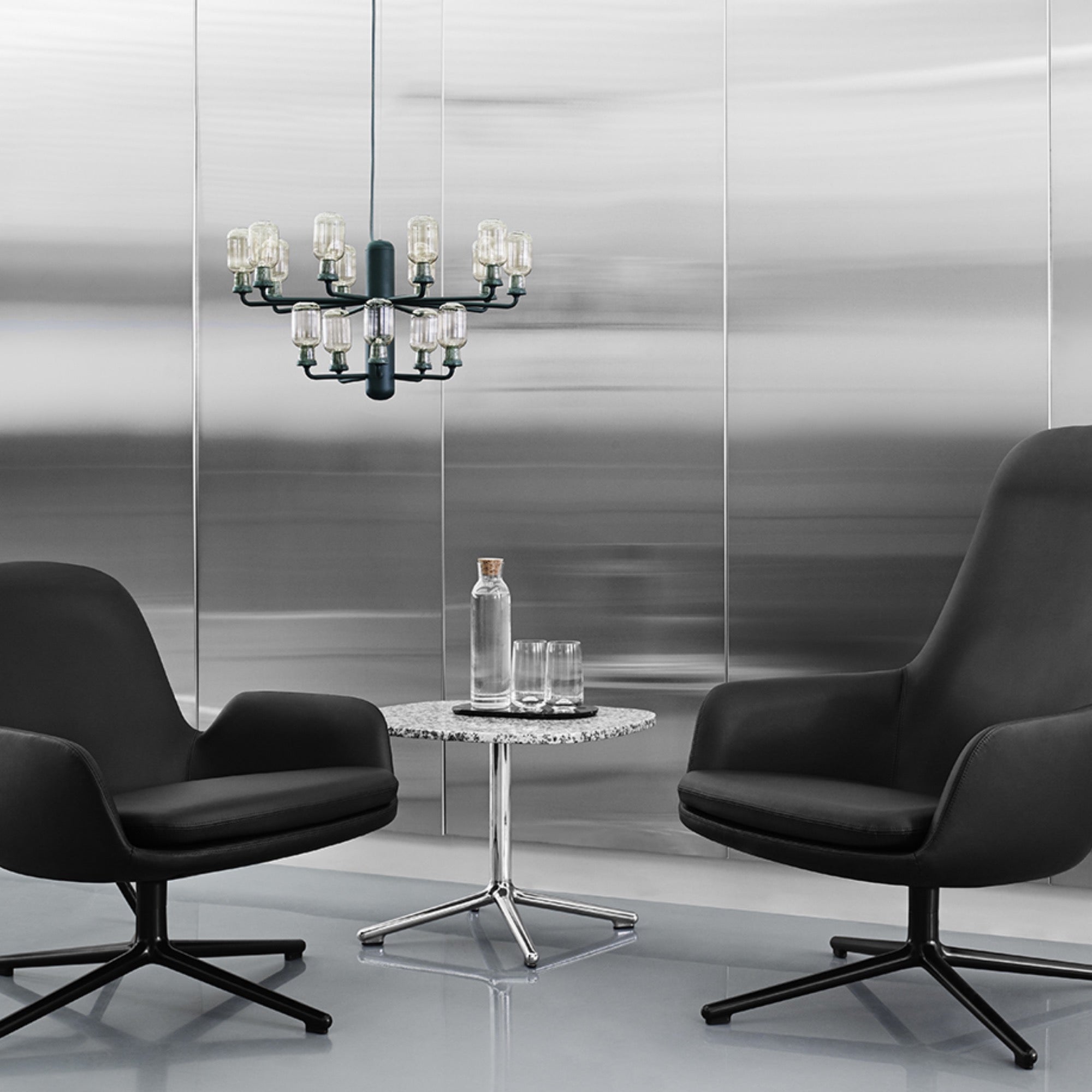 Normann Copenhagen’s Amp lamps, designed by Simon Legald, draw inspiration from 1960s tube amplifiers. Crafted in marble and glass, they blend nostalgia with modern elegance. Available in gold/green, smoke/black, and white/white, the collection offers warm, atmospheric lighting—perfect solo, in pairs, or as striking clusters for any interior.