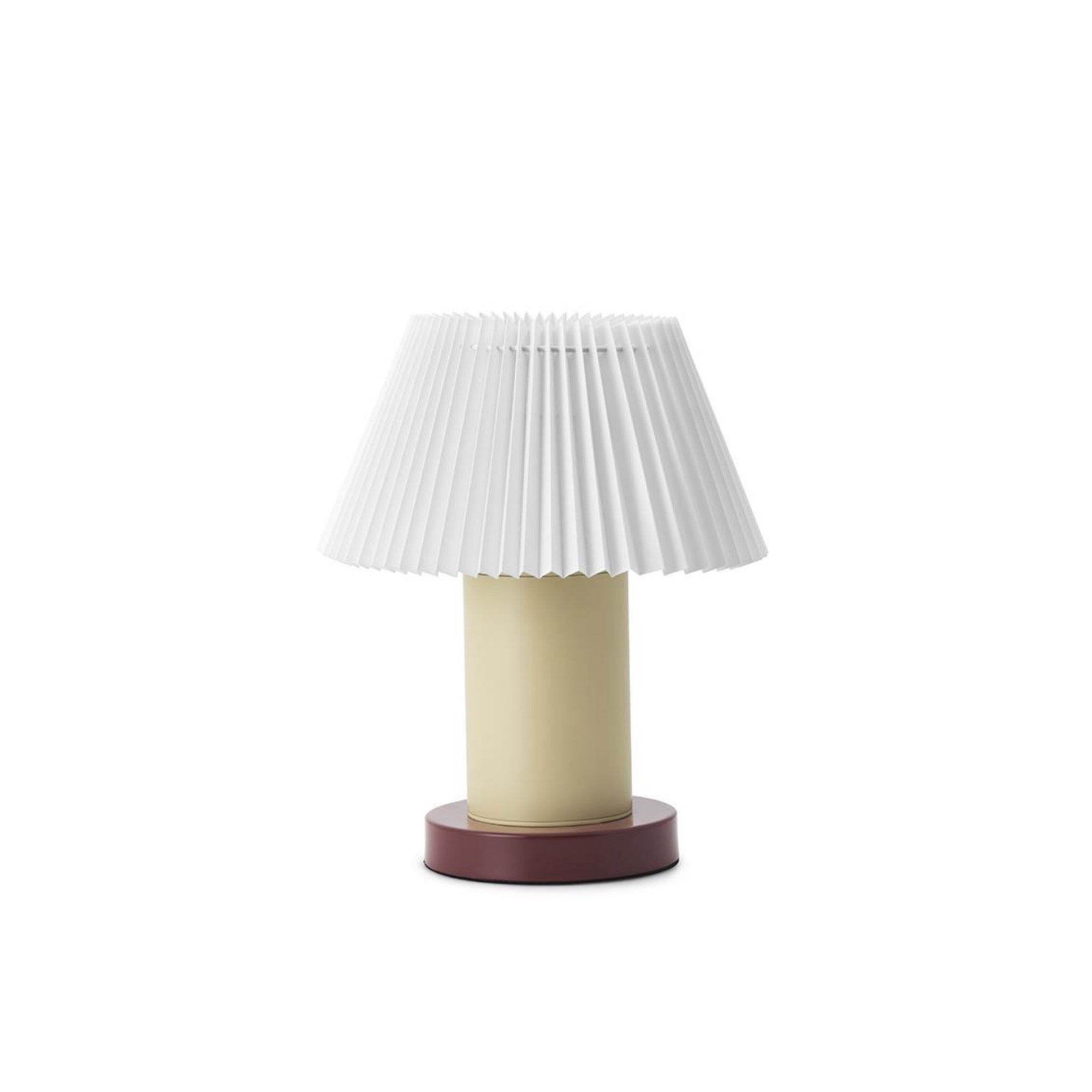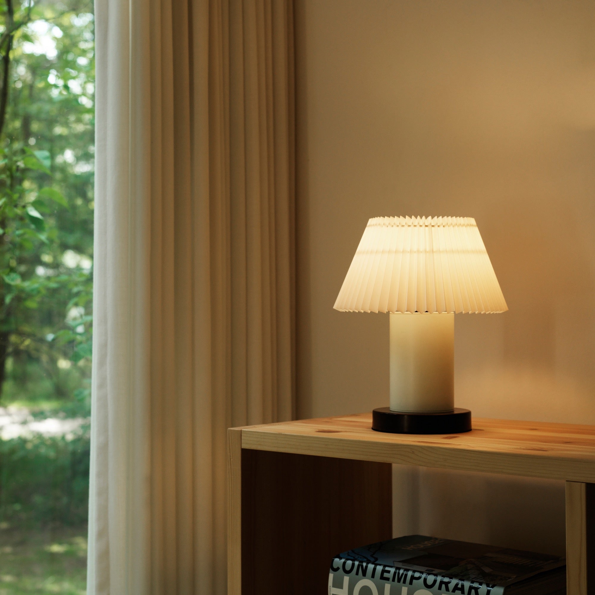 The Cellu Lamp reimagines the classic folded lampshade with a modern twist. Featuring a durable PVC shade atop a powder-coated aluminum column and steel base, its bold proportions and playful colors fuse timeless craftsmanship with contemporary design, making it a striking addition to any modern interior.