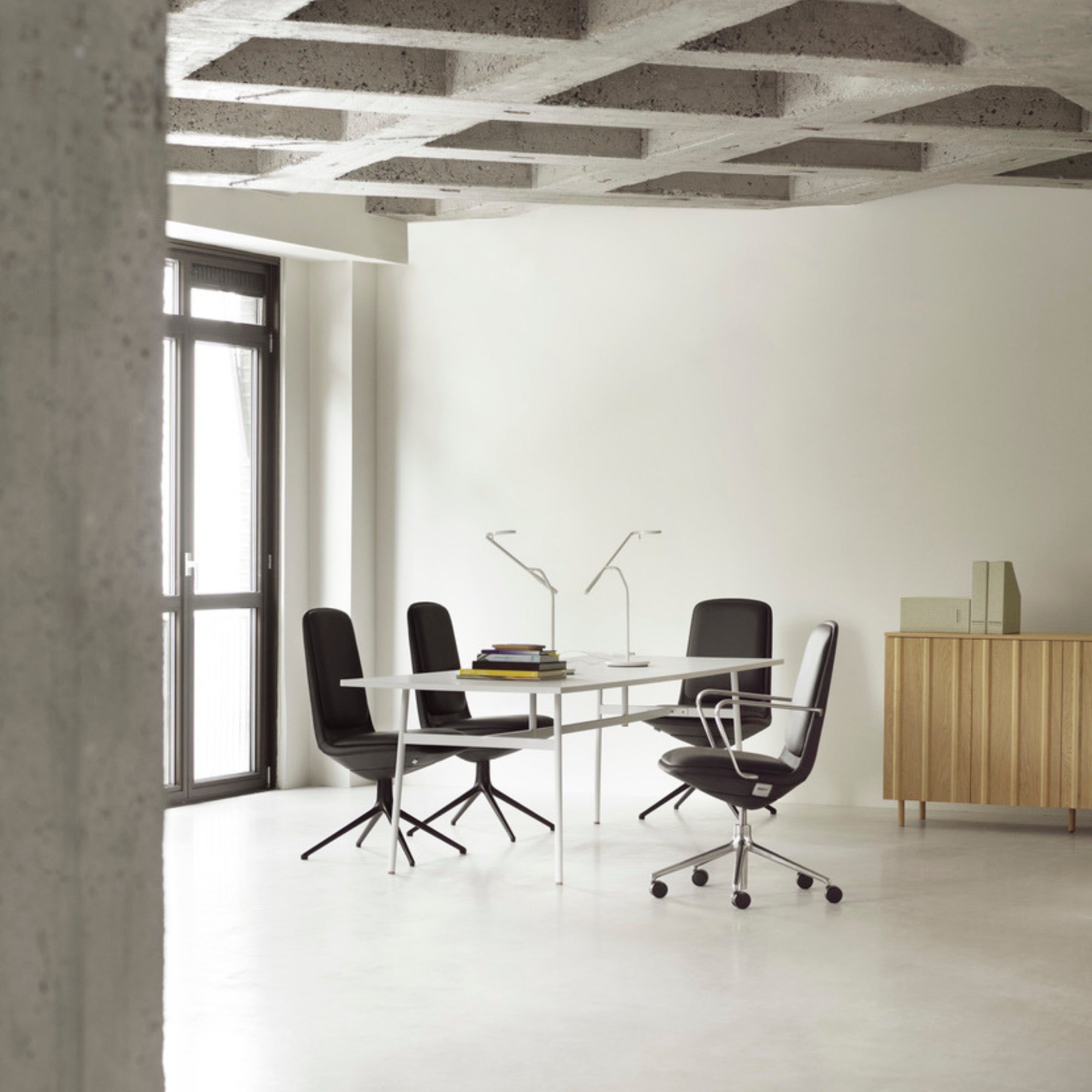 The Off Chair blends minimalist Scandinavian design with ergonomic functionality. Featuring integrated gas lift and tilt mechanisms, optional cushions, and high or low backrests in a variety of fabrics and leathers, it offers customizable comfort and style—perfect for aesthetic office environments or versatile workspaces.