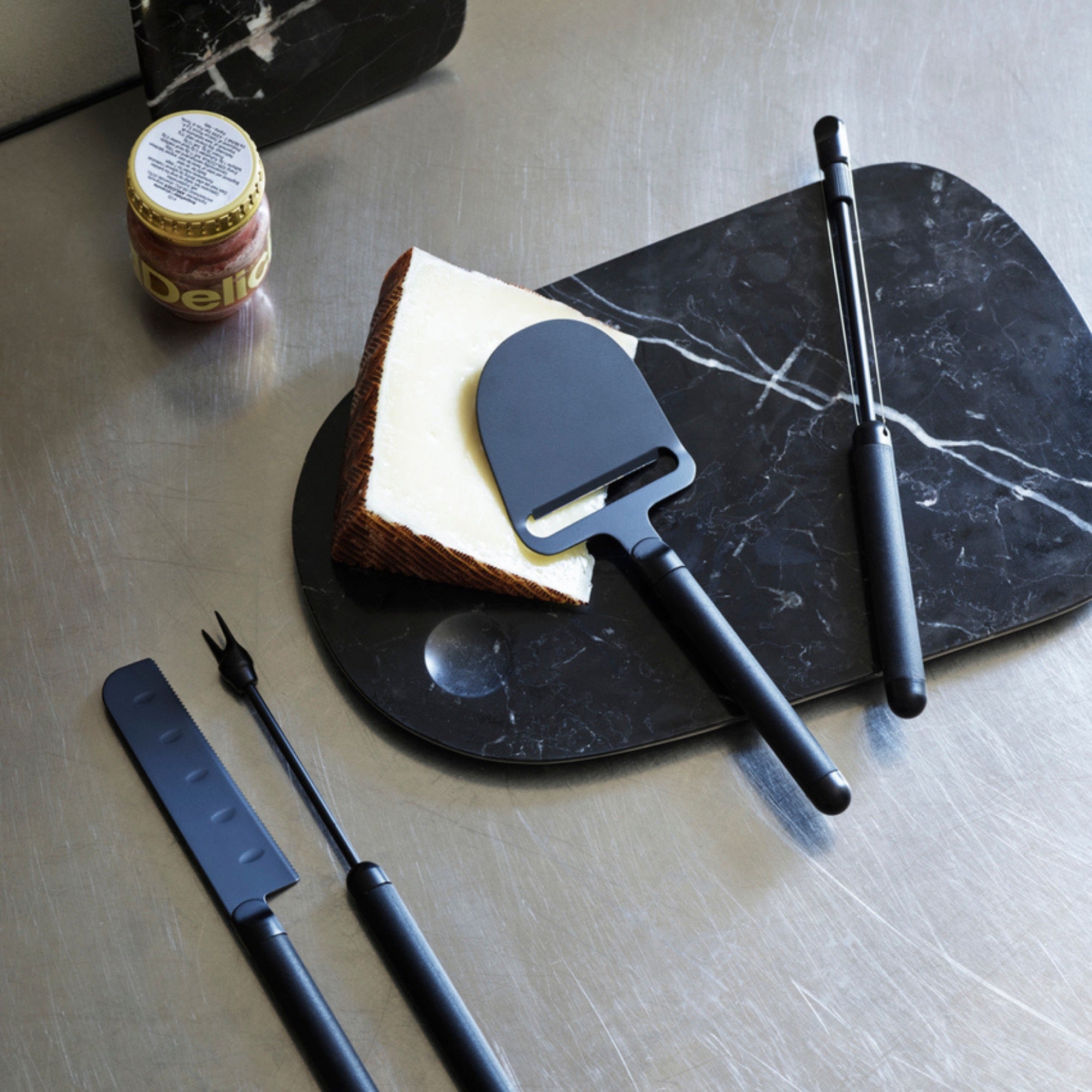 Pebble by Simon Legald is an elegant cheese-serving collection featuring a black marble board and four minimalist utensils for soft, medium, and hard cheeses. With organic shapes and refined details, Pebble elevates everyday serving, perfect for cheese, charcuterie, or as a stylish addition to your table or décor.