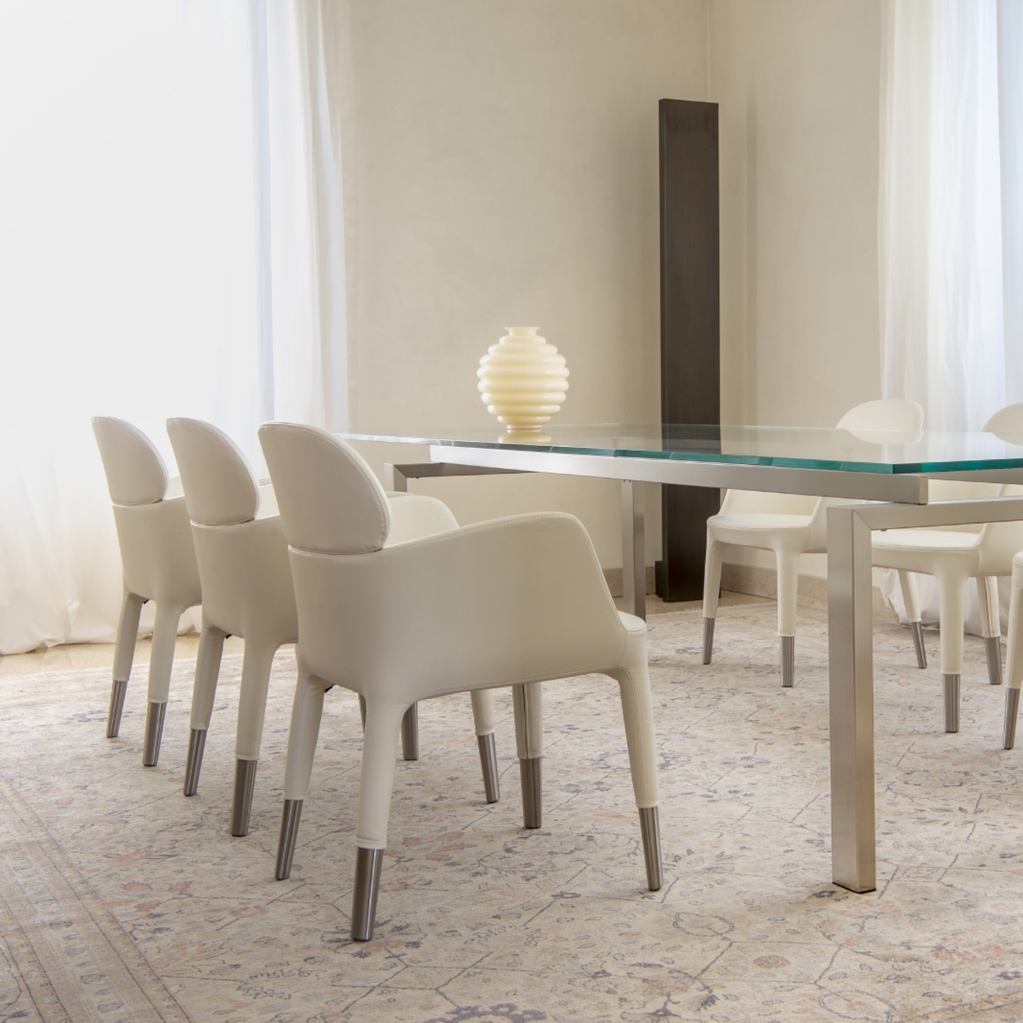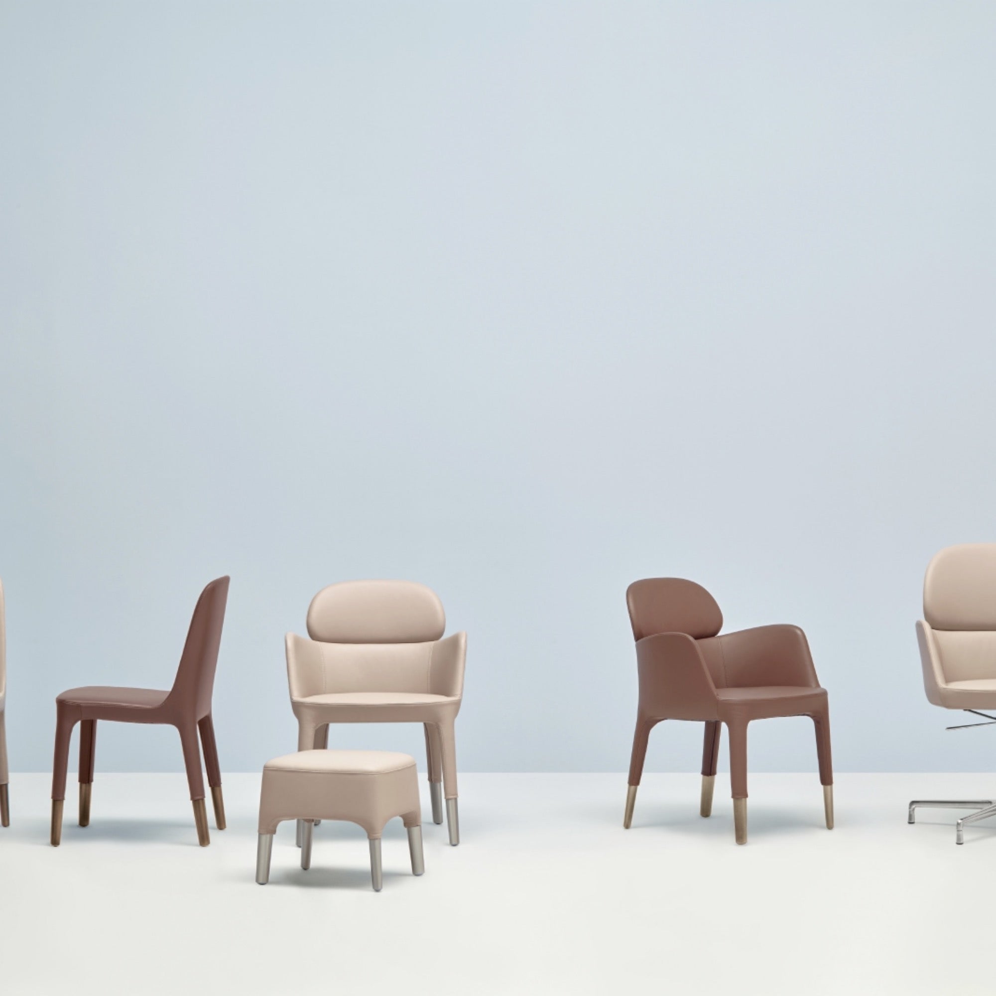 Ester embodies elegance, ergonomics, and functionality. Defined by its soft curves and exceptional comfort, this upholstered armchair with elastic belts and die-cast aluminium legs graces the interiors of the world’s most exclusive restaurants and hotels.