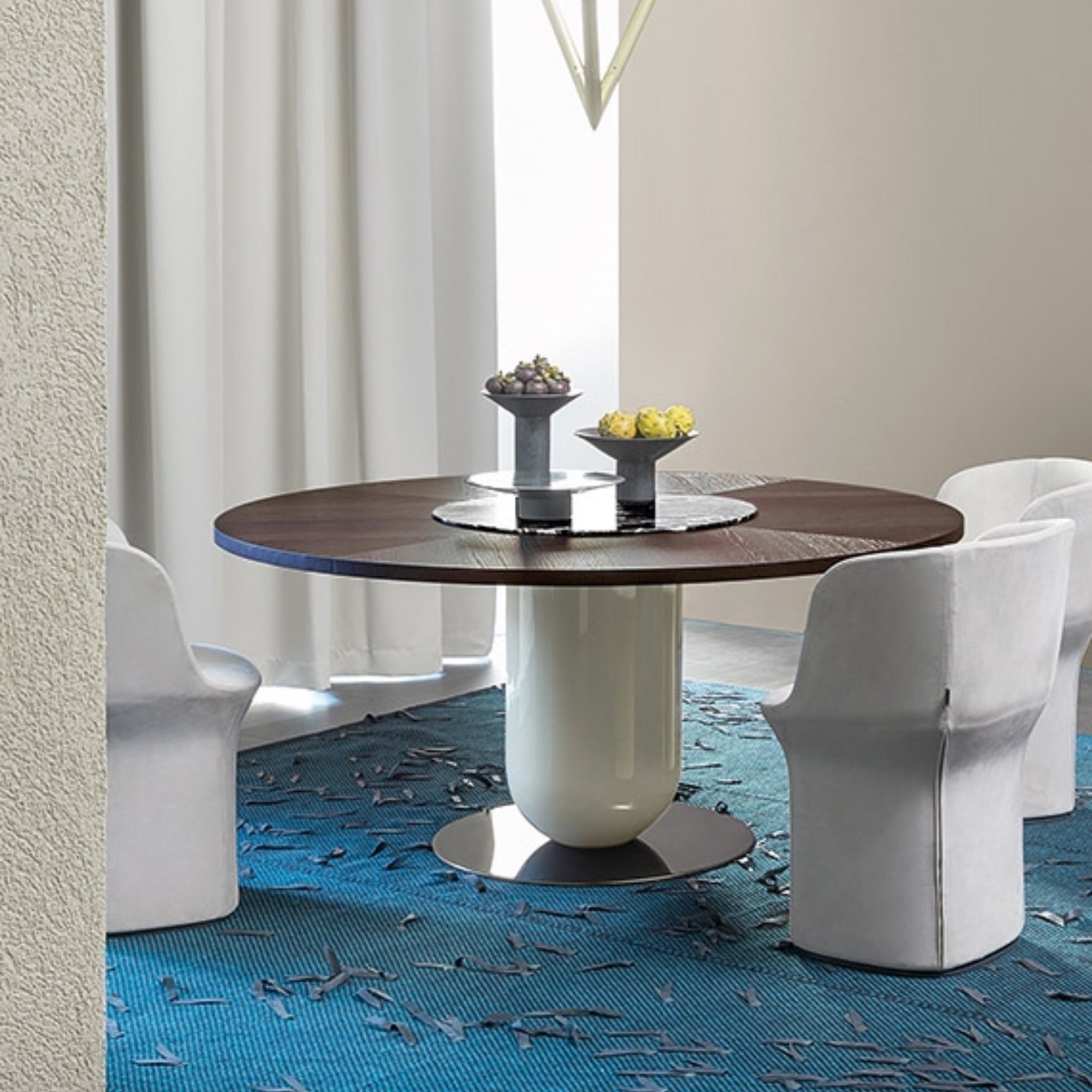 Ettore is a sculptural and symbolic table that playfully combines geometric forms in a bold, ironic composition. Designed as a tribute to Ettore Sottsass, it embodies a spirit of experimentation—blending emotion, elegance, and balance. Its monumental base and reflective materials create the illusion of weightless suspension.