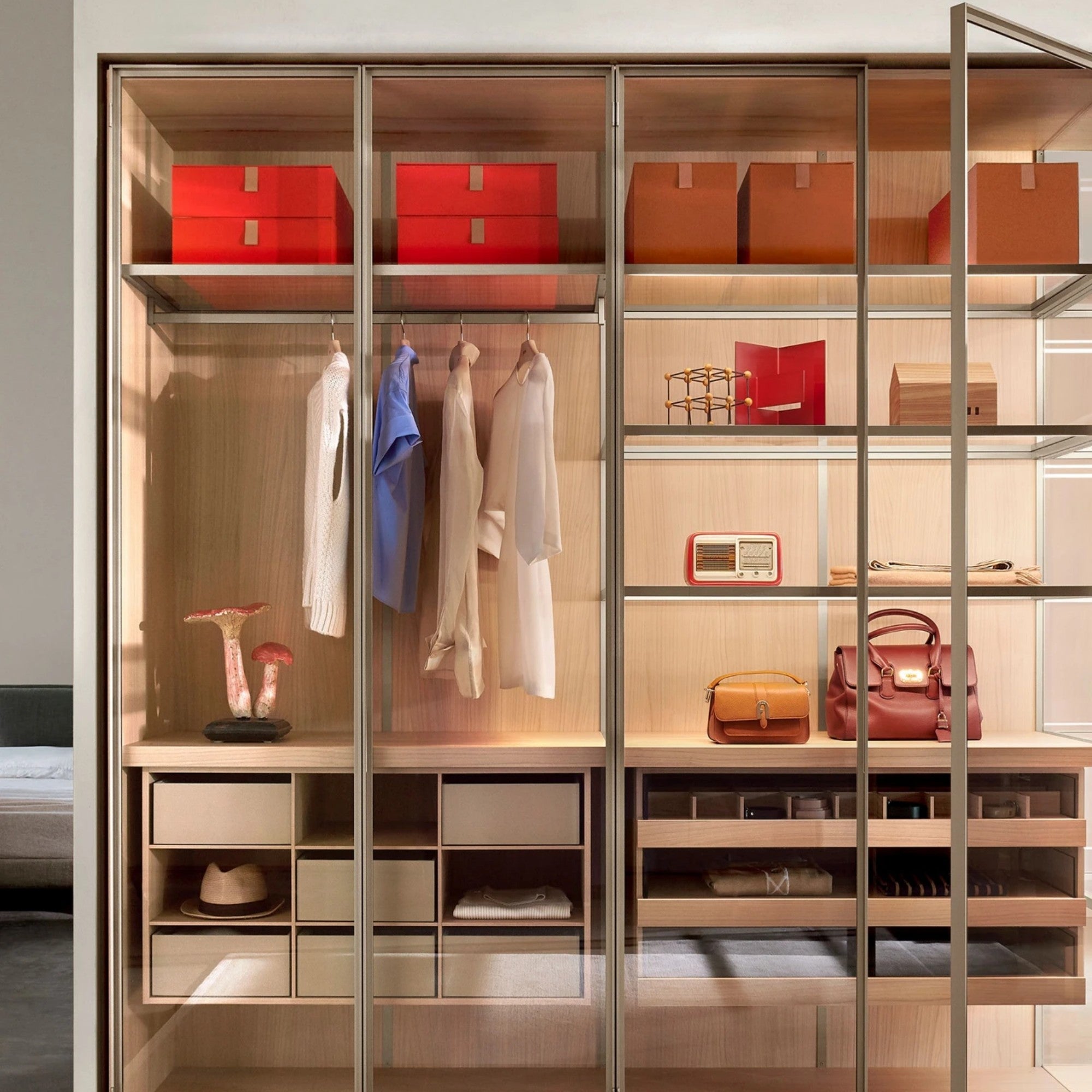 The Storage system offers a versatile range of interior fittings available across all finishes and unit widths. Choose from shelves, racks, drawers, trays, holders, and baskets to create a fully customised, functional, and organised wardrobe tailored to every lifestyle need.