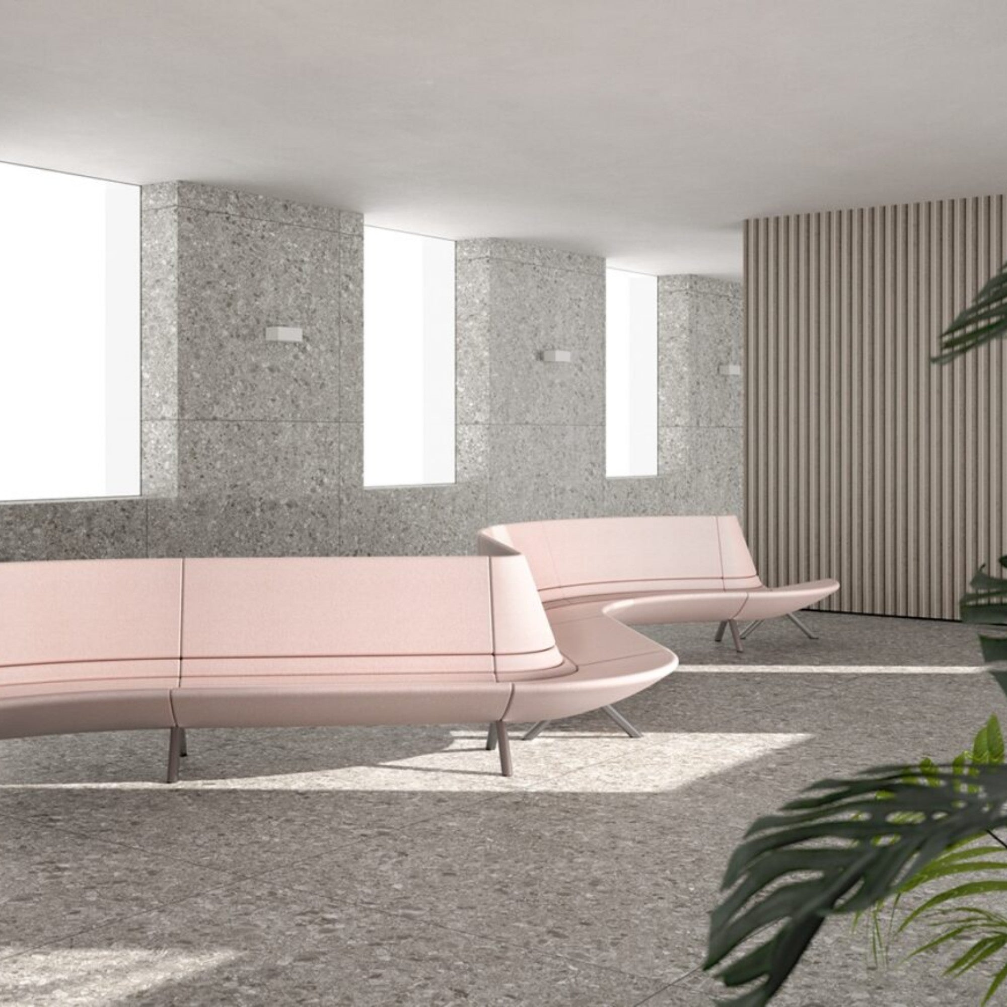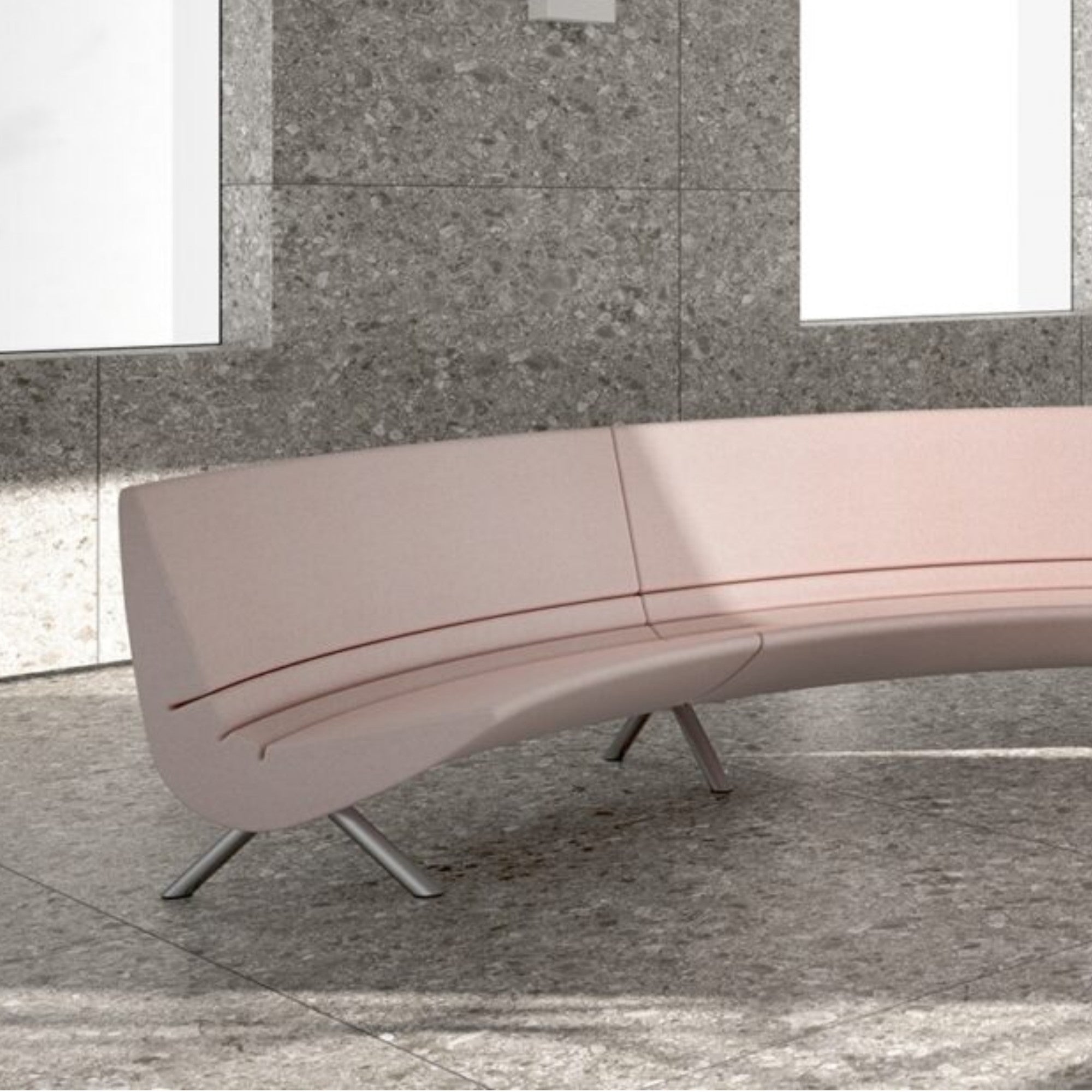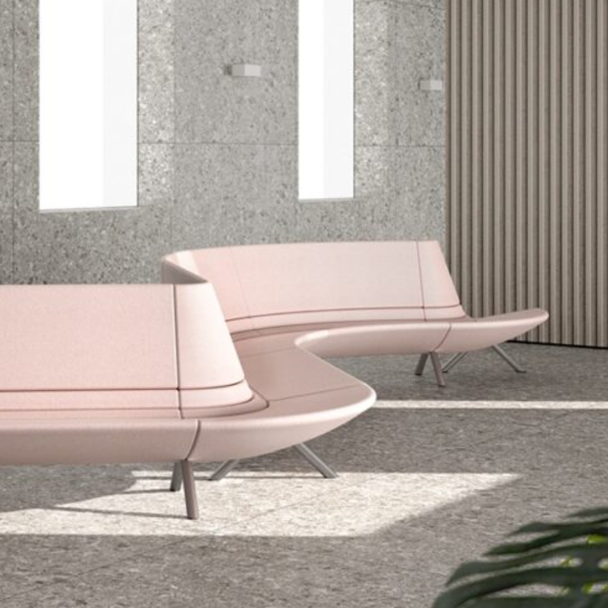 The Segis River Modular Seating System features a fluid, continuous line from backrest to seat, available in straight, curved, or circular modules. Designed for lounges and waiting areas, its sculptural form and customizable layouts create dynamic environments with elegance and comfort.