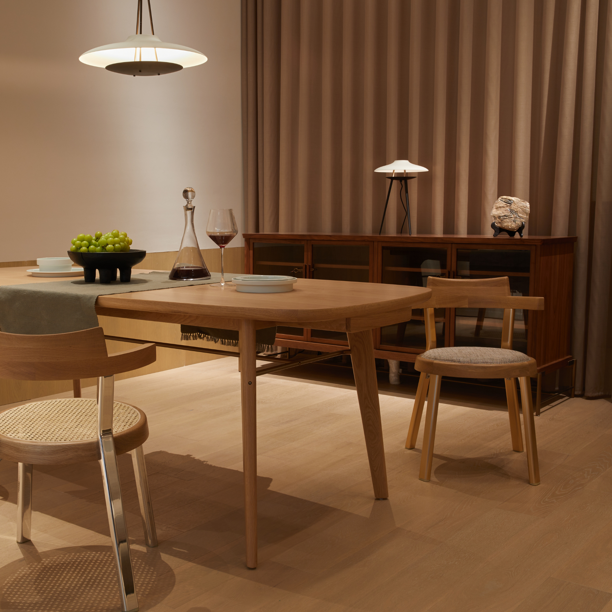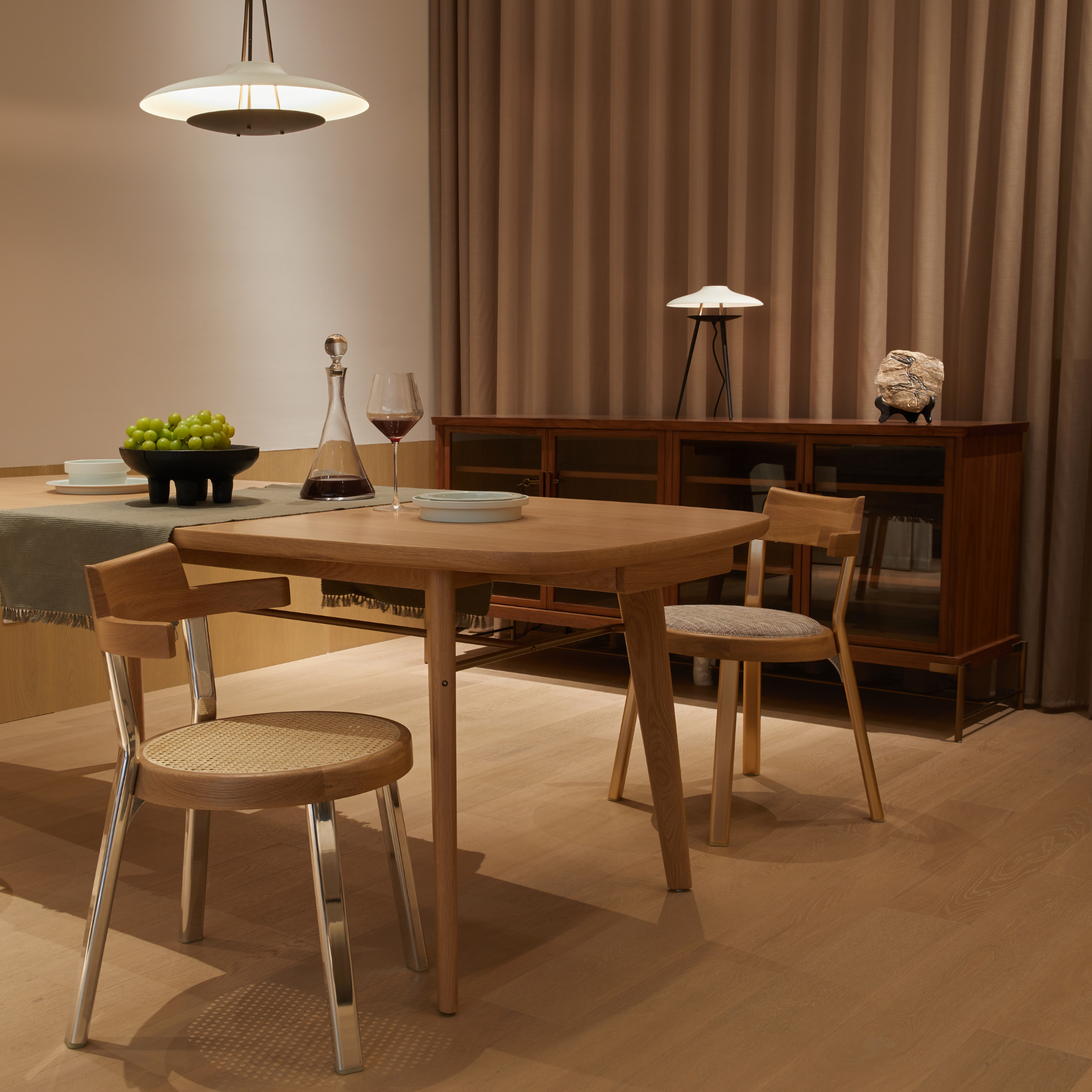 The Stellar Works Dowry Cabinet II by Neri & Hu blends solid wood and veneer with aged-gold stainless steel and tempered glass. Inspired by heirloom dowry traditions, its clean lines and premium materials offer timeless storage and display elegance.