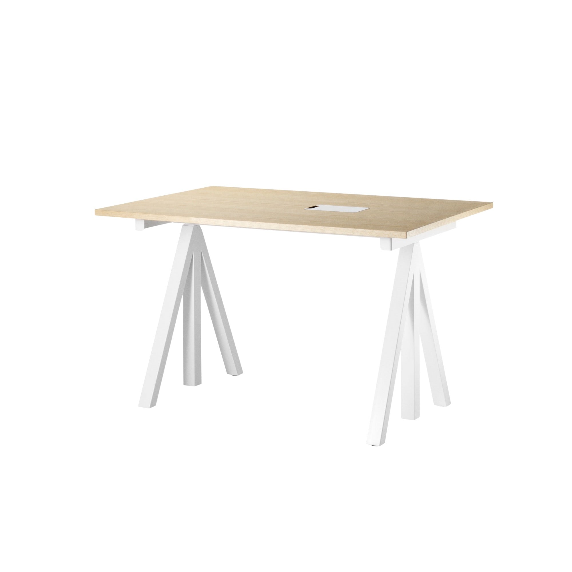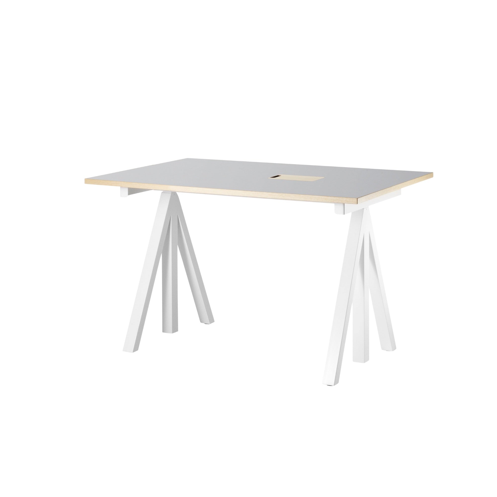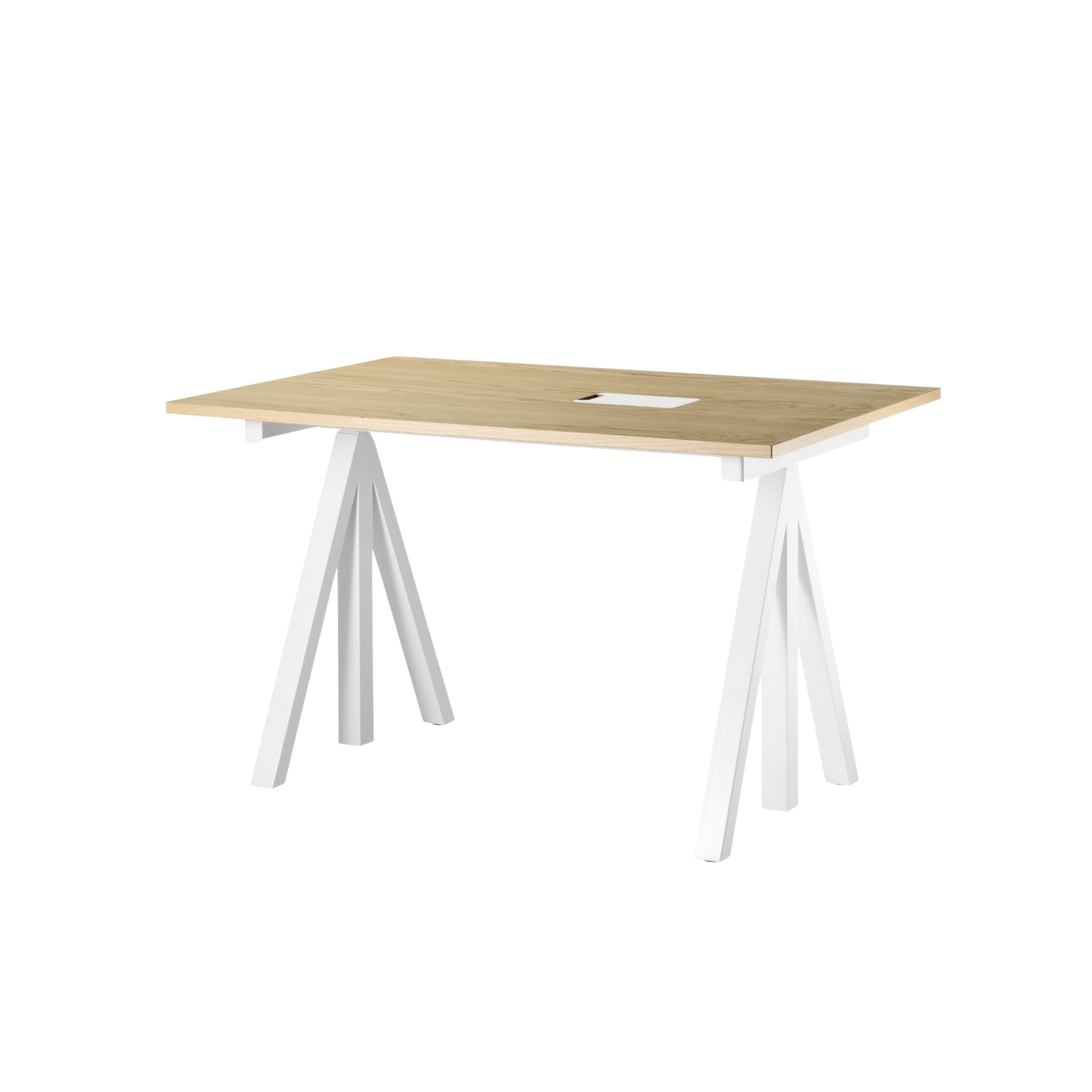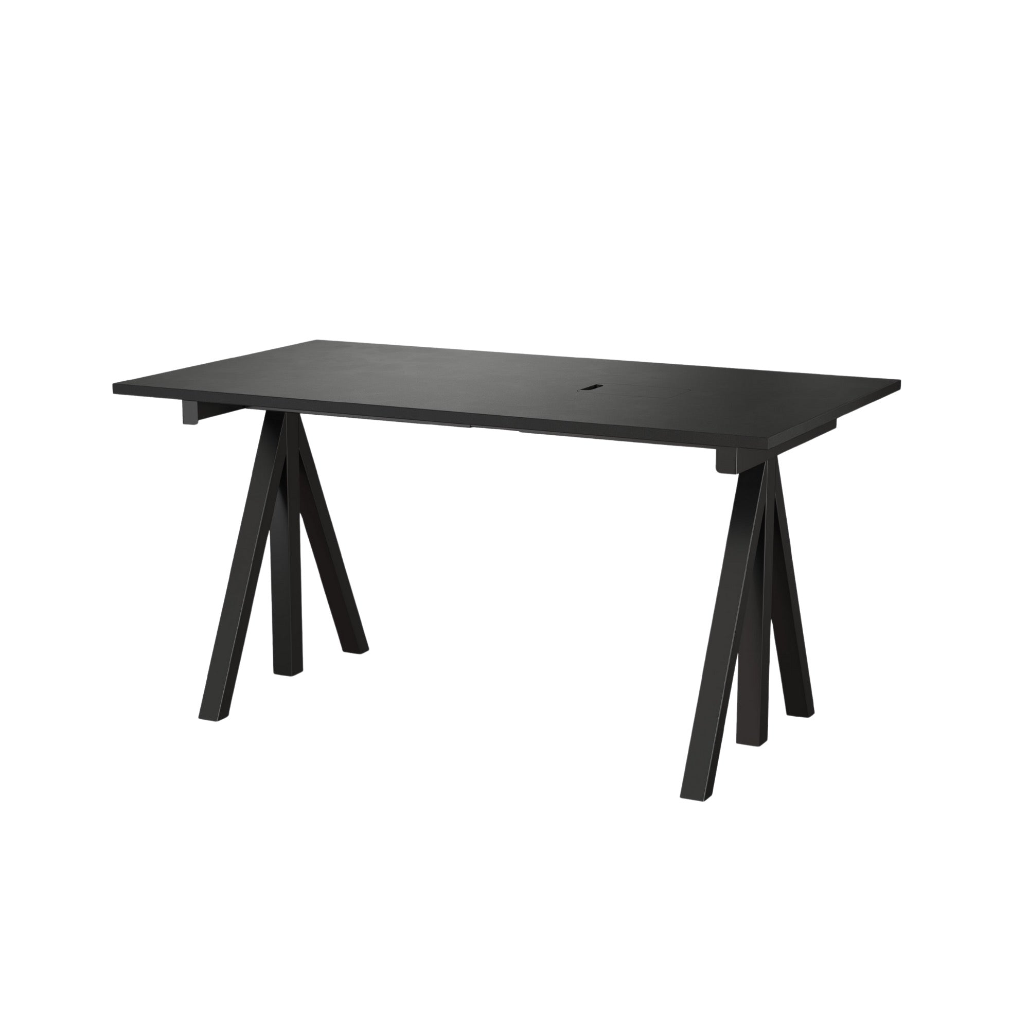 The Works Desk offers flexible workspace solutions with a fixed frame and adjustable-height tabletop. Available in depths of 78 cm (widths 120–160 cm) or 90 cm (width 180 cm) for meetings, each desk features an integrated cable cover, a 72.5 cm frame height, and a practical, versatile design for any office.