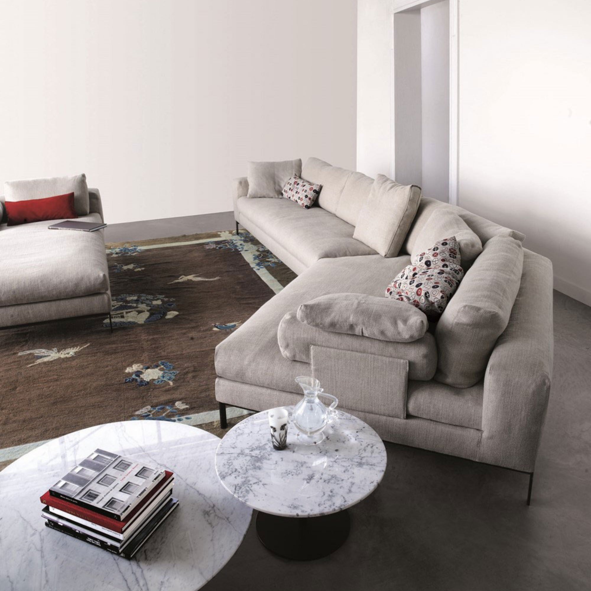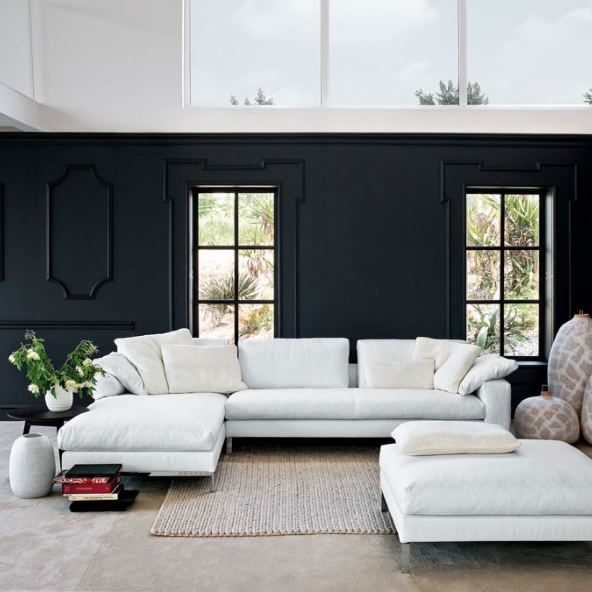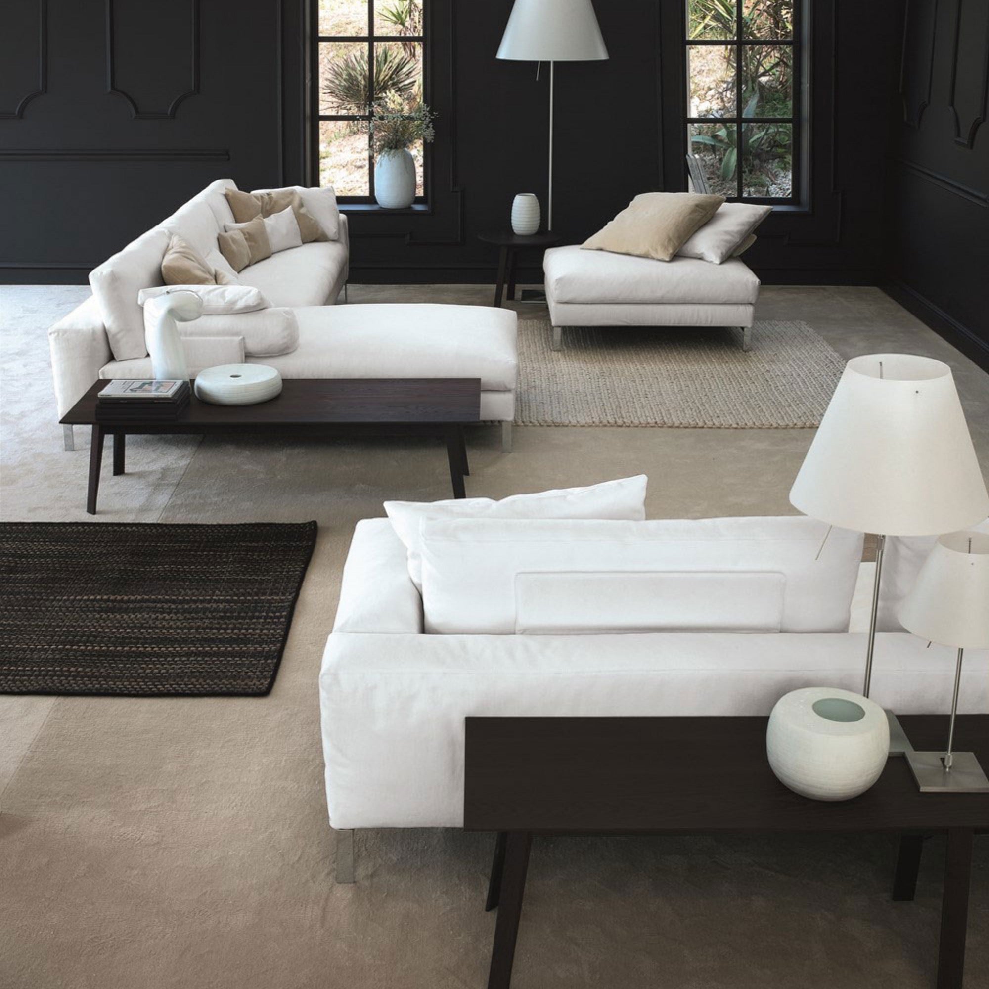 A modular sofa collection combining minimalist design with ultimate comfort, thanks to feather-down filling. Its versatile elements allow original compositions, while asymmetrical extensions create a relaxed, sociable atmosphere without compromising its refined design.