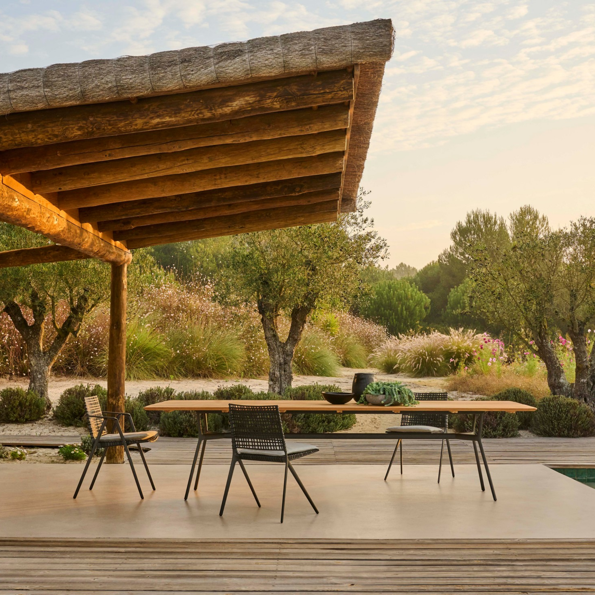 The Branch collection showcases a sleek, tree-inspired design crafted from durable, recyclable materials. Its aluminium die-cast frame features double-layer powder coating for superior scratch and UV resistance, while tabletops in aluminium or sustainably sourced Indonesian teak combine elegance with practicality for modern outdoor living.
