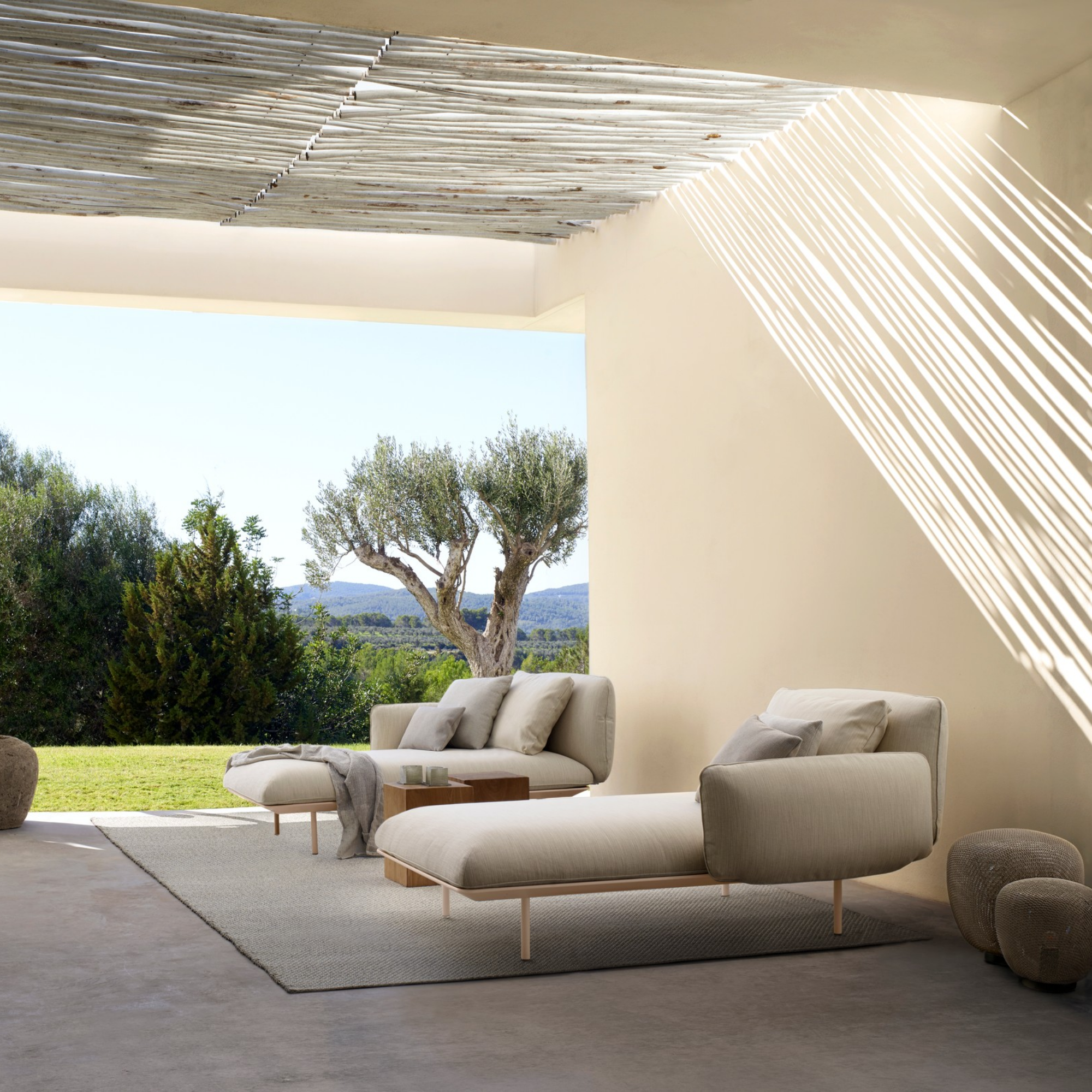 The Senja Meridienne offers luxurious, customisable lounging with over 100 nature-inspired fabrics, selectable frame and leg colours, and an optional side table. Nordic-style, water-repellent cushions with protective seams ensure lasting comfort and durability, effortlessly combining elegance, practicality, and outdoor resilience.