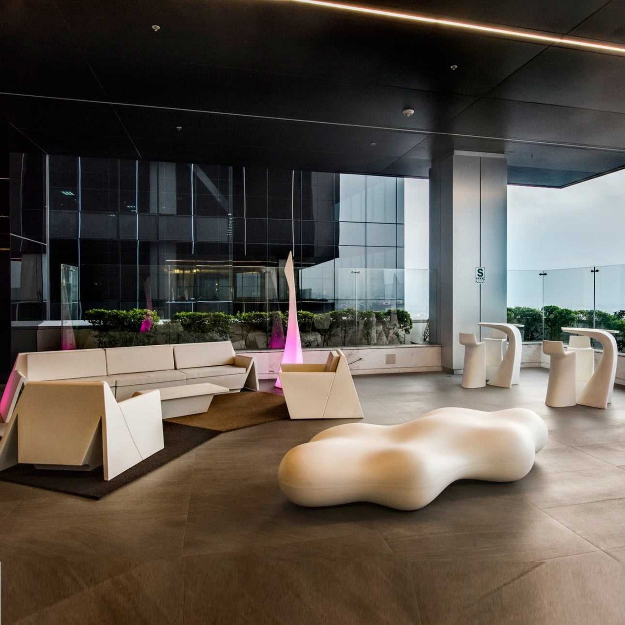 The Lava Bench by Vondom is an avant-garde, cloud-like sculpture that redefines seating design. Crafted using advanced rotomoulding, its fluid, organic form creates a natural and relaxing gathering spot indoors or outdoors. Optional LED RGB lighting enhances its sculptural beauty, transforming any space into a spectacular visual experience.