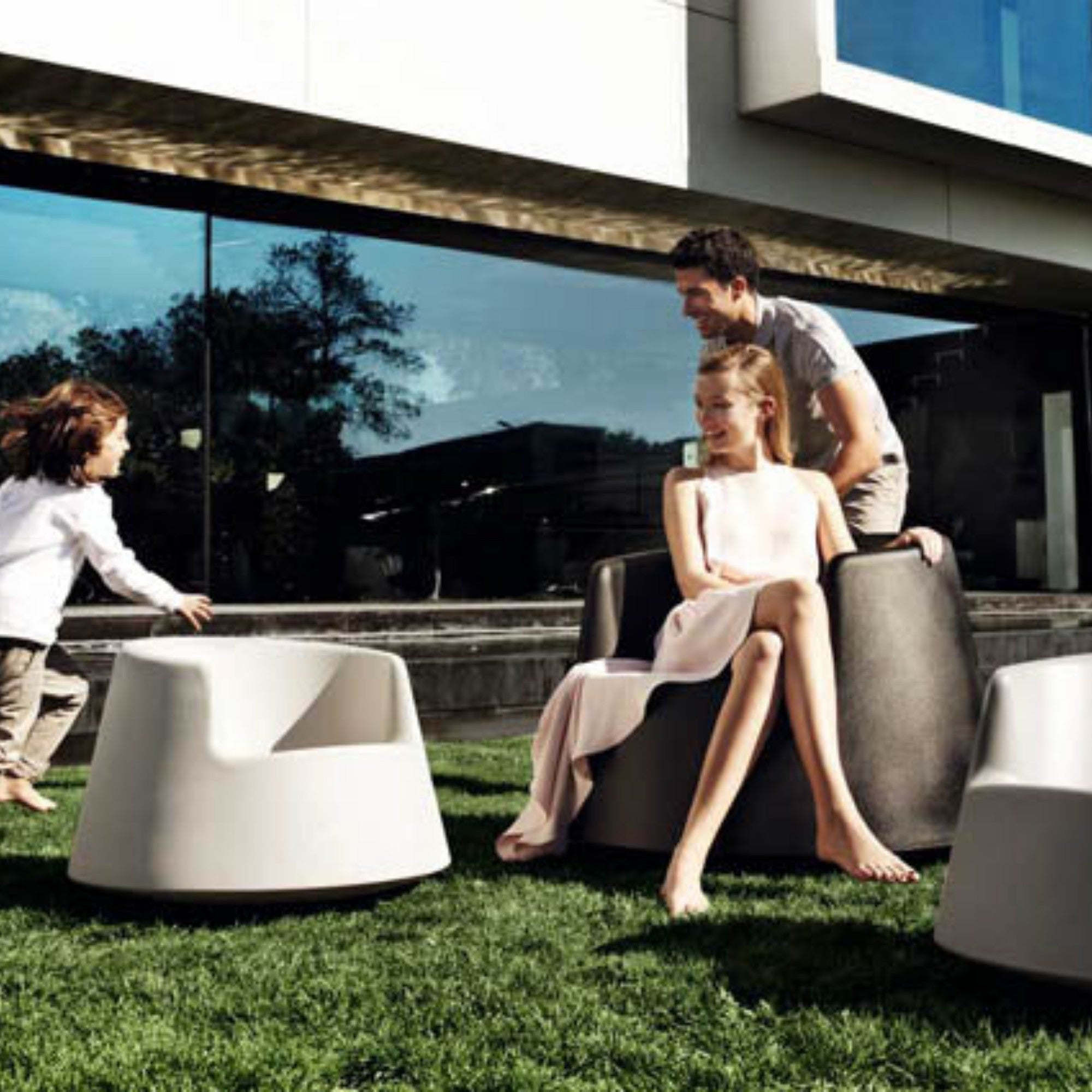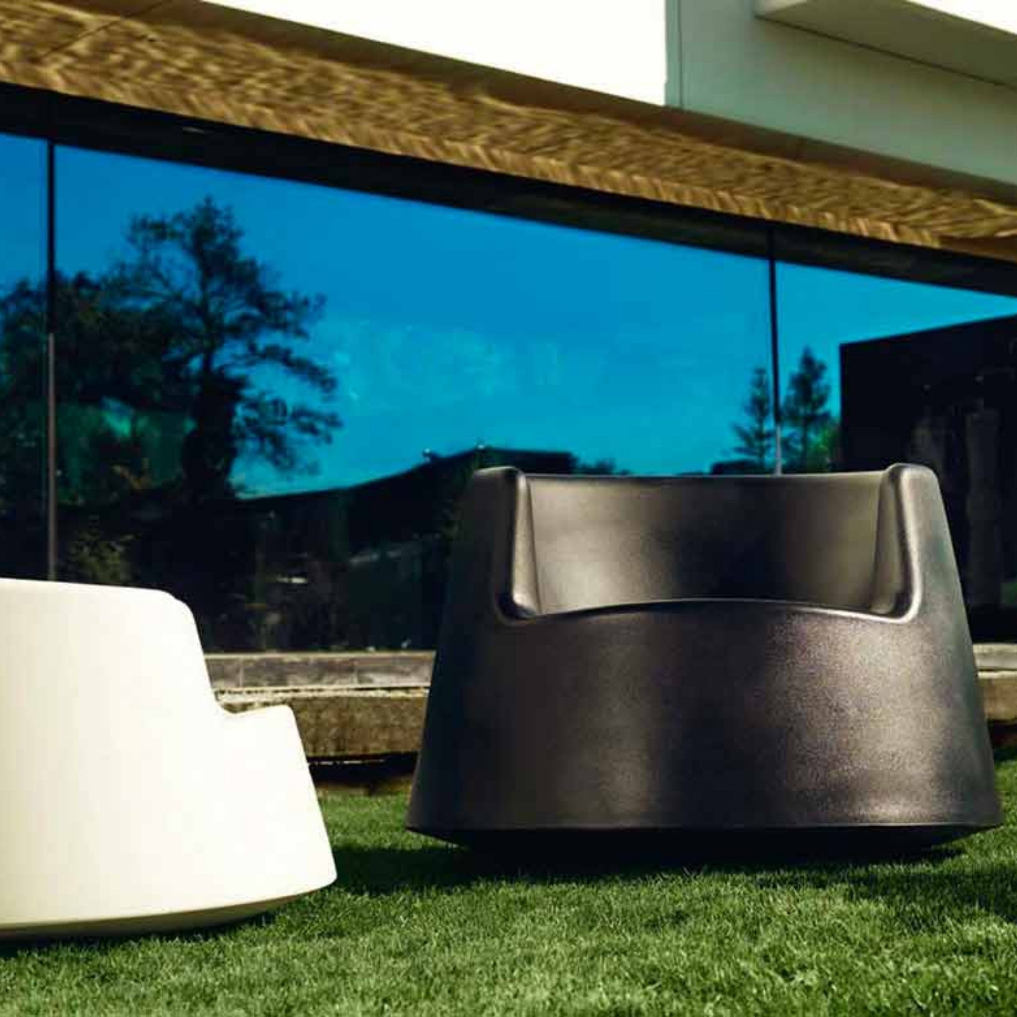 The Roulette Rocking Chair by Eero Aarnio for Vondom is a playful fusion of form and motion. Crafted through rotational molding, its sculptural silhouette rocks and spins in all directions. With high armrests for comfort and balance, Roulette transforms seating into an interactive design experience indoors or out.
