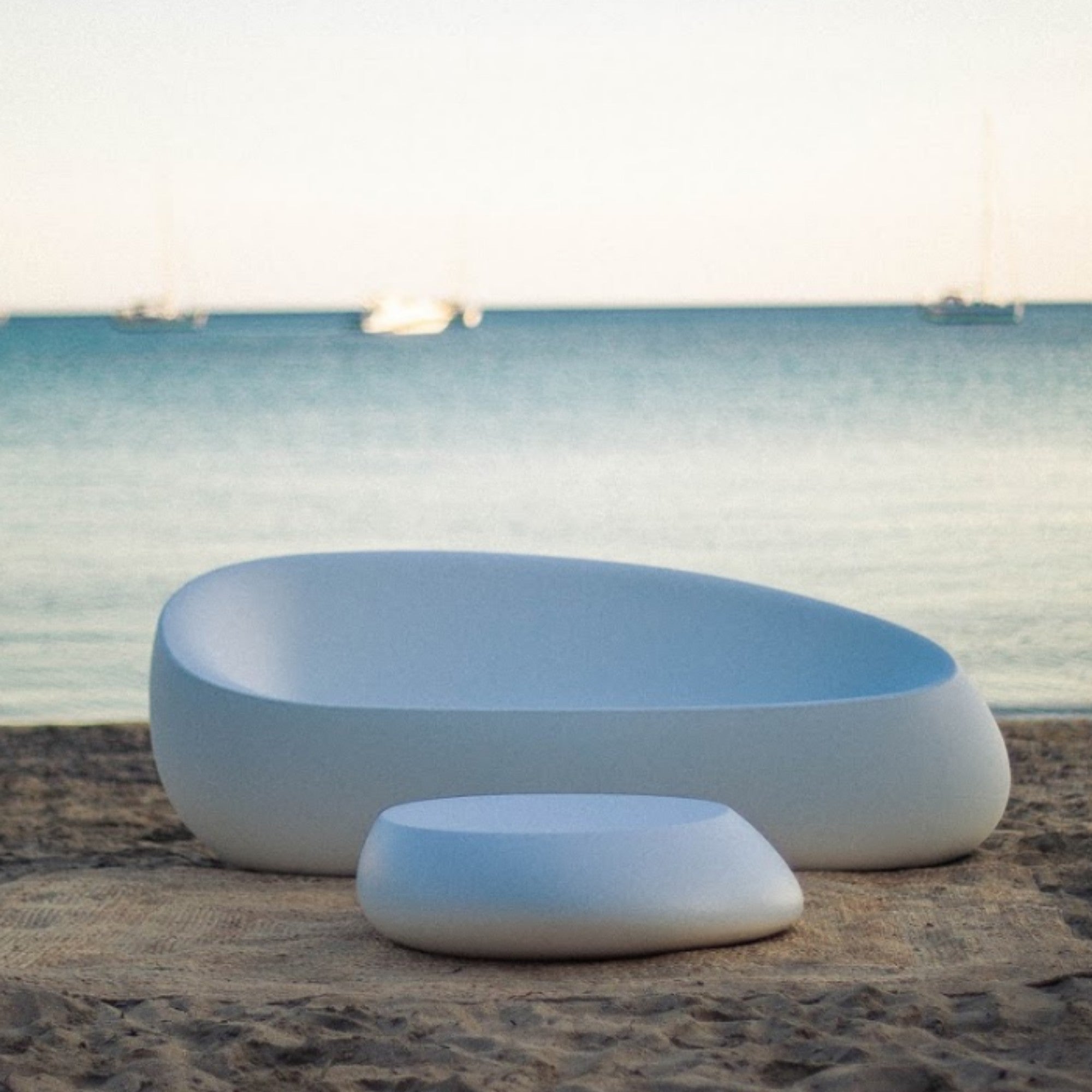 The Stone Coffee Table by Vondom embodies organic simplicity and modern elegance. Made from 100% recyclable polyethylene resin using rotational molding, it’s durable, lightweight, and weather-resistant—ideal for indoor or outdoor use. Available in a range of refined finishes.