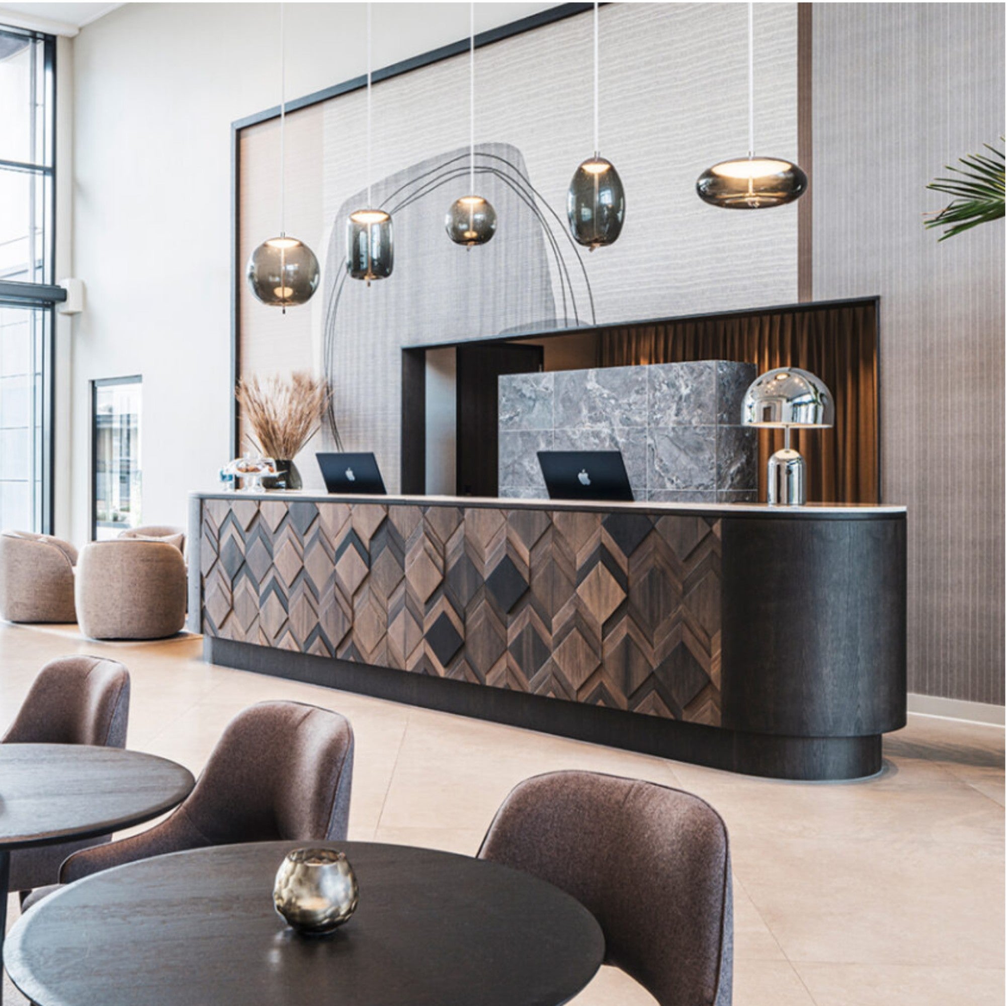 The Clue Wall Panel by Wonderwall Studios features sanded, polished and book‑matched bog‑oak veneer, delivering sleek lines and rich natural texture. Ideal for feature walls and upscale interiors, it adds luxurious warmth and sustainable character to modern residential or commercial spaces.