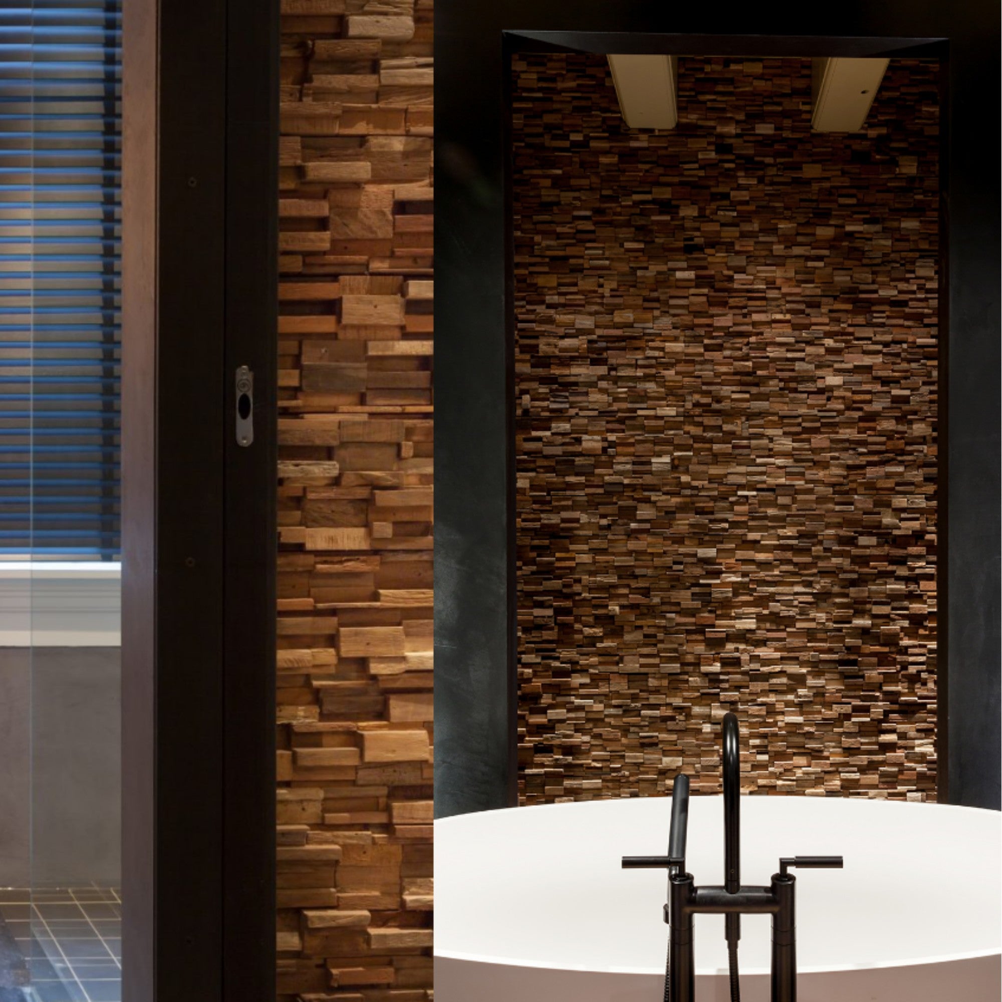 The Days Panel by Wonderwall Studios features reclaimed hardwood fragments reassembled into a sculptural, 3‑D wall surface. Ideal for smaller accent walls, this artisan‑crafted panel adds depth, texture, and sustainable character to upscale interiors.